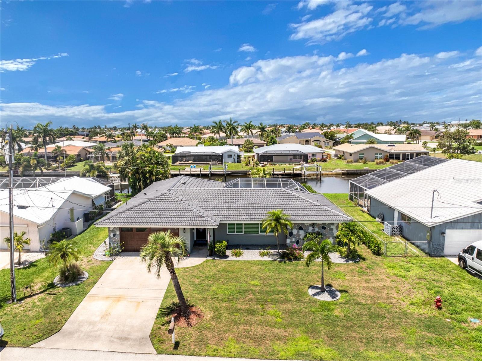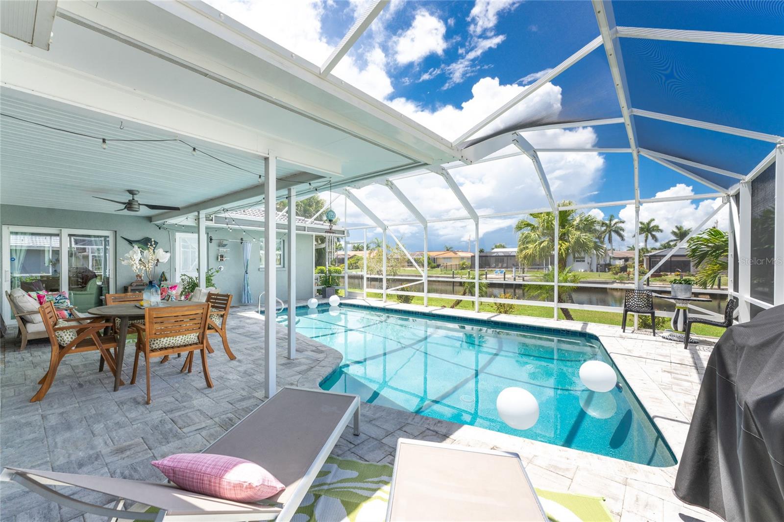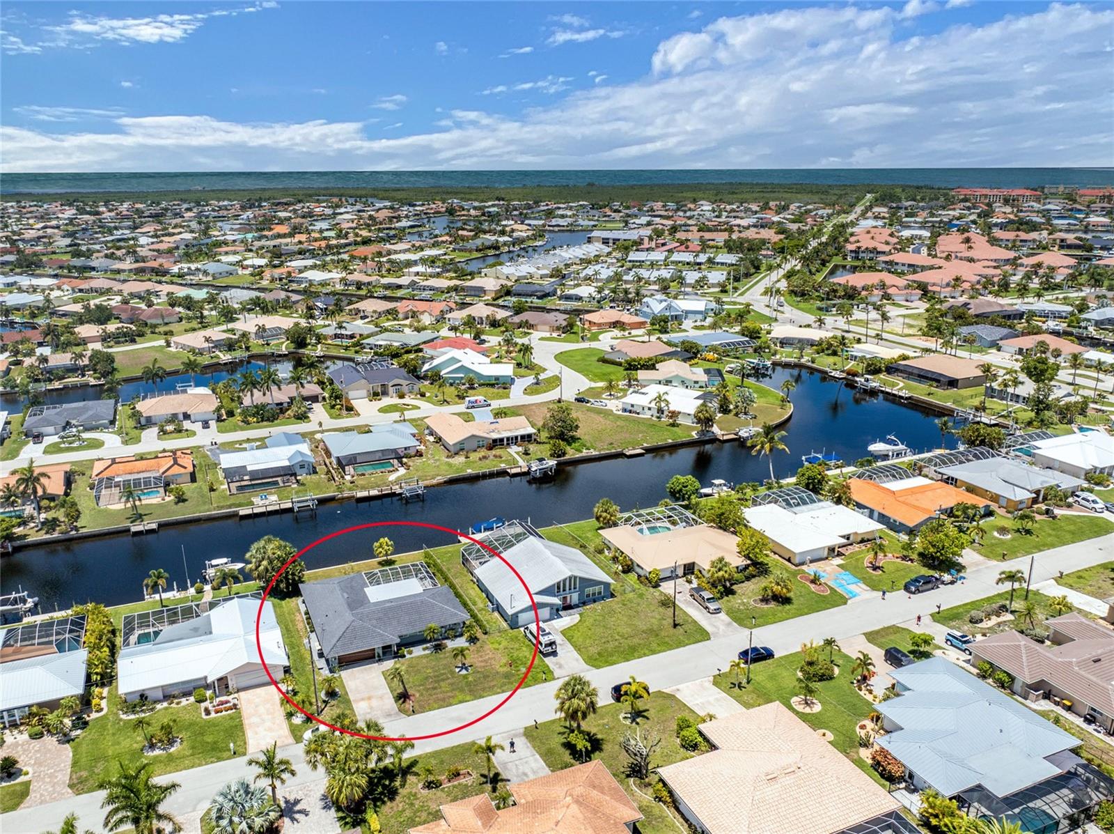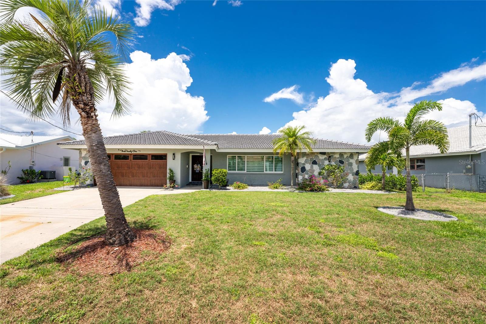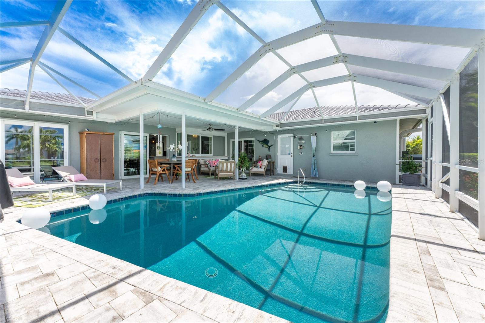 Stunning Canal front Oasis in Punta Gorda Isles - Experience the pinnacle of waterfront living with this exquisite Rutenberg model home, meticulously built to the highest standards in 1969 and flawlessly updated throughout. Nestled in the heart of Punta Gorda Isles, this canal front oasis boasts luxurious enhancements, including impact windows and sliding doors, all-new luxury vinyl flooring, and three elegantly remodeled bathrooms. The primary ensuite is a masterpiece, showcasing wood cabinets and marble counters, along with a stunningly tiled walk-in shower that exudes elegance and luxury. The heart of the home is the spectacular kitchen and dining area, adorned with high-end finishes featuring wood cabinets with many pull-out drawers and soft-close cabinets, a spacious center island with quartz counters, and a striking blue glass tile backsplash. A whimsical blue and white fish mosaic tile inlay above the range adds a touch of coastal charm, while state-of-the-art stainless steel appliances complete this gourmet haven. Relax in the charming family room, perfect for intimate gatherings. This expansive home offers four bedrooms and embraces an indoor-outdoor lifestyle with a large paver covered lanai, an outdoor shower, and a beautiful heated saltwater pool - ideal for invigorating swims and aquatic enjoyment. With rear western exposure, enjoy breathtaking sunsets from your private retreat. Additional features include 10-minute boating access out to Charlotte Harbor, a 2024 tile roof, and all new cast iron re-piping underground throughout the home. This canal front sanctuary is the epitome of elegance and tranquility. Don't miss the opportunity to make this your waterfront paradise. Schedule your private tour today and discover the serenity of Punta Gorda Isles.