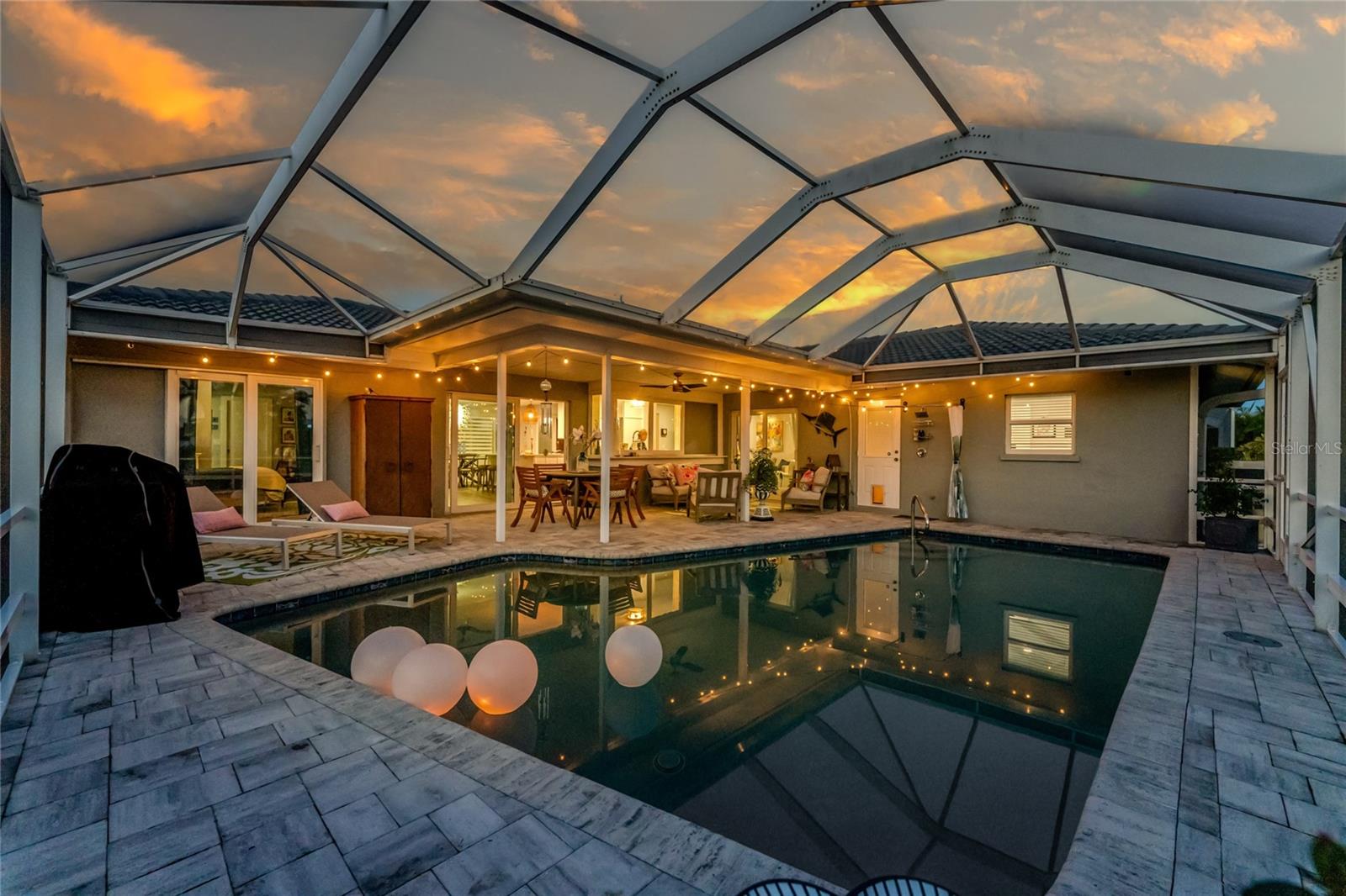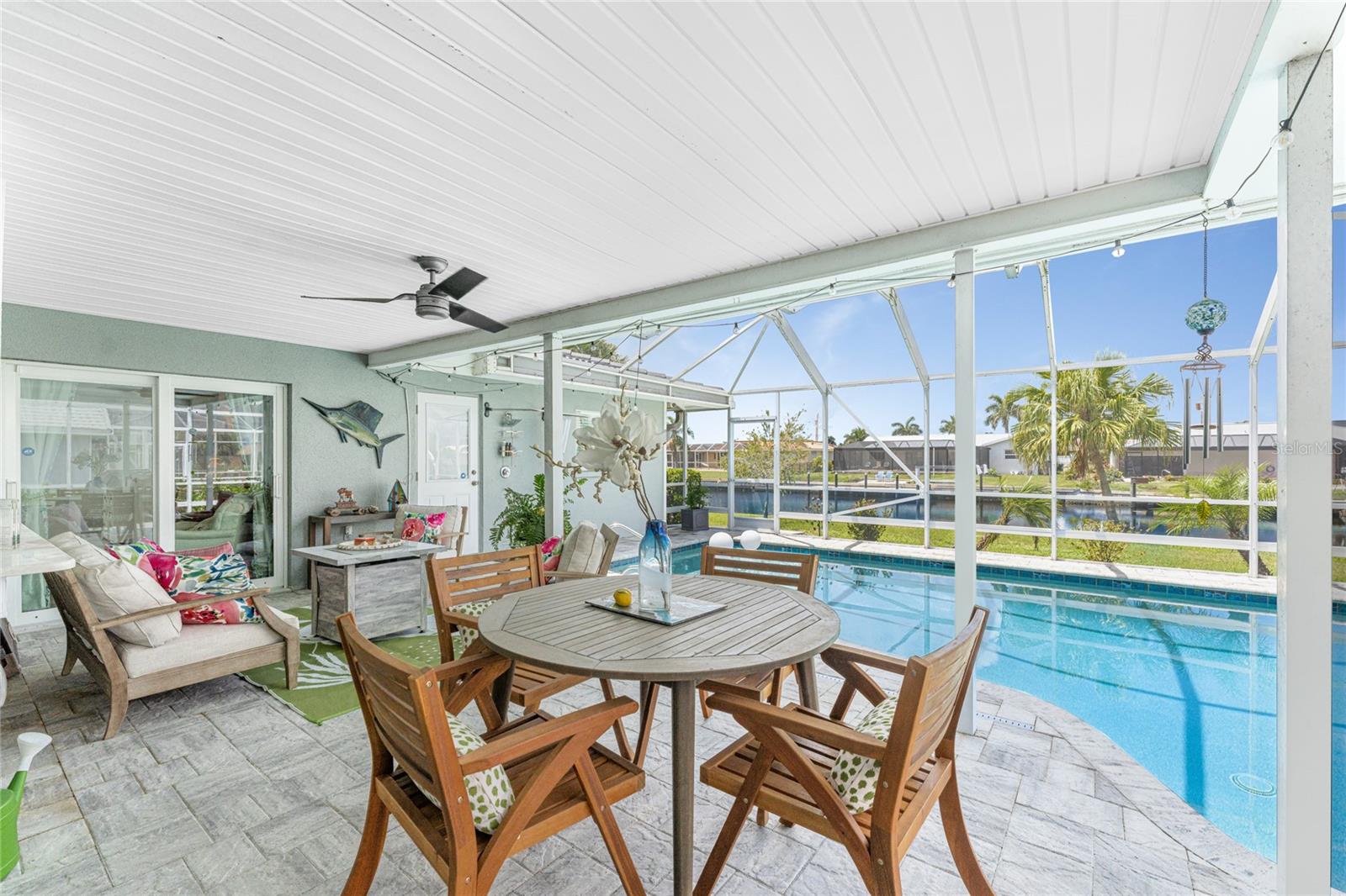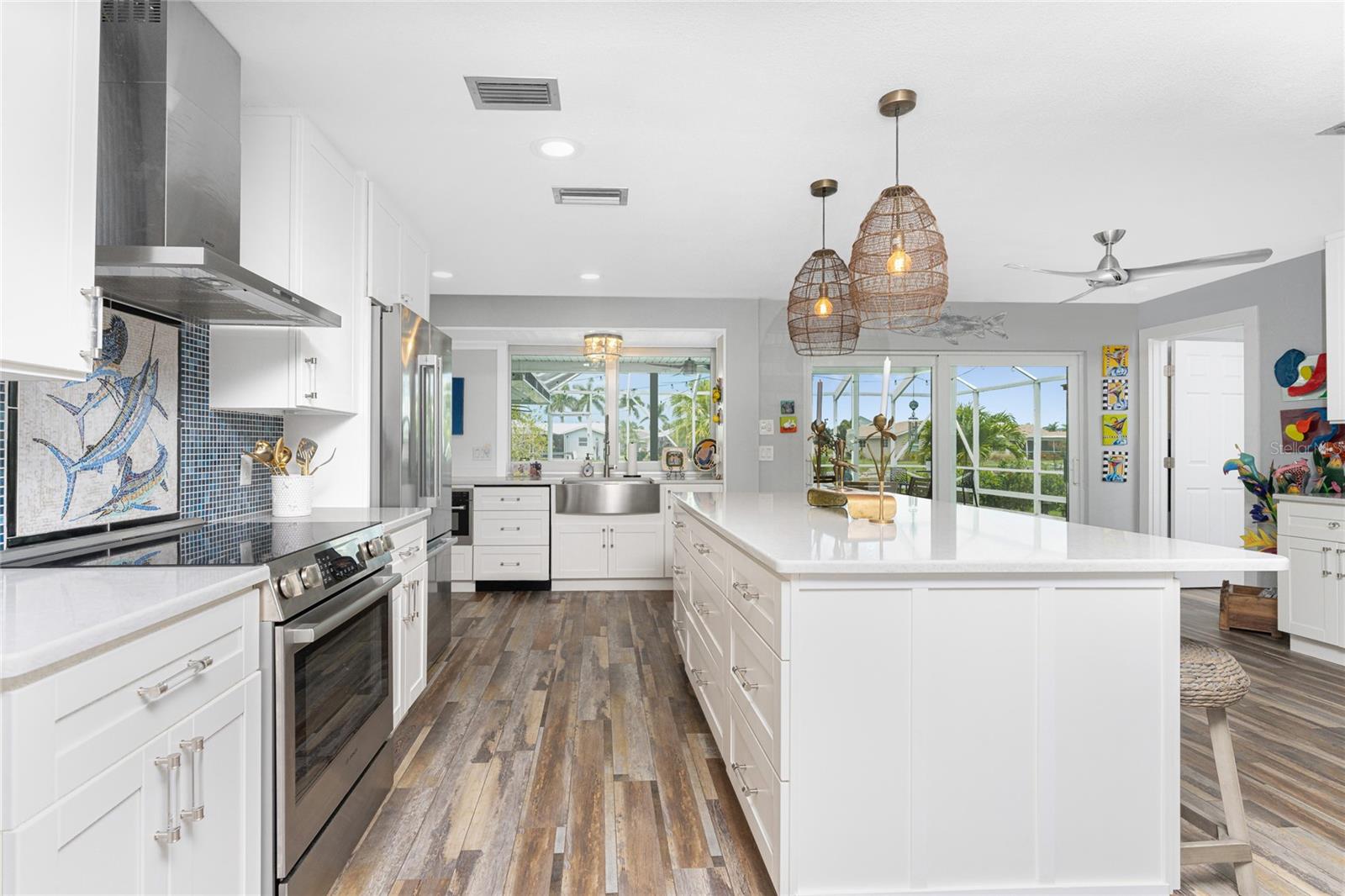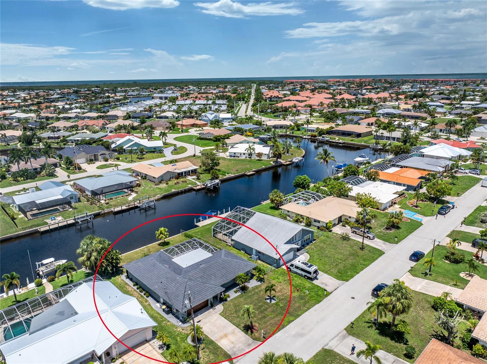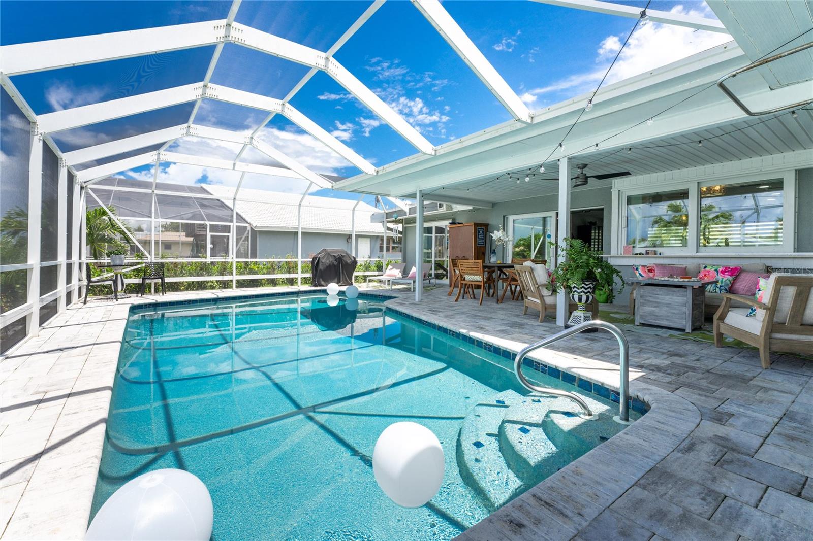 Stunning Canal front Oasis in Punta Gorda Isles - Experience the pinnacle of waterfront living with this exquisite Rutenberg model home, meticulously built to the highest standards in 1969 and flawlessly updated throughout. Nestled in the heart of Punta Gorda Isles, this canal front oasis boasts luxurious enhancements, including impact windows and sliding doors, all-new luxury vinyl flooring, and three elegantly remodeled bathrooms. The primary ensuite is a masterpiece, showcasing wood cabinets and marble counters, along with a stunningly tiled walk-in shower that exudes elegance and luxury. The heart of the home is the spectacular kitchen and dining area, adorned with high-end finishes featuring wood cabinets with many pull-out drawers and soft-close cabinets, a spacious center island with quartz counters, and a striking blue glass tile backsplash. A whimsical blue and white fish mosaic tile inlay above the range adds a touch of coastal charm, while state-of-the-art stainless steel appliances complete this gourmet haven. Relax in the charming family room, perfect for intimate gatherings. This expansive home offers four bedrooms and embraces an indoor-outdoor lifestyle with a large paver covered lanai, an outdoor shower, and a beautiful heated saltwater pool - ideal for invigorating swims and aquatic enjoyment. With rear western exposure, enjoy breathtaking sunsets from your private retreat. Additional features include 10-minute boating access out to Charlotte Harbor, a 2024 tile roof, and all new cast iron re-piping underground throughout the home. This canal front sanctuary is the epitome of elegance and tranquility. Don't miss the opportunity to make this your waterfront paradise. Schedule your private tour today and discover the serenity of Punta Gorda Isles.