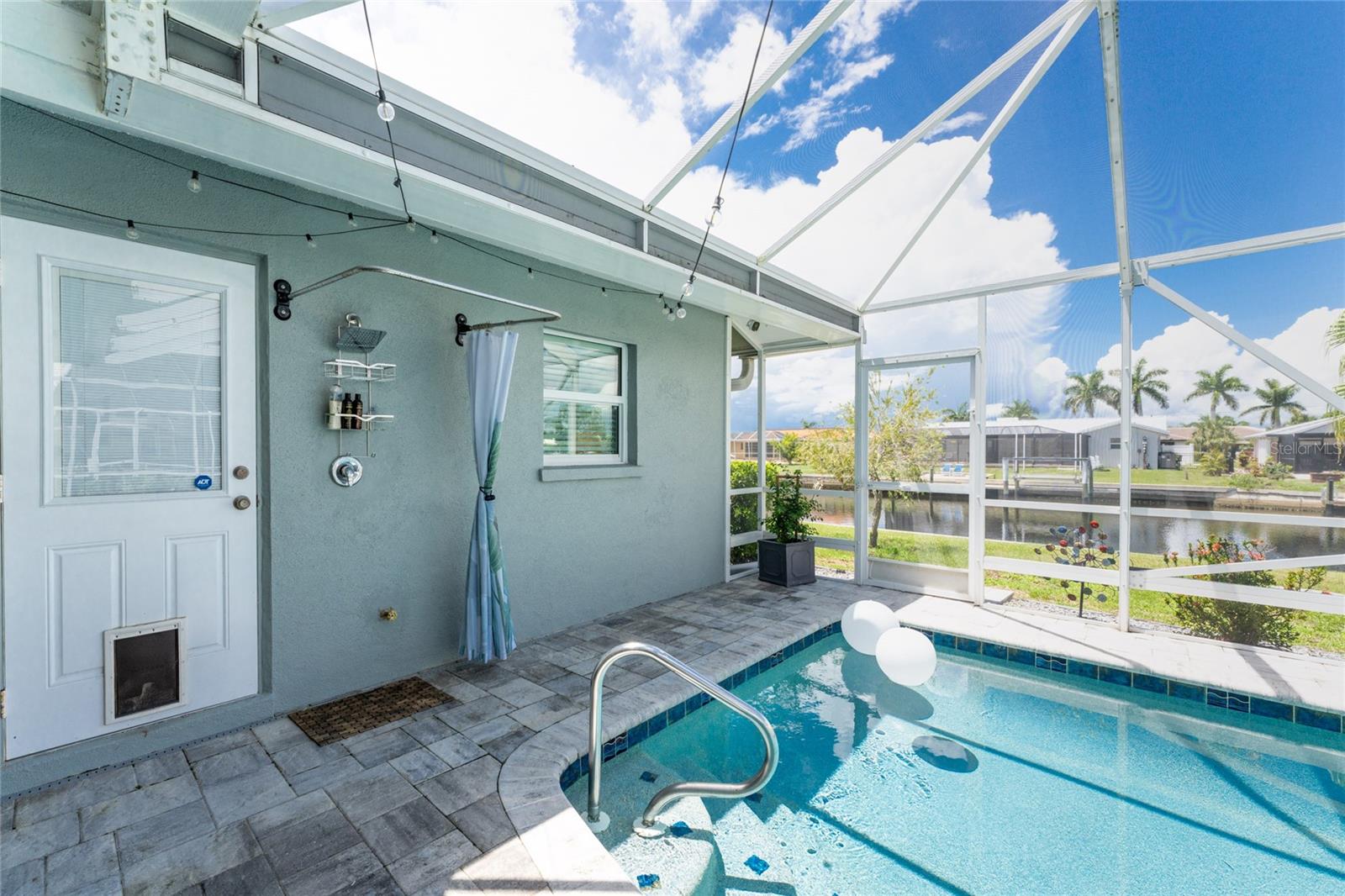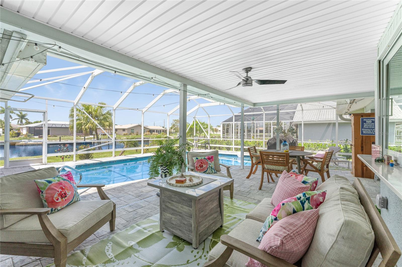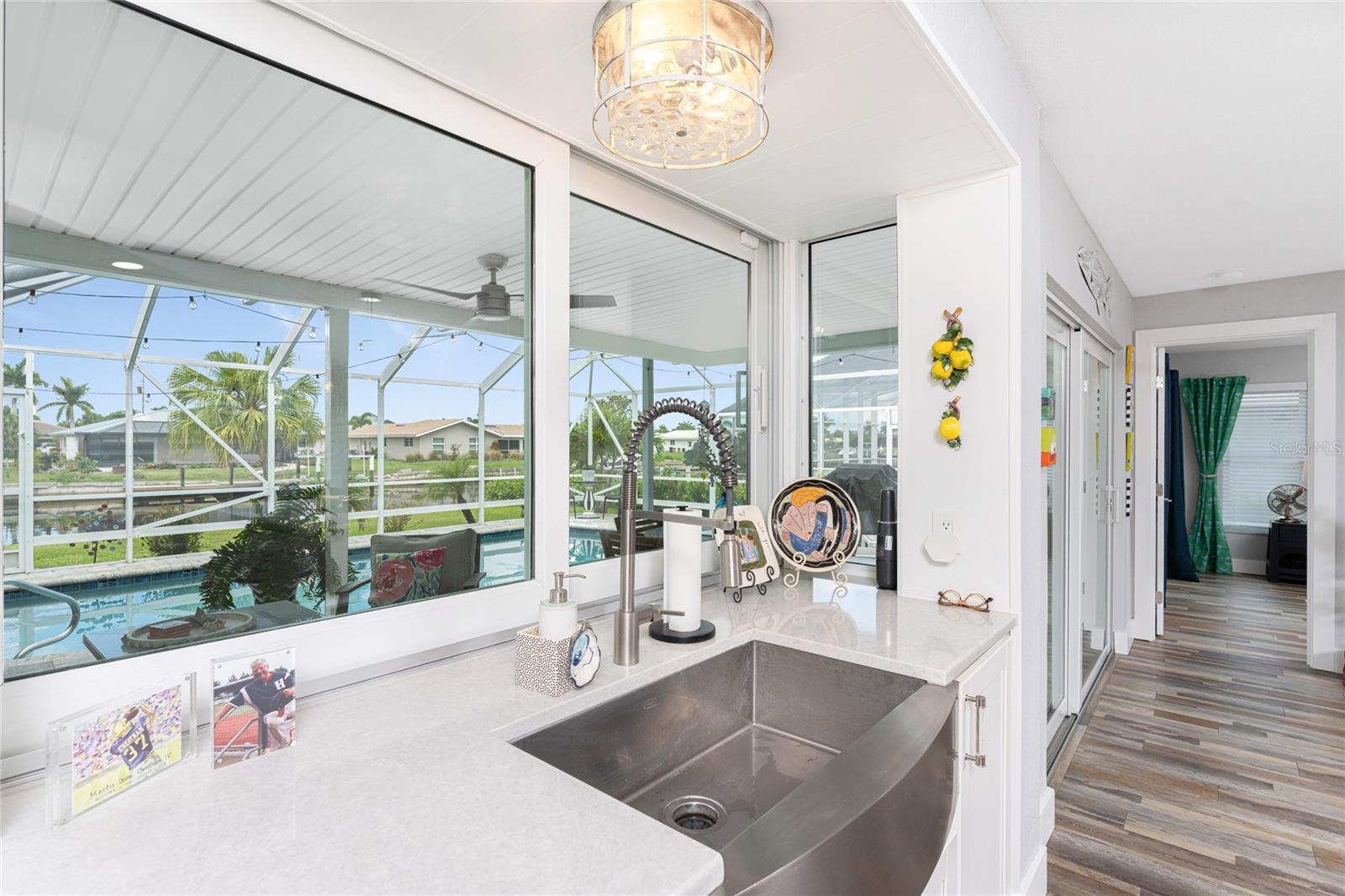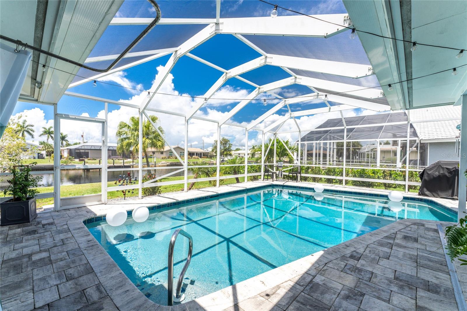 Stunning Canal front Oasis in Punta Gorda Isles - Experience the pinnacle of waterfront living with this exquisite Rutenberg model home, meticulously built to the highest standards in 1969 and flawlessly updated throughout. Nestled in the heart of Punta Gorda Isles, this canal front oasis boasts luxurious enhancements, including impact windows and sliding doors, all-new luxury vinyl flooring, and three elegantly remodeled bathrooms. The primary ensuite is a masterpiece, showcasing wood cabinets and marble counters, along with a stunningly tiled walk-in shower that exudes elegance and luxury. The heart of the home is the spectacular kitchen and dining area, adorned with high-end finishes featuring wood cabinets with many pull-out drawers and soft-close cabinets, a spacious center island with quartz counters, and a striking blue glass tile backsplash. A whimsical blue and white fish mosaic tile inlay above the range adds a touch of coastal charm, while state-of-the-art stainless steel appliances complete this gourmet haven. Relax in the charming family room, perfect for intimate gatherings. This expansive home offers four bedrooms and embraces an indoor-outdoor lifestyle with a large paver covered lanai, an outdoor shower, and a beautiful heated saltwater pool - ideal for invigorating swims and aquatic enjoyment. With rear western exposure, enjoy breathtaking sunsets from your private retreat. Additional features include 10-minute boating access out to Charlotte Harbor, a 2024 tile roof, and all new cast iron re-piping underground throughout the home. This canal front sanctuary is the epitome of elegance and tranquility. Don't miss the opportunity to make this your waterfront paradise. Schedule your private tour today and discover the serenity of Punta Gorda Isles.