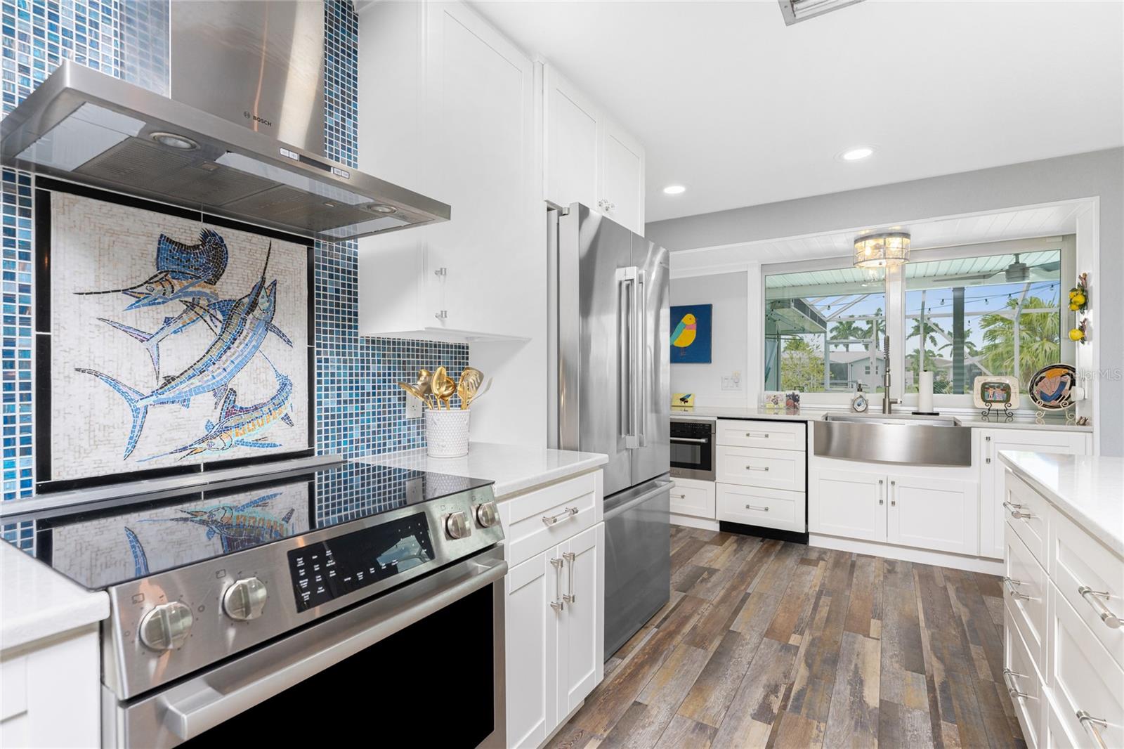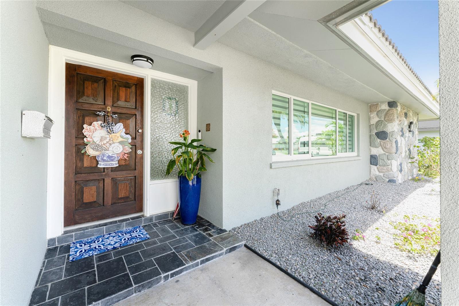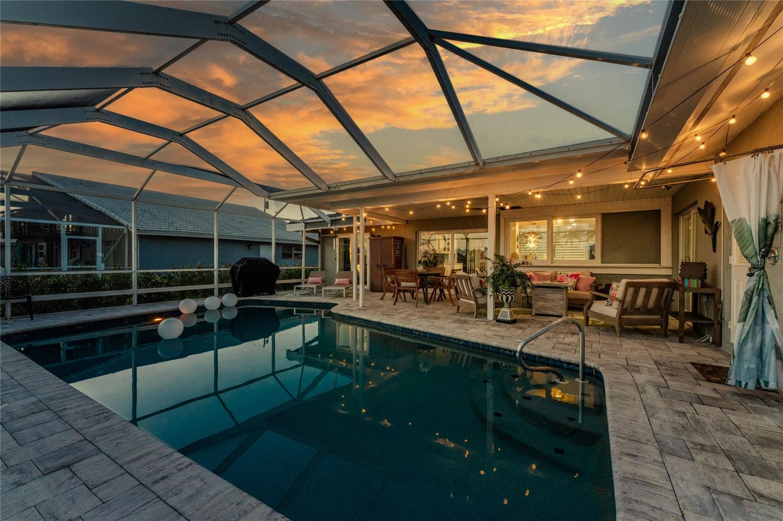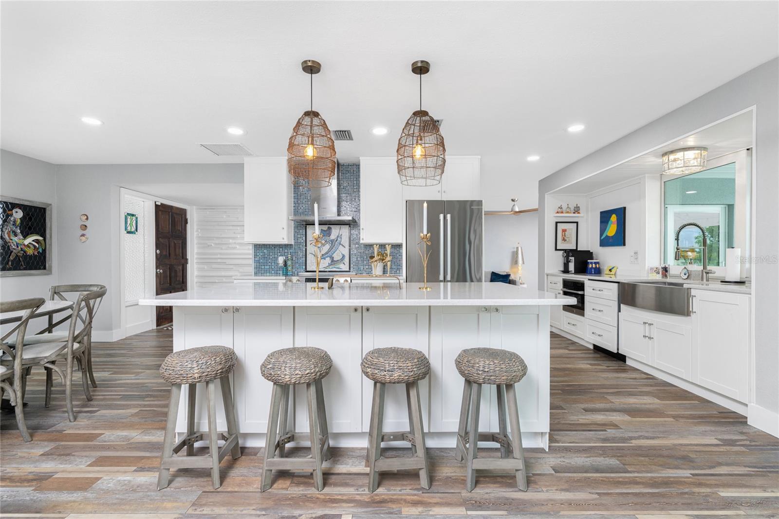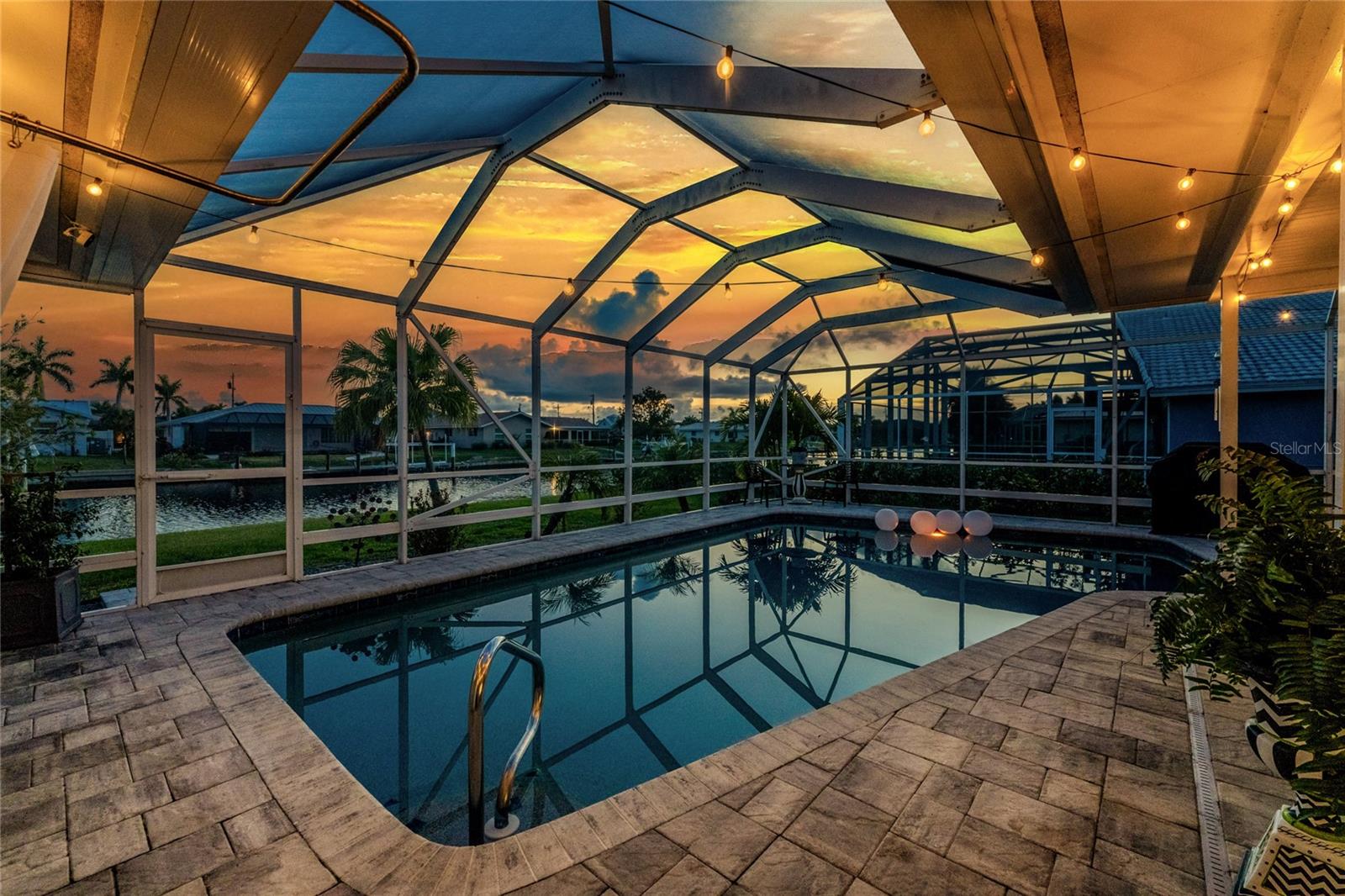 Stunning Canal front Oasis in Punta Gorda Isles - Experience the pinnacle of waterfront living with this exquisite Rutenberg model home, meticulously built to the highest standards in 1969 and flawlessly updated throughout. Nestled in the heart of Punta Gorda Isles, this canal front oasis boasts luxurious enhancements, including impact windows and sliding doors, all-new luxury vinyl flooring, and three elegantly remodeled bathrooms. The primary ensuite is a masterpiece, showcasing wood cabinets and marble counters, along with a stunningly tiled walk-in shower that exudes elegance and luxury. The heart of the home is the spectacular kitchen and dining area, adorned with high-end finishes featuring wood cabinets with many pull-out drawers and soft-close cabinets, a spacious center island with quartz counters, and a striking blue glass tile backsplash. A whimsical blue and white fish mosaic tile inlay above the range adds a touch of coastal charm, while state-of-the-art stainless steel appliances complete this gourmet haven. Relax in the charming family room, perfect for intimate gatherings. This expansive home offers four bedrooms and embraces an indoor-outdoor lifestyle with a large paver covered lanai, an outdoor shower, and a beautiful heated saltwater pool - ideal for invigorating swims and aquatic enjoyment. With rear western exposure, enjoy breathtaking sunsets from your private retreat. Additional features include 10-minute boating access out to Charlotte Harbor, a 2024 tile roof, and all new cast iron re-piping underground throughout the home. This canal front sanctuary is the epitome of elegance and tranquility. Don't miss the opportunity to make this your waterfront paradise. Schedule your private tour today and discover the serenity of Punta Gorda Isles.