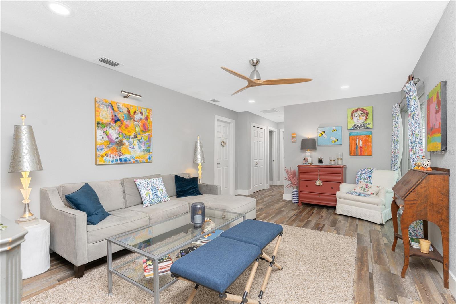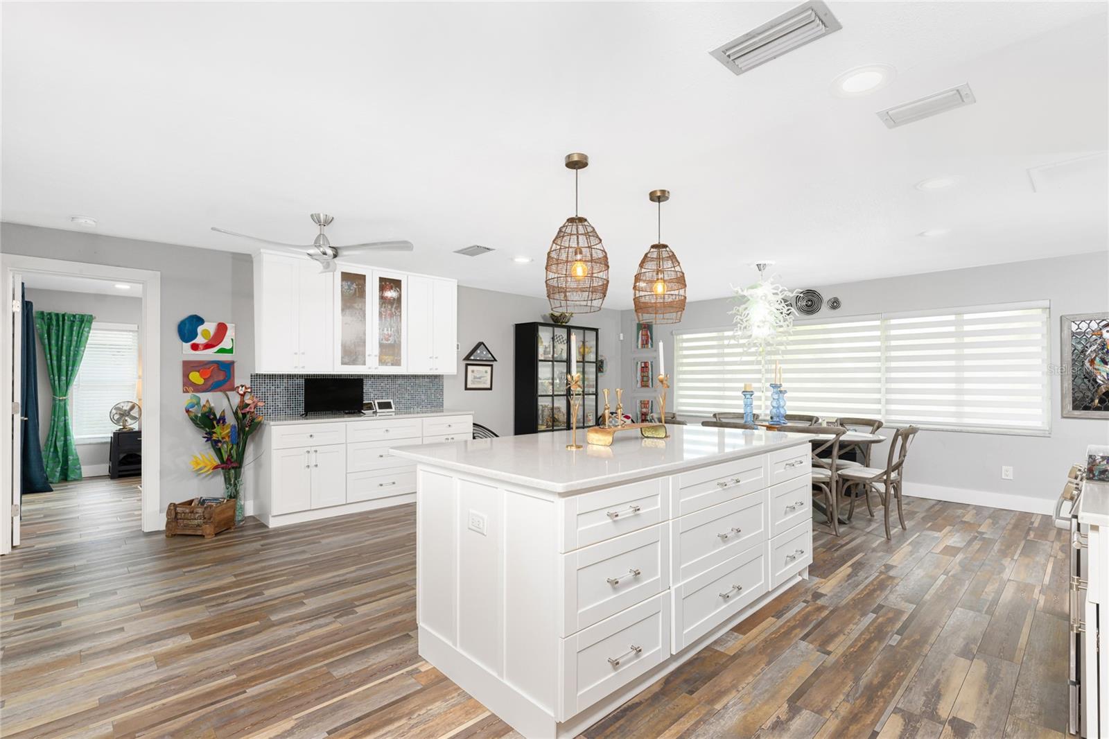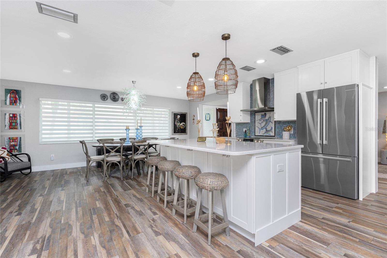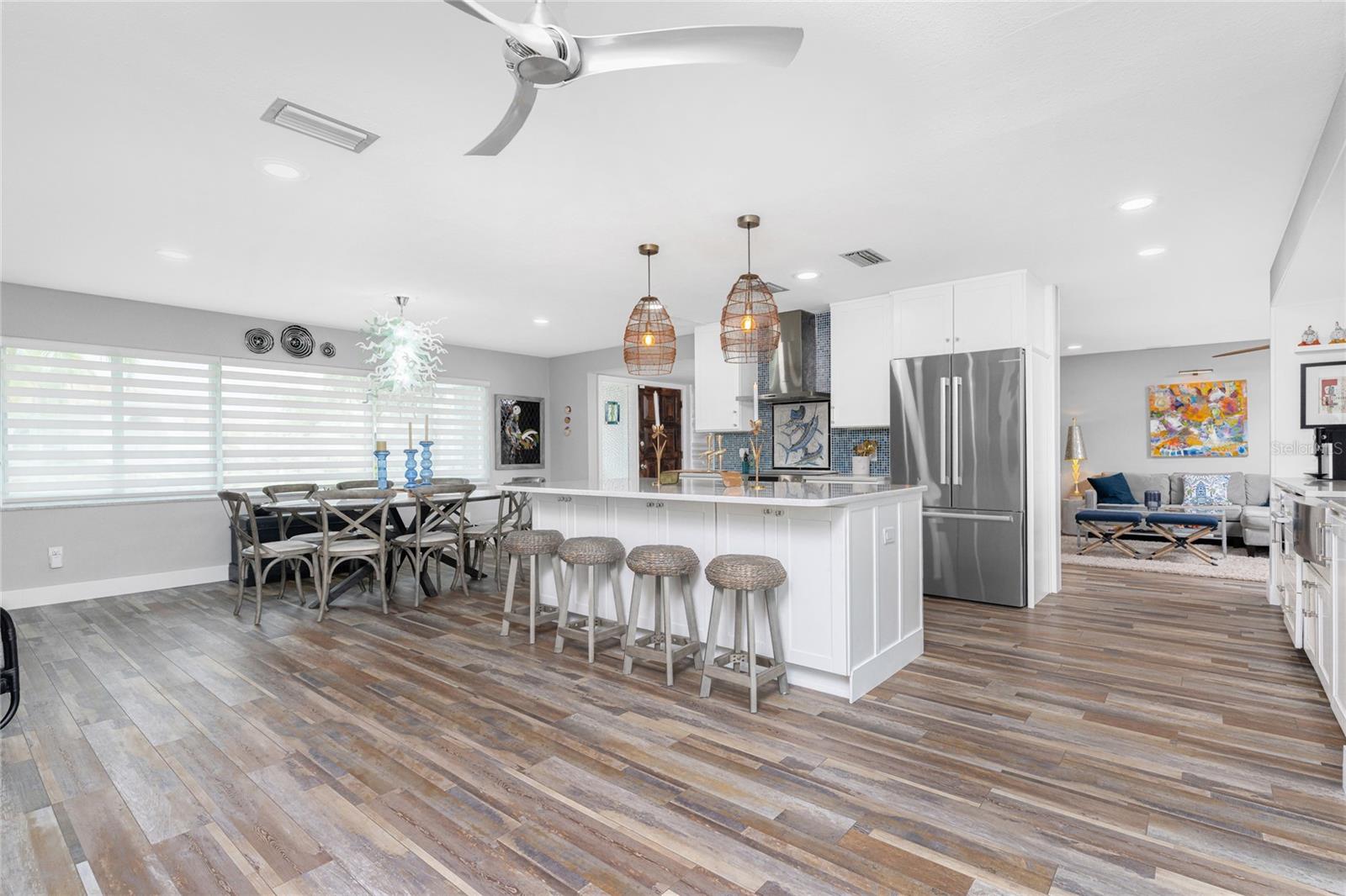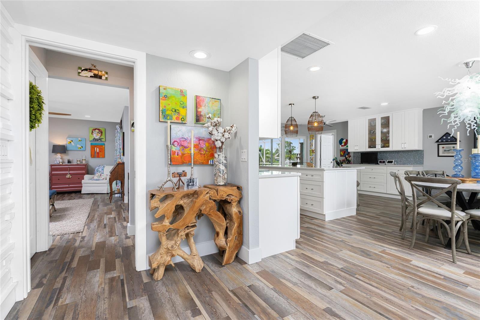 Stunning Canal front Oasis in Punta Gorda Isles - Experience the pinnacle of waterfront living with this exquisite Rutenberg model home, meticulously built to the highest standards in 1969 and flawlessly updated throughout. Nestled in the heart of Punta Gorda Isles, this canal front oasis boasts luxurious enhancements, including impact windows and sliding doors, all-new luxury vinyl flooring, and three elegantly remodeled bathrooms. The primary ensuite is a masterpiece, showcasing wood cabinets and marble counters, along with a stunningly tiled walk-in shower that exudes elegance and luxury. The heart of the home is the spectacular kitchen and dining area, adorned with high-end finishes featuring wood cabinets with many pull-out drawers and soft-close cabinets, a spacious center island with quartz counters, and a striking blue glass tile backsplash. A whimsical blue and white fish mosaic tile inlay above the range adds a touch of coastal charm, while state-of-the-art stainless steel appliances complete this gourmet haven. Relax in the charming family room, perfect for intimate gatherings. This expansive home offers four bedrooms and embraces an indoor-outdoor lifestyle with a large paver covered lanai, an outdoor shower, and a beautiful heated saltwater pool - ideal for invigorating swims and aquatic enjoyment. With rear western exposure, enjoy breathtaking sunsets from your private retreat. Additional features include 10-minute boating access out to Charlotte Harbor, a 2024 tile roof, and all new cast iron re-piping underground throughout the home. This canal front sanctuary is the epitome of elegance and tranquility. Don't miss the opportunity to make this your waterfront paradise. Schedule your private tour today and discover the serenity of Punta Gorda Isles.