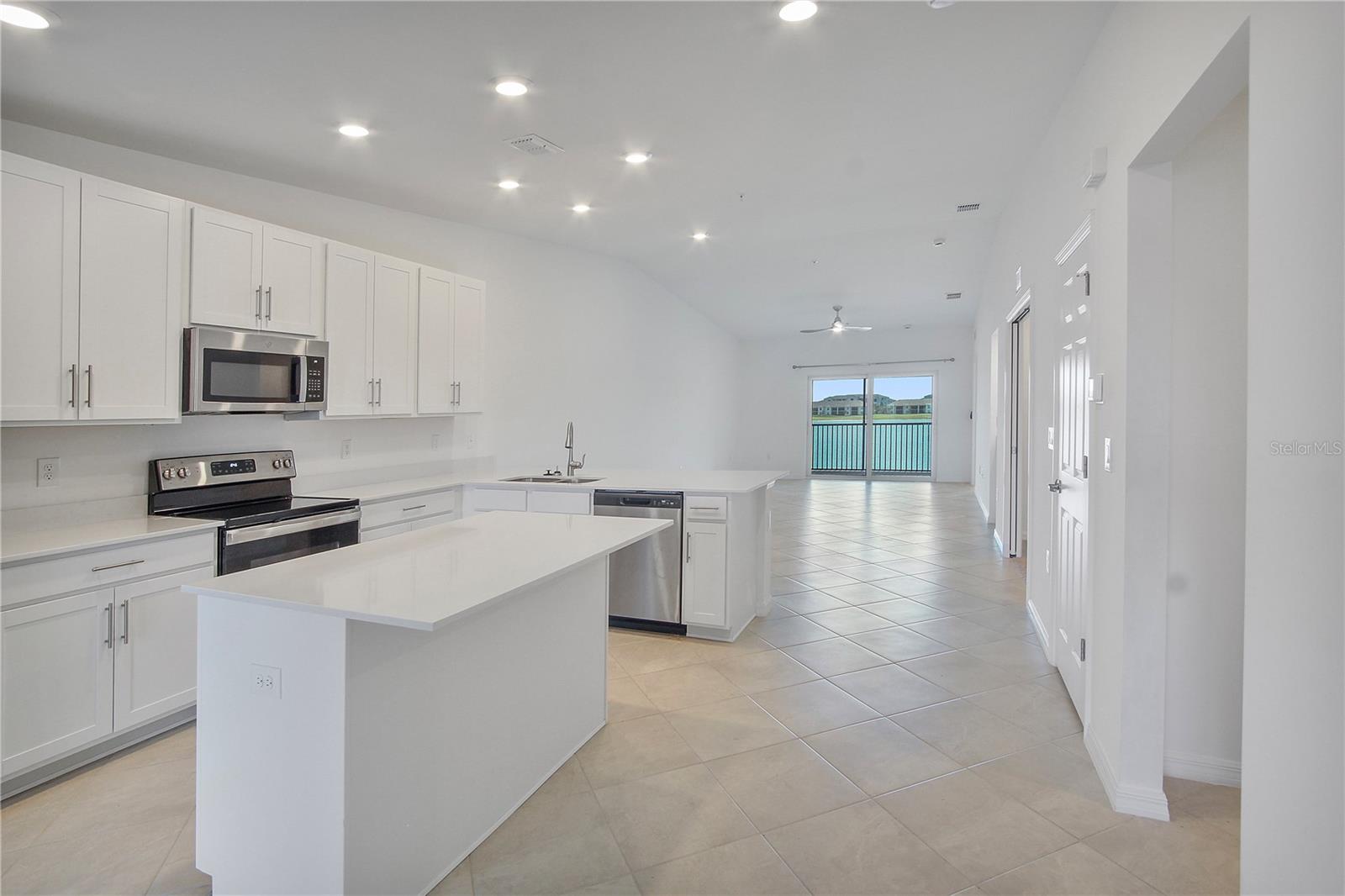 Indulge in the epitome of luxury living with this stunning golf condo situated in the esteemed Babcock Ranch community. Boasting a seamless fusion of sophistication, convenience, and natural splendor, this newly constructed second-floor residence offers a sanctuary for those craving tranquility and recreation. Enter into a realm of refined elegance, where an airy open-concept layout bathed in sunlight awaits. Every aspect of this home has been meticulously designed to cater to your every whim. The contemporary kitchen is a chef's delight, featuring resplendent quartz countertops, state-of-the-art stainless steel appliances, and a convenient breakfast bar—a space crafted for culinary indulgence. Unwind in the cozy living area, panoramic vistas of the verdant golf course unfold before you, beckoning you to relax and relish every moment. Step outside onto your private balcony to bask in mesmerizing sunsets and the tranquil ambiance of the golf course. Retreat to the opulent master suite, boasting a palatial walk-in closet and a sumptuous en-suite bathroom. This retreat offers unparalleled relaxation. The second bedroom offers easy access to a full bathroom, ensuring comfort and convenience for guests. Moreover, this condo offers exceptional value with its two lanai spaces. These expand your outdoor living space and provide ample room for entertaining or simply enjoying the serene surroundings. Including a one-car garage ensures secure parking and additional storage, enhancing the convenience and value of this property. With a versatile den that can effortlessly transform into a third bedroom or an adaptable living space, this condo seamlessly adapts to your lifestyle needs. Additional amenities include an in-unit washer and dryer for added convenience. Embrace resort-style living with exclusive access to the prestigious Babcock Ranch Golf Club and world-class amenities. Tee off at the championship golf course designed for players of all levels, unwind at the clubhouse with its inviting tiki bar and social areas, or rejuvenate your body and soul at the fitness center, swimming pool, and wellness activities. Seize the opportunity to elevate your lifestyle and experience the pinnacle of luxury living in Babcock Ranch. Priced at $379,000, this exquisite golf condo awaits your private viewing. Schedule your appointment today and make this sanctuary of sophistication your new home.