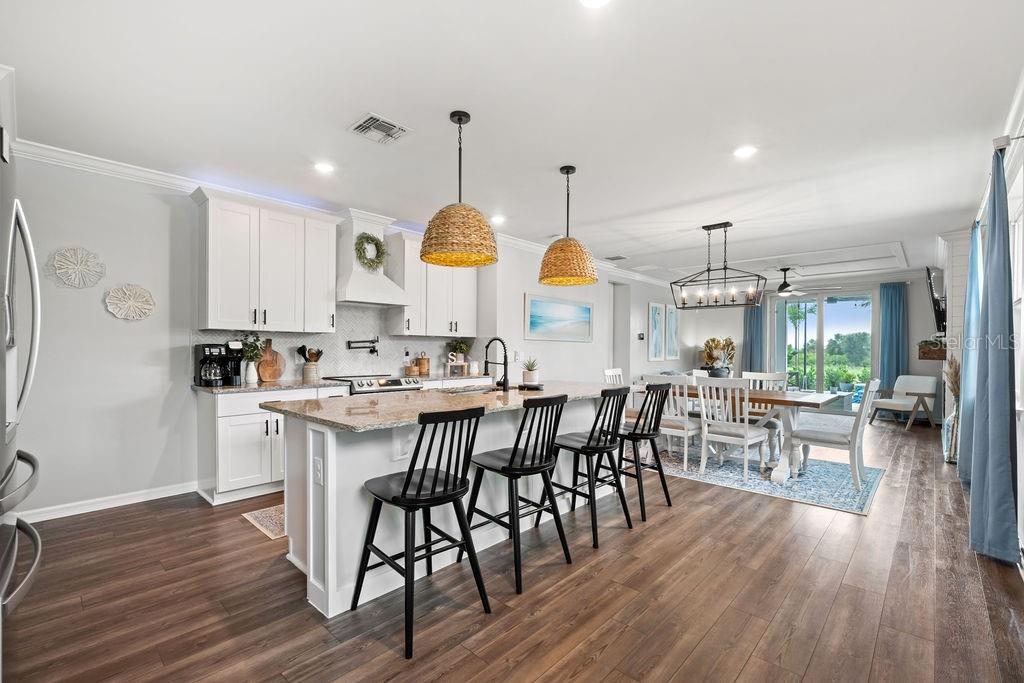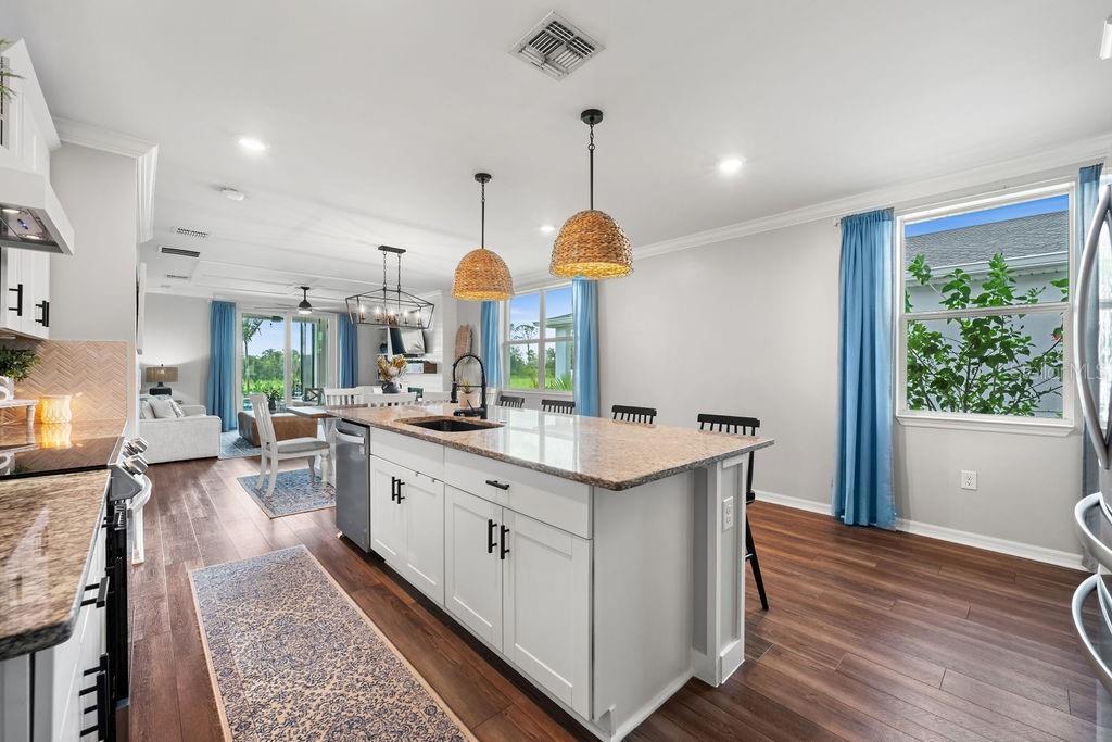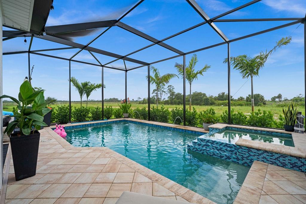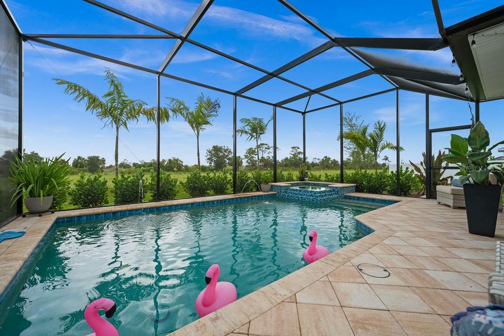 BEAUTIFULLY UPDATED 4 Bedroom, 2 Bathroom, 2 Car Garage, Pool home in the Crescent Grove community in Babcock Ranch. NO FLOOD REQUIRED! CLICK ON THE VIRTUAL TOUR LINK 1 FOR THE VIDEO. This lovely home features a bright & open floor plan, luxury vinyl flooring, high ceilings, crown molding, recessed & pendant lighting, plantation shutters and SO MUCH MORE! Spend quality time with friends and family in the open dining and living room, with an electric fireplace, a shiplap accent wall with built-in shelving, and a glass slider to the lanai. The kitchen offers ALL stainless-steel appliances, granite countertops, a tiled backsplash, a built-in pantry with pull-outs, and an island with a breakfast bar. The spacious master bedroom has a wood panel ceiling, a walk-in closet, and a private bathroom with a dual sink vanity, walk-in shower, and a private toilet. The guest rooms are on a split floor plan providing plenty of privacy, with built-in closets and a shared guest bathroom nearby. The lanai is a private outdoor oasis with plenty of room for entertaining, or simply sip your morning coffee or unwind with your favorite evening beverage. Take a dip in the heated saltwater pool & spa or soak up the sun from the pool deck. 2022 ROOF - SPRAY INSULATION - 2023 INTERIOR PAINTED - 2023 KITCHEN REMODEL - UPDATED LIGHTING FIXTURES - ELECTRIC FIREPLACE - UPDATED OUTLETS & ABOVE CABINET LIGHTING - UPDATED LANDSCAPING - UPDATED POOL/SPA/PAVERS & POOL CAGE - POOL WATER FEATURE - EPOXY GARAGE FLOOR - GARAGE CEILING STORAGE - NEW LAUNDRY ROOM CABINETS. See the attached feature sheet for a full list of features. The Crescent Grove community in Babcock Ranch provides internet, lawn care, trash removal, and access to an array of amenities including a Clubhouse, community pools, fitness center, basketball courts, playground, and much more! Schedule your showing TODAY!