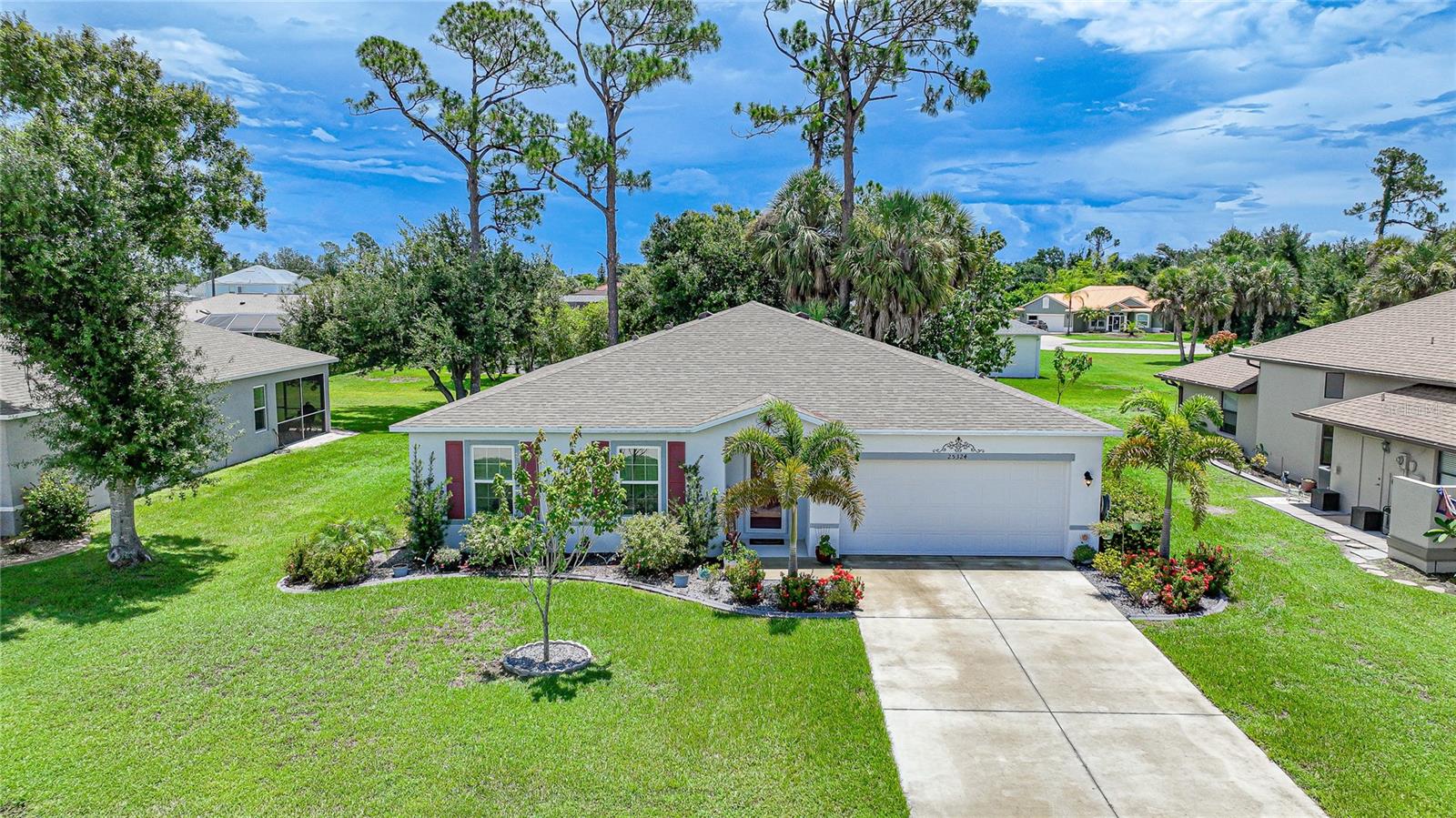 The home you have been waiting for!!!! This Stunning and Immaculate 4 Bedroom, 2 Bathroom, 2 Car Oversized Garage Offers a Spacious and Open Flow layout Living/Dining/Kitchen Combo combined with a Desirable Split Floor plan. Perfect for entertaining Family and Friends. It's located in the Prodigious and Well-Established Punta Gorda Isles of Deep Creek Community. This Beautiful Maronda Built Home offers so much to anyone looking for that perfect place to call their own. Perfectly Situated on 9,599Sq. Ft. Lot backing up to a Greenbelt giving you that extra Serinity and Privacy!!!It has been meticulously kept and sustained Absolutely no Hurricane Damage. Home was built in 2020 so you have the peace of mind that you are getting a NEWER HOME without the wait time for one to be built. Comes with Hurricane Shutters giving you that extra level of protection that makes you feel secure! Yard offers Mature Oaks, Pines, Palms and Fruit Producing Trees along with beautiful Professional landscaping while you get to sip coffee on the back Fully Screened-In Lanai and enjoy the natural beauty and peace this area generously provides. Home has a 2020 Roof, 2020 A/C, 2020 Water Heater and All 2020 Appliances. Convenient to I-75, Shopping, Restaurants and many other amenities and conveniences. Just a short drive to breathtaking Charlotte Harbor, the Peace River, Historic Downtown Punta Gorda, Community Centers, Schools, Parks, multiple MLB Spring Training Complexes, World Class Fishing, Boating, Golfing, The Brand New Extravagant Sunseeker Resort and the World-Renowned Gulf Beaches of Southwest Florida!!! Do NOT miss the opportunity to make this home yours!!! SCHEDULE A SHOWING TODAY!!!