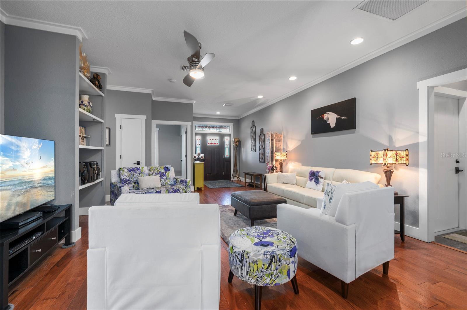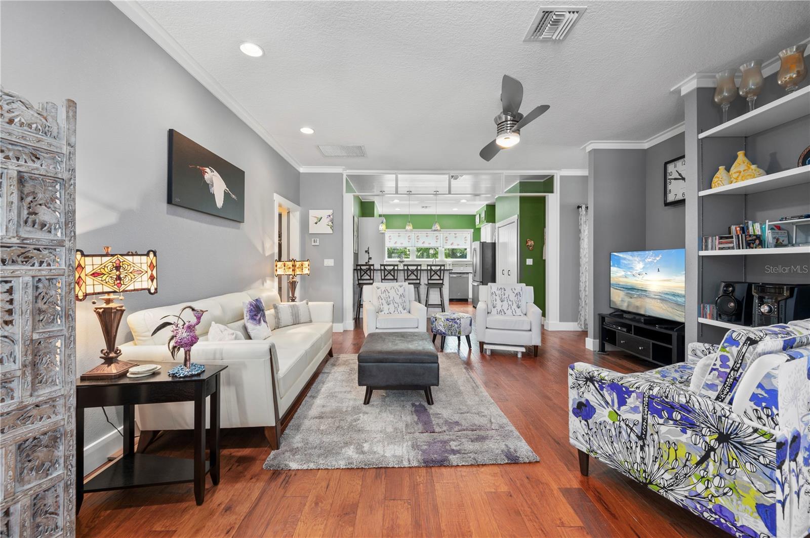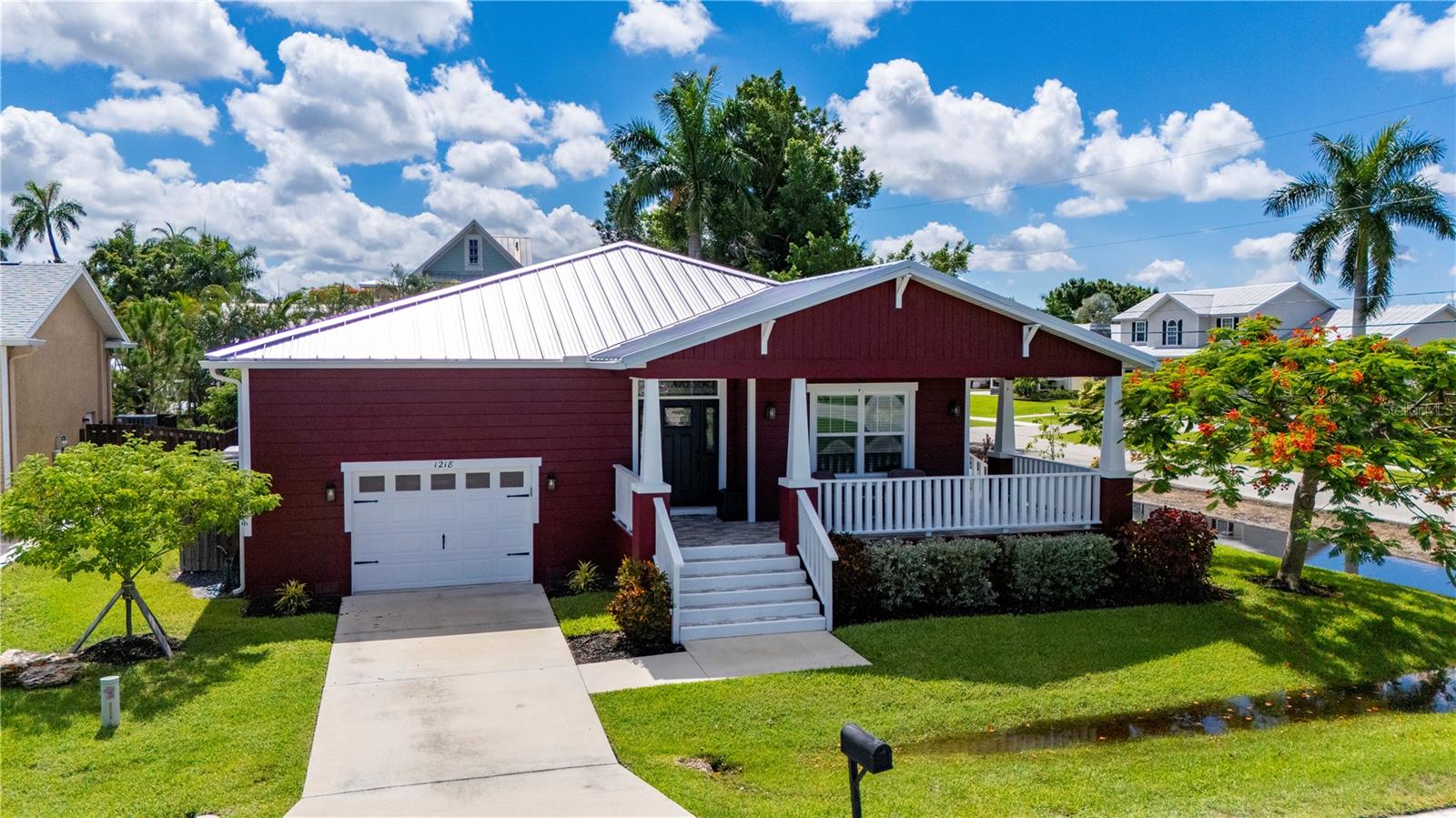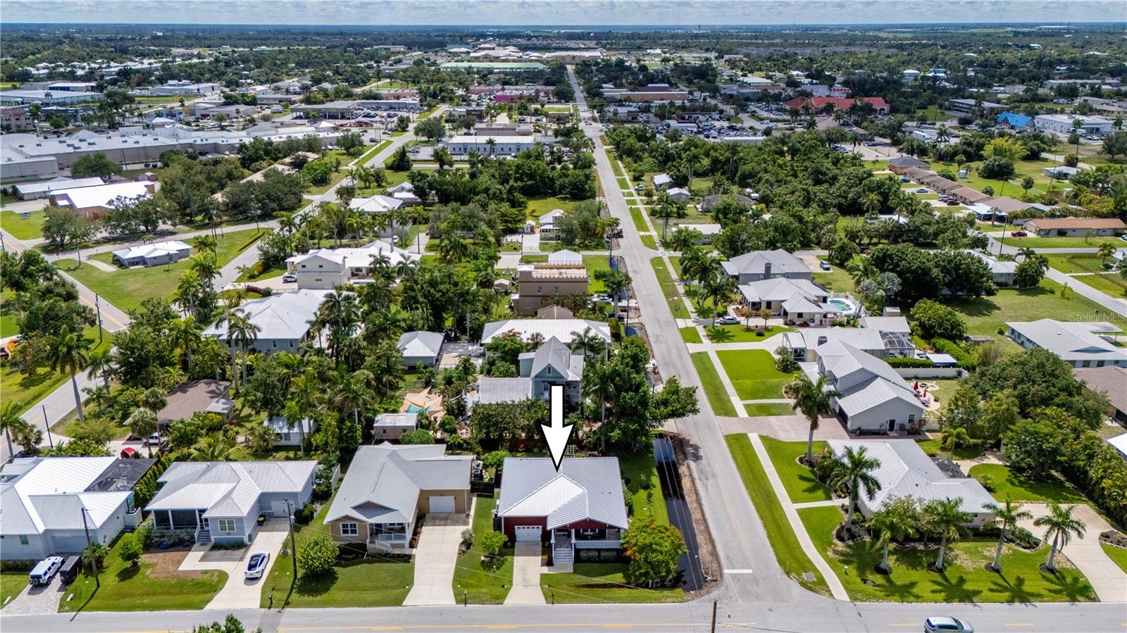 HUGE PRICE IMPROVEMENT Welcome to this charming custom home nestled in downtown Punta Gorda. Enjoy stunning Florida sunsets from the expansive wraparound porch adorned with tongue-grooved wood ceilings. For entertaining guests, there's a spacious covered screened lanai. The home is fortified with hurricane windows and doors, providing peace of mind during stormy weather. A standing seam metal roof was installed in 2023. In case of power outages, the home is equipped with a automatic whole house 16kw generator fueled by two 250-gallon propane tanks, ensuring uninterrupted functionality. The backyard offers privacy with a sturdy 6' wooden fence, creating a serene retreat. Step outside, and you're just moments away from walking and biking paths leading to Charlotte Harbor, downtown restaurants and shopping, as well as Fisherman's Village. This home blends comfort, convenience, and natural beauty seamlessly. As you step inside this home, you'll immediately notice 9 foot ceilings along with the quality and craftsmanship that defines its interior. The kitchen features a tongue-grooved wood ceiling, complemented by real wood cabinetry topped with quartz countertops. In the living room, crown molding adds a touch of sophistication, while 6" baseboards and custom molding enhance the overall aesthetic throughout the home. The open floor plan seamlessly connects the living spaces, creating a welcoming atmosphere ideal for both everyday living and entertaining. The master bedroom is a retreat with its spacious layout and a huge walk-in closet, providing ample storage for your belongings. Throughout the home, there is plenty of storage space to keep everything organized and easily accessible, ensuring both functionality and style in every corner. This home truly blends meticulous design with practical living spaces, offering comfort and elegance in equal measure.