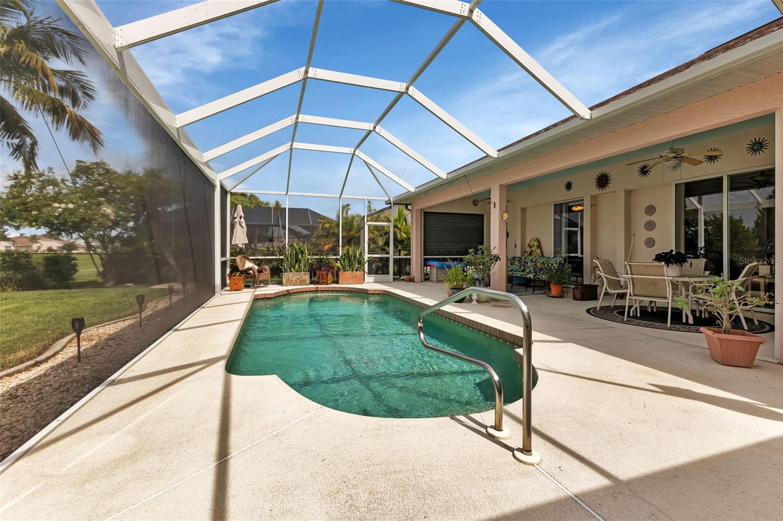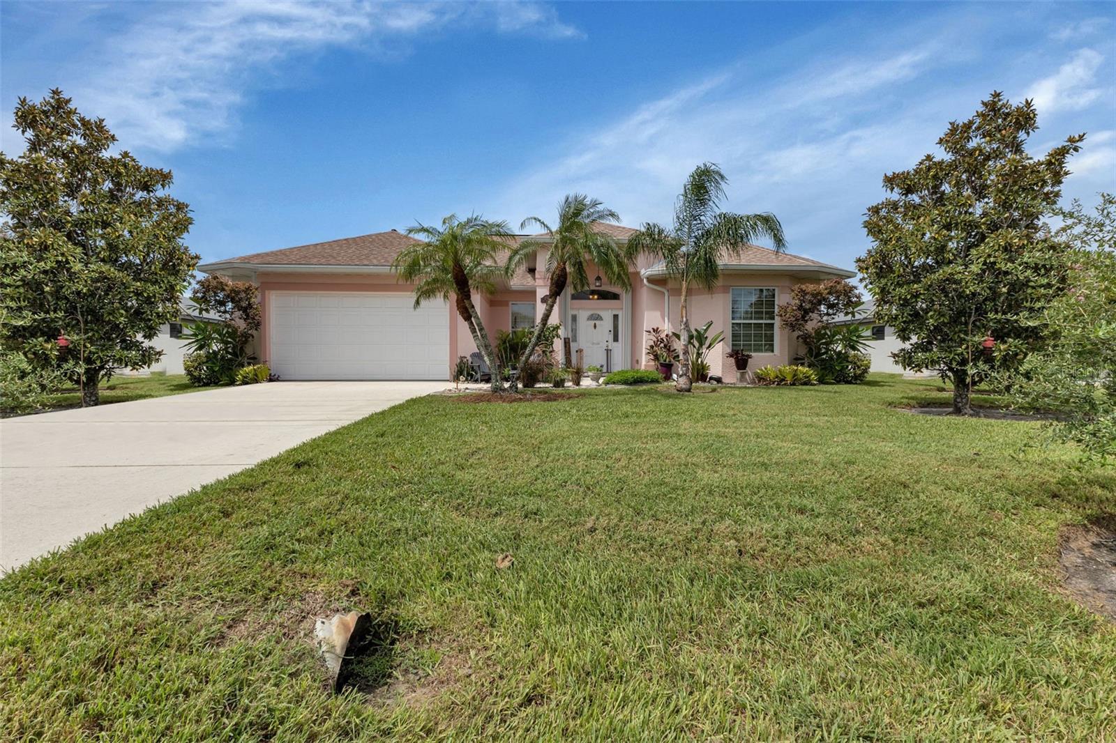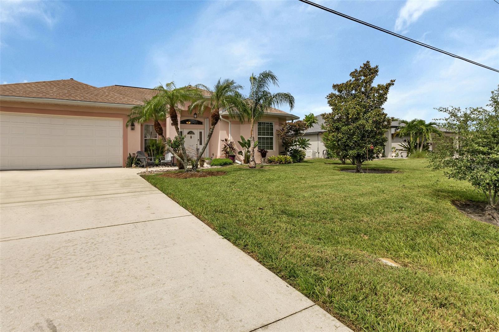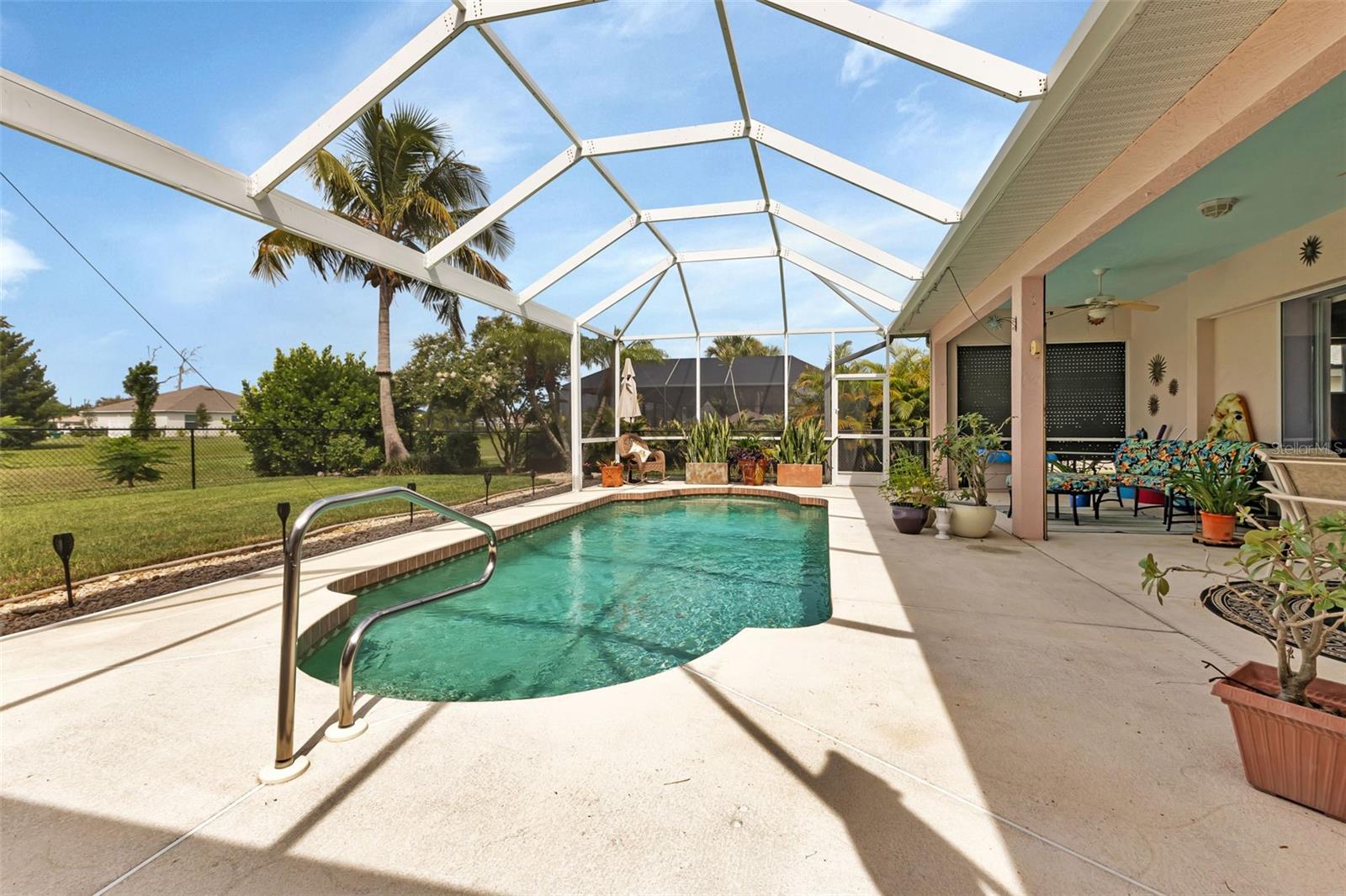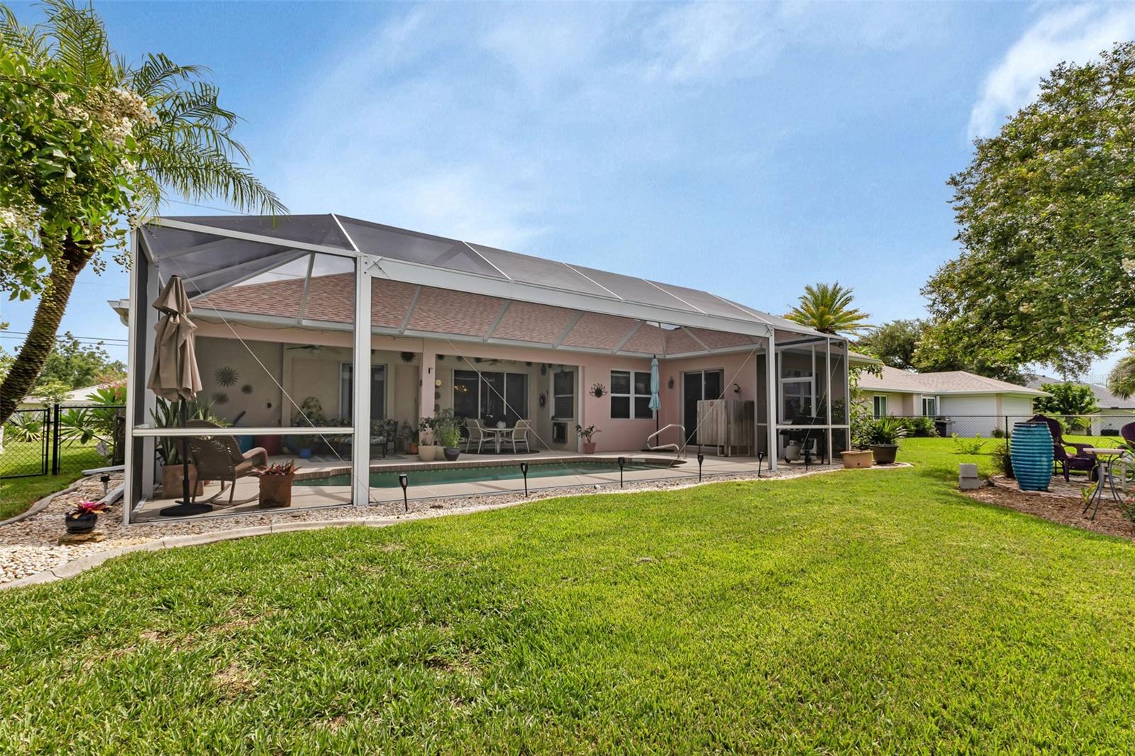 OWNER MOTIVATED!!! Welcome to this 2004, 1,983 square foot, canal home in Deep Creek. It boasts a pool, fenced yard, with 3 spacious bedrooms, 2 bathrooms, a den and an ample attached 2 car garage. As you pull into the driveway, you are welcomed by a mature, flowering landscape. The exterior covered grand entry opens to a formal foyer. It leads to a great room offering dining, entertaining and meal preparation areas. There is a large dinette behind the ample kitchen with additional bar seating at the kitchen island. The recently purchased stainless steel appliances are full of special features. There are beautiful tile floors throughout the common living areas. The office, with adjacent Jack and Jill bath, has pocket doors, paired with 2, good sized bedrooms off the foyer. There are sliding doors in the ensuite, and hide away sliding glass doors in the living room and second bedroom, that open to a large hurricane shuttered lanai. The screened pool area has plenty of room for entertaining and furniture, including a modesty screen for the outdoor shower. The picture window screening affords panoramic views of the mature flowering landscape enclosed in the fenced yard with 3 large gates as well as views of distant homes across the canal. The large primary private bedroom with ensuite features wood laminate floors, a walk in shower, Jacuzzi, separate vanities and a private water closet. Recent roof, cage screens, exterior paint, and newer appliances make this home move in ready. New roof in 2020. Generator hook up and new garage door. Hot water heater is electric plus solar. This home also has an attic fan. New pool cage 2022. OWNER IS OFFERING $5K TOWARDS A PAINT ALLOWANCE. The Deep Creek community has a public golf course, dining, shopping and restaurants. Close to I-75 you are close to the Punta Gorda airport, beaches, boating, and additional shopping and restaurants.
