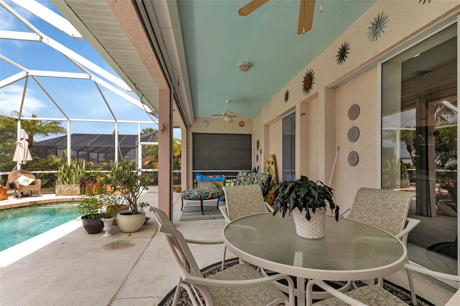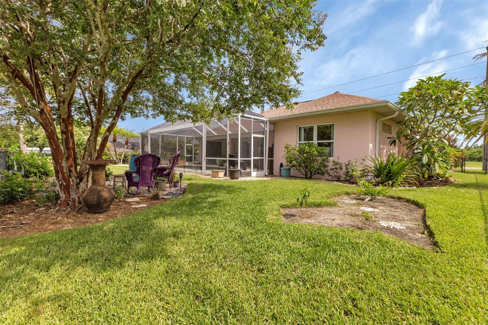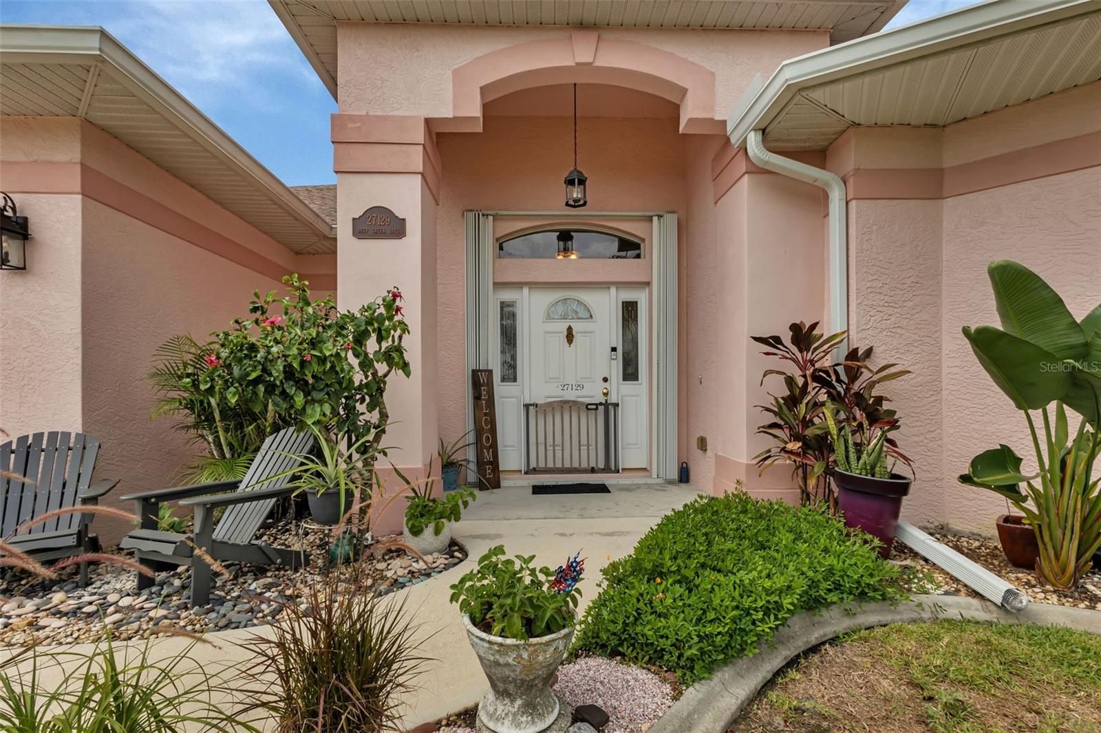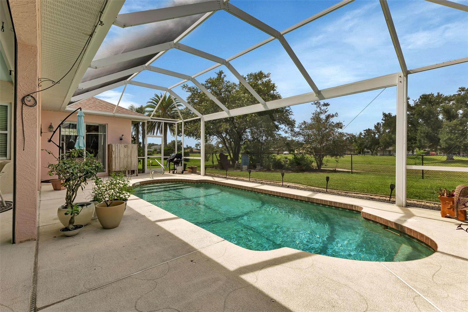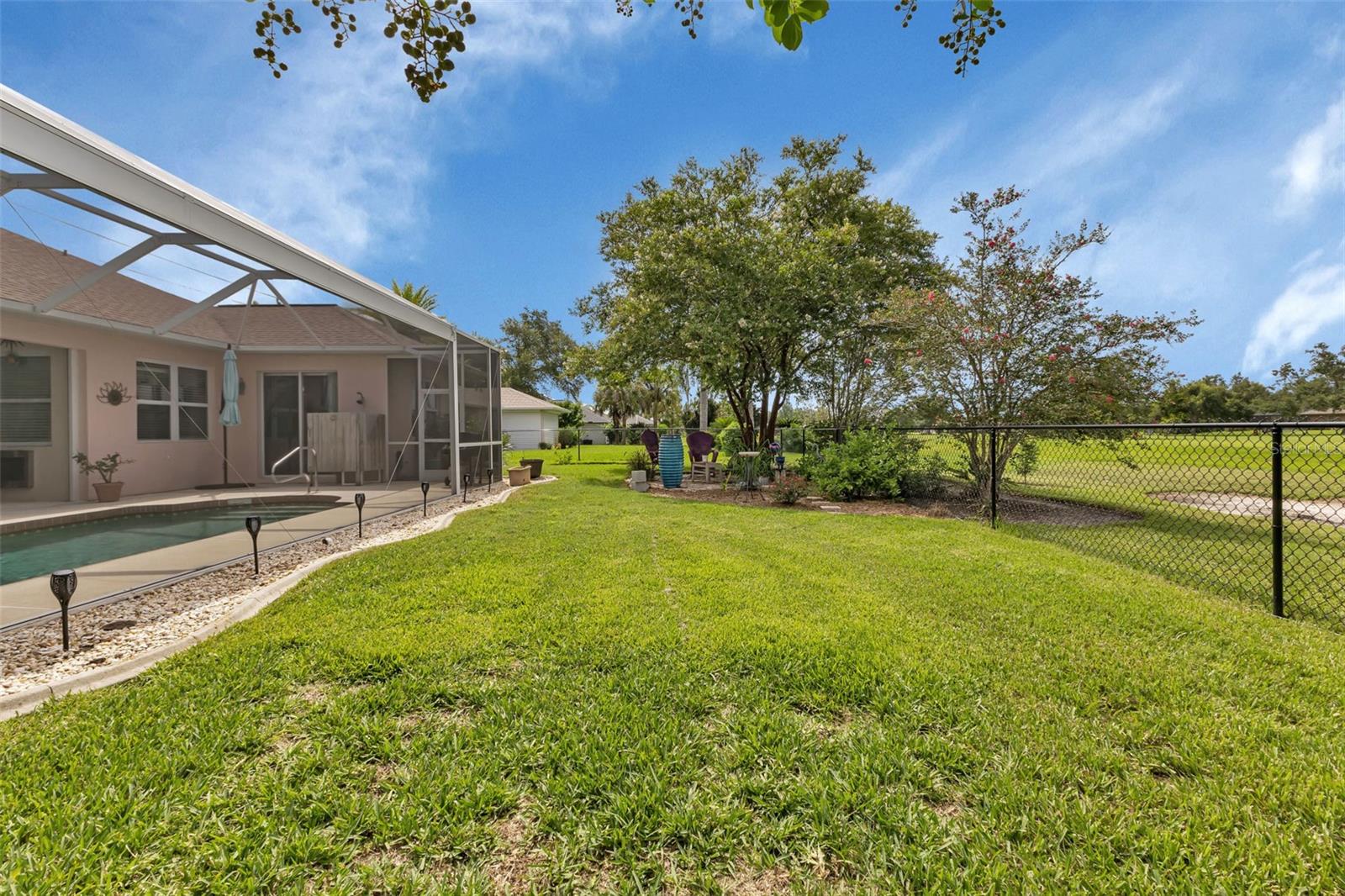 OWNER MOTIVATED!!! Welcome to this 2004, 1,983 square foot, canal home in Deep Creek. It boasts a pool, fenced yard, with 3 spacious bedrooms, 2 bathrooms, a den and an ample attached 2 car garage. As you pull into the driveway, you are welcomed by a mature, flowering landscape. The exterior covered grand entry opens to a formal foyer. It leads to a great room offering dining, entertaining and meal preparation areas. There is a large dinette behind the ample kitchen with additional bar seating at the kitchen island. The recently purchased stainless steel appliances are full of special features. There are beautiful tile floors throughout the common living areas. The office, with adjacent Jack and Jill bath, has pocket doors, paired with 2, good sized bedrooms off the foyer. There are sliding doors in the ensuite, and hide away sliding glass doors in the living room and second bedroom, that open to a large hurricane shuttered lanai. The screened pool area has plenty of room for entertaining and furniture, including a modesty screen for the outdoor shower. The picture window screening affords panoramic views of the mature flowering landscape enclosed in the fenced yard with 3 large gates as well as views of distant homes across the canal. The large primary private bedroom with ensuite features wood laminate floors, a walk in shower, Jacuzzi, separate vanities and a private water closet. Recent roof, cage screens, exterior paint, and newer appliances make this home move in ready. New roof in 2020. Generator hook up and new garage door. Hot water heater is electric plus solar. This home also has an attic fan. New pool cage 2022. OWNER IS OFFERING $5K TOWARDS A PAINT ALLOWANCE. The Deep Creek community has a public golf course, dining, shopping and restaurants. Close to I-75 you are close to the Punta Gorda airport, beaches, boating, and additional shopping and restaurants.