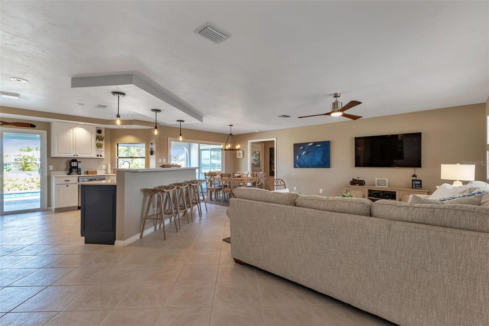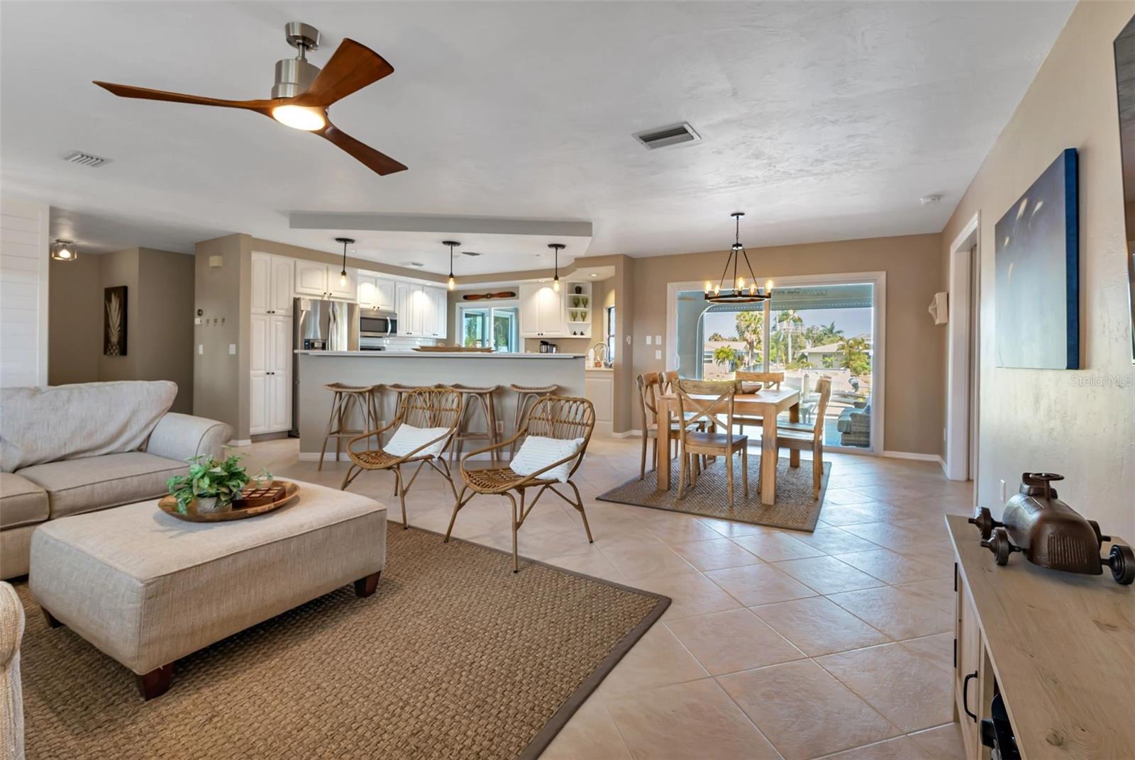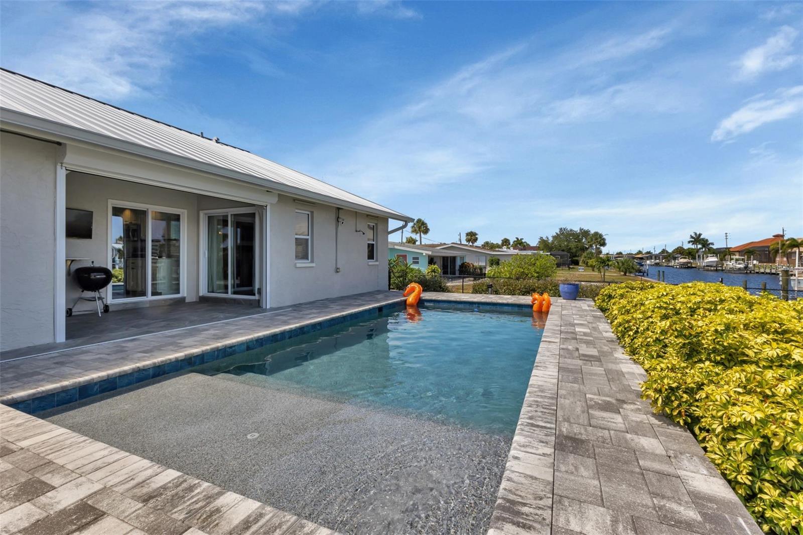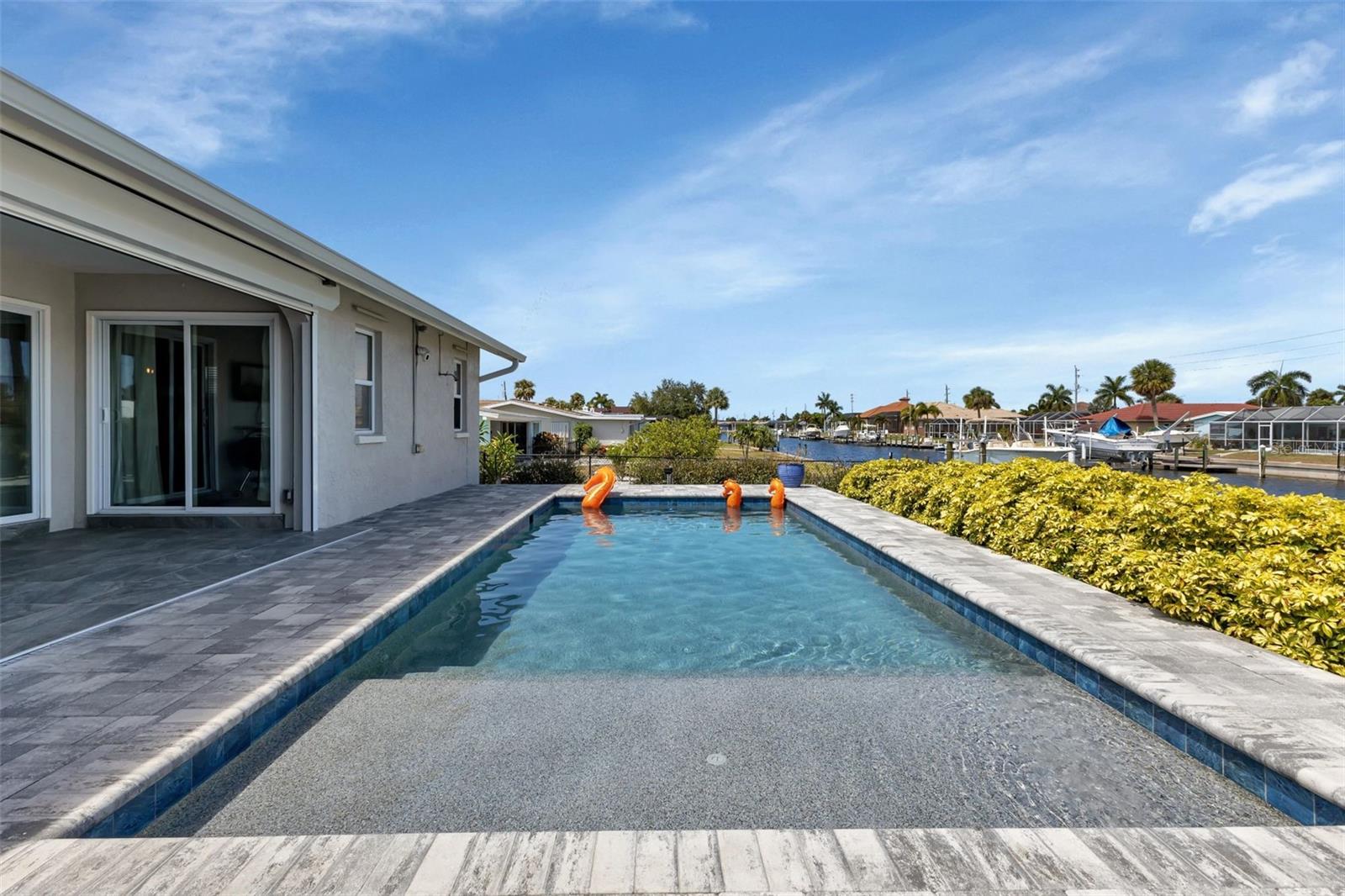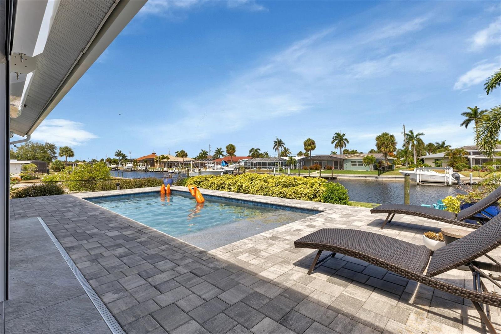 NO FLOODING - NO HURRICANE HELENE/MILTON DAMAGE - Already booked out for top dollar on AirBNB and making you money from January-April 2025 (can be cancelled if requested). These are transferrable and already up and running with an AirBNB property management company. Walk into a money making investment property! Welcome to Punta Gorda Isles—a haven for boating enthusiasts with one bridge leading to direct access to Charlotte Harbor and the Gulf of Mexico. This beautifully updated 3-bedroom, 2- bathroom home is located within 2 miles of Gilchrist Park, Fisherman's Village, and other local attractions like Hounds on Henry Dog Park and History Park. Step inside to discover a rare and sought-after open floor plan flooded with natural light. Elevated above FEMAs flood elevation standards, with assumable flood insurance, this home offers peace of mind. Outside, lush tropical landscaping surrounds stunning canal views, enhanced by a seawall installed in 2019. Recent upgrades include a BRAND NEW metal roof (2023), a 16 SEER HVAC system with updated ductwork (2018), a complete house re-pipe completed in 2018, tented for termites in 2023 and brand new dock in 2024. The kitchen features a stylish contrasting island, Silestone countertops, and stainless-steel appliances. The pool deck offers panoramic views and beautiful sunsets with west facing views. The great room boasts plantation shutters, insulated windows, and sliders for comfort and energy efficiency. Hurricane shutters and power roll-downs over the back patio add security and convenience. Step onto the spacious rear lanai with its own brand new roll-down hurricane shutters, installed in 2024 and enjoy the large paver patio leading to the canal—perfect for hosting gatherings and watching breathtaking sunsets. Don't miss the chance to tour this waterfront paradise in Punta Gorda Isle. Whether for living or investment, this home breathes luxury and convenience. Just bring your clothes and start enjoying the best of waterfront living!