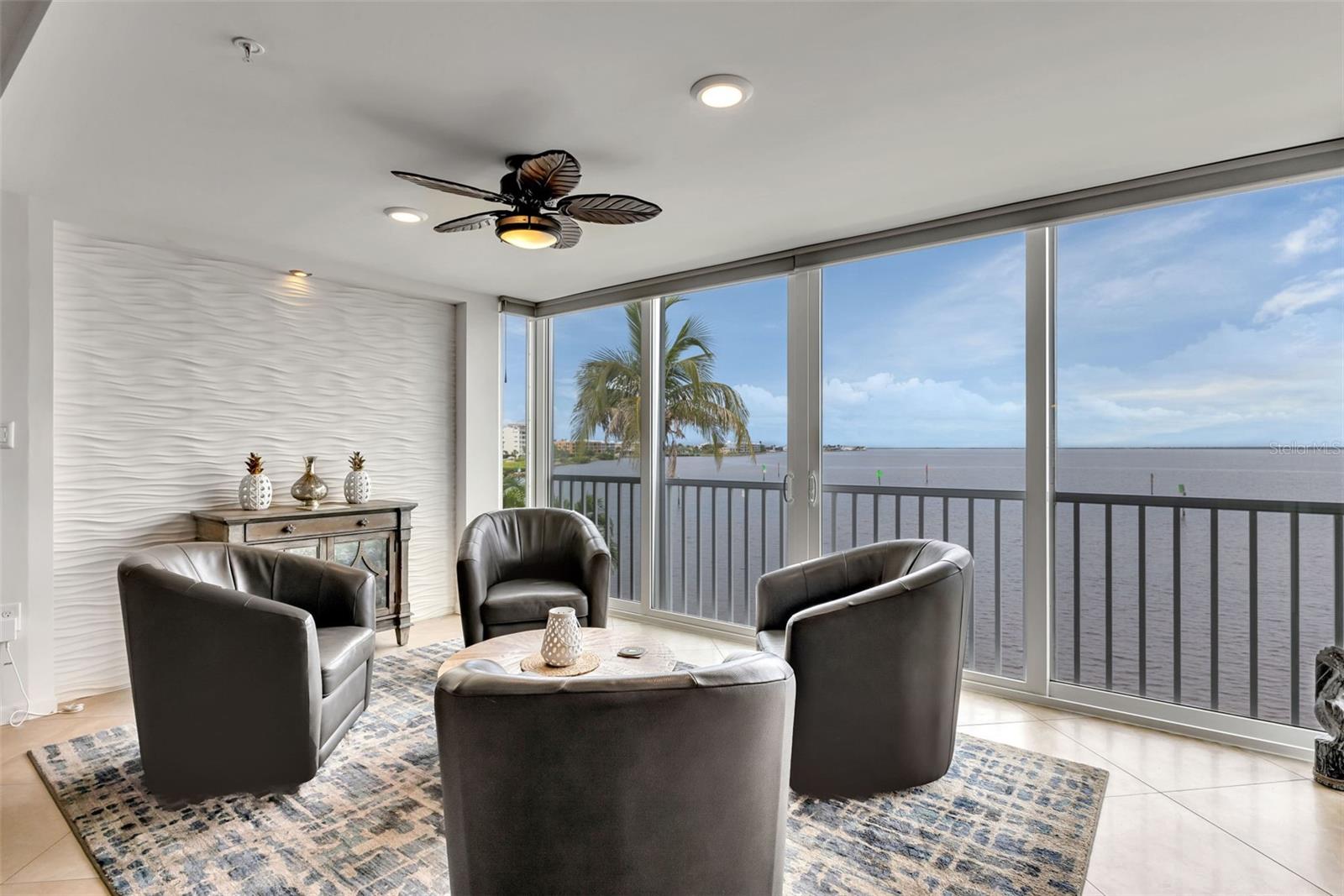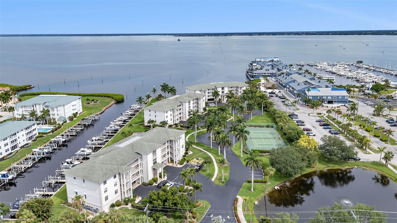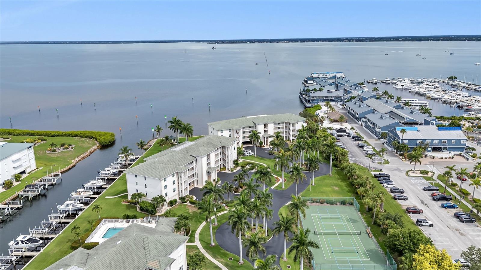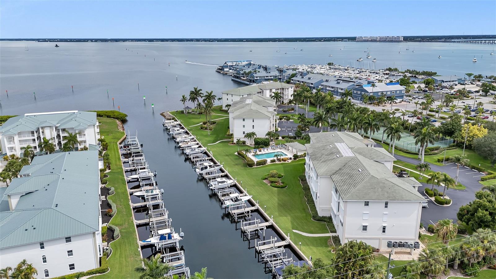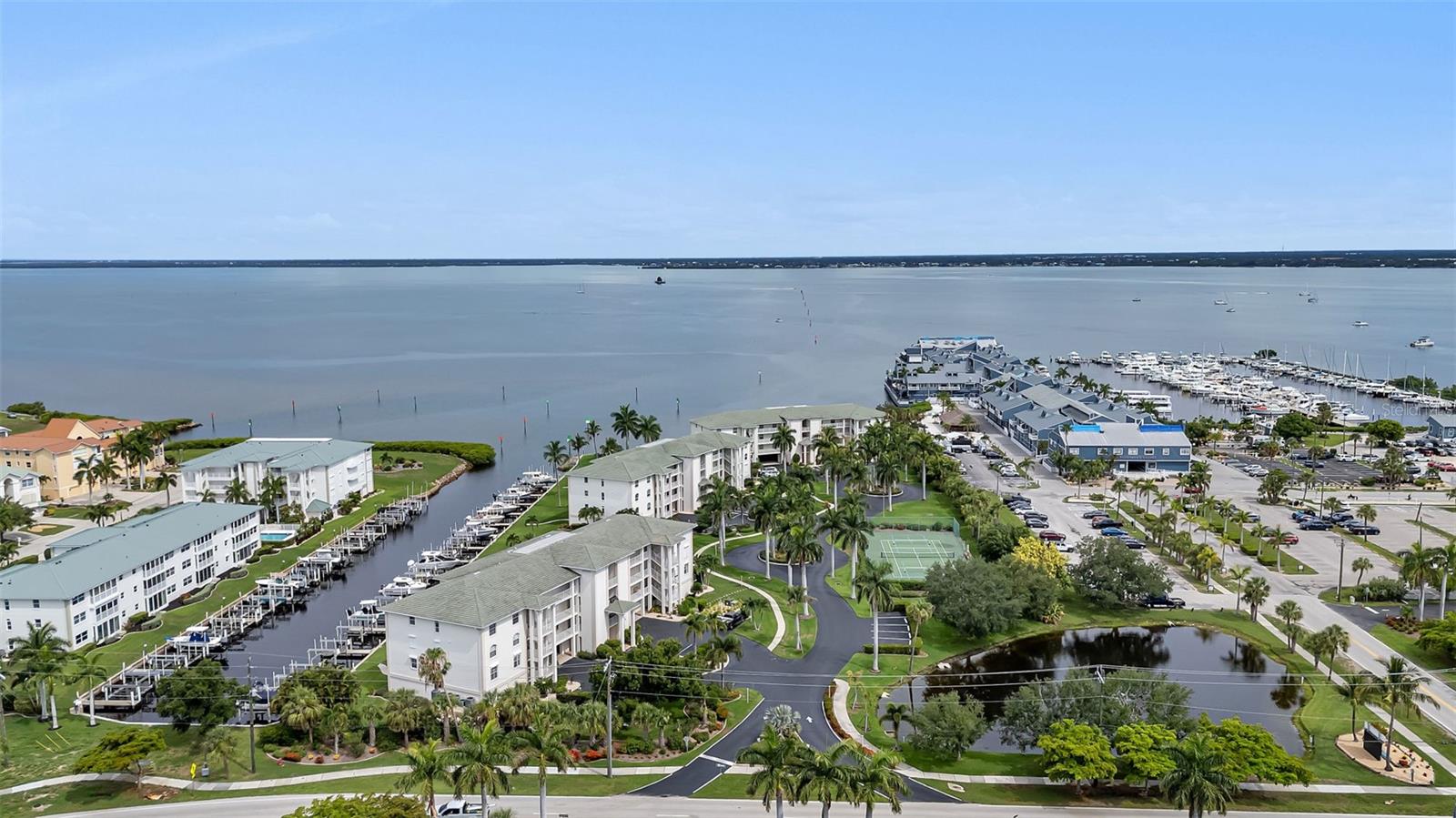 Discover a rare gem in Starboard Point with this TURNKEY 3-bedroom, 2-bathroom condo boasting elegance, class, and an unparalleled view of Charlotte Harbor. Located on the 3rd floor with elevator access and a deeded boat slip just steps away, this home offers the ultimate waterfront lifestyle.Upon entry, a welcoming foyer leads to a separate utility and laundry room featuring stone countertops and ample storage. The open concept living and dining area is perfect for entertaining, complemented by a chef's kitchen featuring a large island, granite countertops, wine refrigerator, and stylish pearl mosaic backsplash. Hurricane impact sliders open to reveal breathtaking views of Charlotte Harbor, with battery-operated roll-down sunshades for comfort. The master bedroom offers a tranquil harbor view and includes a walk-in closet with custom cabinetry and an en suite bathroom featuring dual sinks and a tiled shower. The spacious second bedroom doubles as a study or office, while the third bedroom enjoys easy access to a shared bathroom. Additional features include hurricane impact windows throughout and a DEEDED BOAT SLIP with a 10,000lb lift. Residents enjoy amenities such as parking, storage, a community library, pickleball and tennis courts, walking and bike paths, and a community pool. Ideally located near dining, shopping, entertainment, Fishermen’s Village, historic downtown, Gilchrist Park, and the Visual Arts building, with easy access to US-41 and I-75. Experience waterfront living at its finest in this paradise oasis, where every day offers wonder, adventure, and the best of southwest Florida. Don’t miss out—schedule your showing today