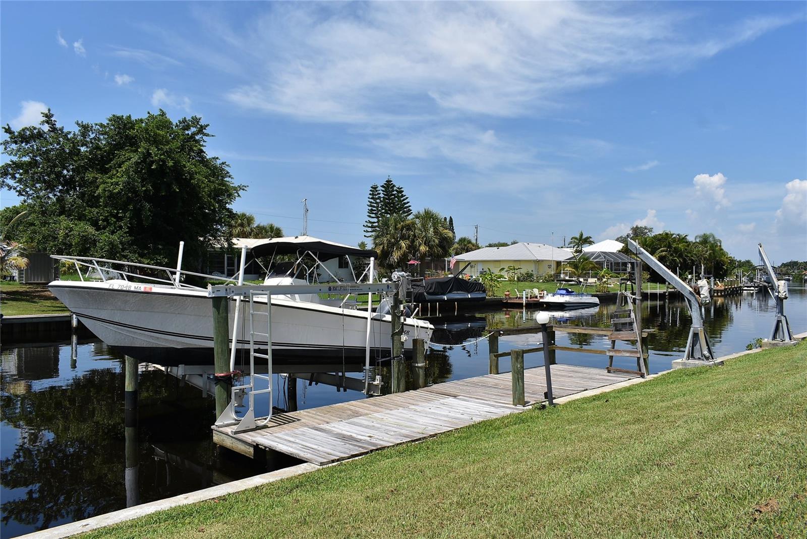 Price adjusted to today's market. NO Hurricane Helene flooding or damage. Flood insurance policy transferrable at closing. Don't miss out on this Canal Front Gem! This home has it all, 3 bedrooms, 2.5 bathrooms, 1 car garage, screened carport, attached storage shed, and laundry/half bathroom all under roof on this oversized 1/3 acre canal front lot. **NEW water Heater March 2024 ** NEW Metal Roof May 2022** Re-piped overhead March 2021** Boatlift installed December 2016. Screened front entry welcomes you into the open dining and living rooms with oversized sliding doors to the lanai and backyard. Enjoy your morning or evening beverage while relaxing on the screened lanai or in the breakfast nook space that overlooks your dock with a 10,000 pound boat lift and custom kayak launching system directly into the San Marino Canal with only 1,000 feet to the Peace River. Spacious primary bedroom offers an ensuite bathroom. 120 feet of concrete seawall also accommodates a davit system. Accordion Hurricane Shutters on the lanai sliding doors. Oversized driveway offers parking space for your toys and company. **Seller is offering an American Homeshield Warranty**. Located in Harbour Heights a non-deed restricted waterfront community of Punta Gorda without the expense of a Homeowners Association. The Charlotte Harbor Water Association has recently completed updating the water distribution system with new piping in the community with no expense to the property owner. Only 425 feet to the remodeled 8 acre Harbour Heights Park maintained by Charlotte County, providing a public boat ramp, day docks, playground, pavilion and barbecue areas, basketball, shuffleboard, lighted tennis/pickle ball courts, horseshoes, and a butterfly garden. Boat ramp provides access to the Peace River, the Blueway Trails, Charlotte Harbor and the Gulf of Mexico. Just a 15 minute drive to the Punta Gorda Airport (PGD). Golf, restaurants, schools, medical, churches and shopping are all nearby. A short distance to I-75 at exit 167 or 170 affords easy access to historic downtown Punta Gorda/Fort Myers/Naples to the south and North Port/Venice/Sarasota to the north. Only 3 miles to Deep Creek Golf Club, open to the public.