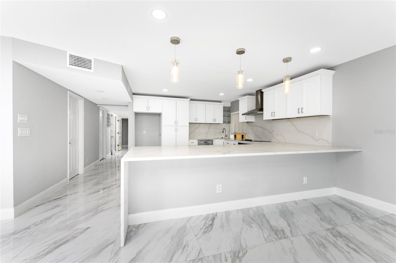 LOCATION! LOCATION! LOCATION! MILLION DOLLAR HARBOR VIEW! NEWLY REMODELED 2500 SQ FT CONDO WITH 2 PARKING SPACES & STORAGE UNDER ROOF!!! Walking distance to Fishermen's Village, Charlotte Harbor Front Parks, Downtown Historic Punta Gorda with it's shopping/restaurants and 18 miles of Punta Gorda Pathways walking and biking trails. This spacious 3rd floor corner unit has so many beautiful upgrades including 3'x3' high gloss porcelain Tile through out the entire unit. 3 bedrooms, 3 baths with 2 of these baths completely remodeled with walk in showers that make a decorator's statement! The primary bath has 3 sinks and 2 closets with the walk-in being 10x6. The primary bedroom is 19x13 with 6 windows making it light and bright. The Large 13x12 guest bedroom has it's on bath! New Kitchen has white shaker cabinets, gorgeous quartz counters that continue up the back splash and new stainless appliances. The kitchen is open to the 24x28 Great Room with expansive water views from everywhere. Lovely mirrored wall reflect the views as well. Impact Glass windows with an electric hurricane shutter on the lanai to protect the new zero corner sliding glass doors that bring the lanai into the living area. 6" baseboards throughout. This is a security entrance building and has a large remote door that accesses the lobby/elevator and the garage. The formal front entry is programmed to your phone to allow access remotely. LaVista is very architecturally appealing with a new TPO roof in 2023. Plenty of guest parking in the front. It is one of the few units in Punta Gorda Isles that comes with 2 covered parking spaces under roof. ATTENTION BUYERS, UNITS OF THIS SIZE WITH HARBOR VIEWS RARELY HIT THE MARKET AND IT IS JUST WAITING FOR THAT BUYER TO MAKE IT THEIR PIECE OF PARADISE AND JOIN THE GREAT RESIEDENTS OF LAVISTA CONDOMINIUM!