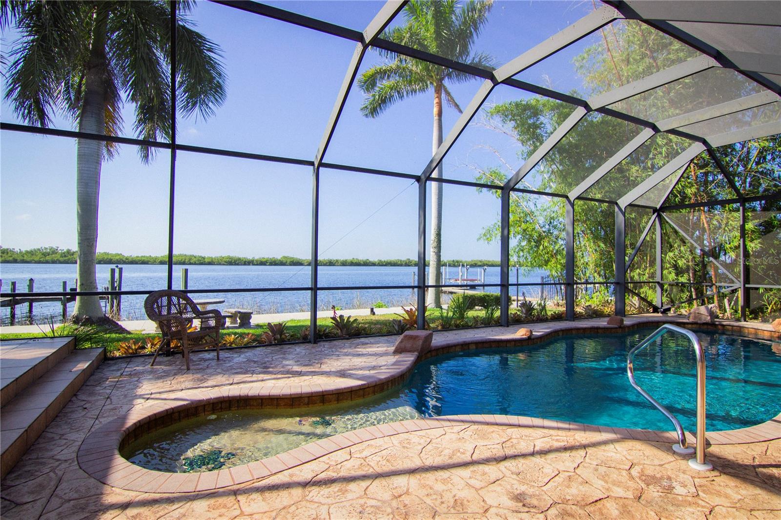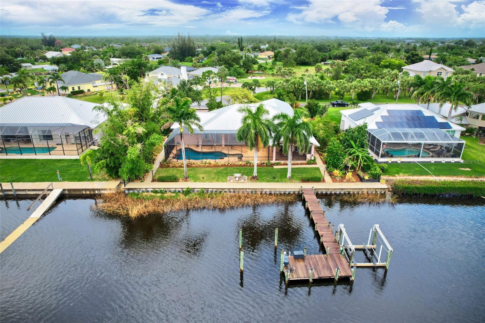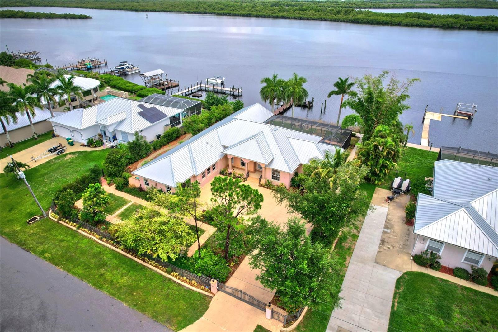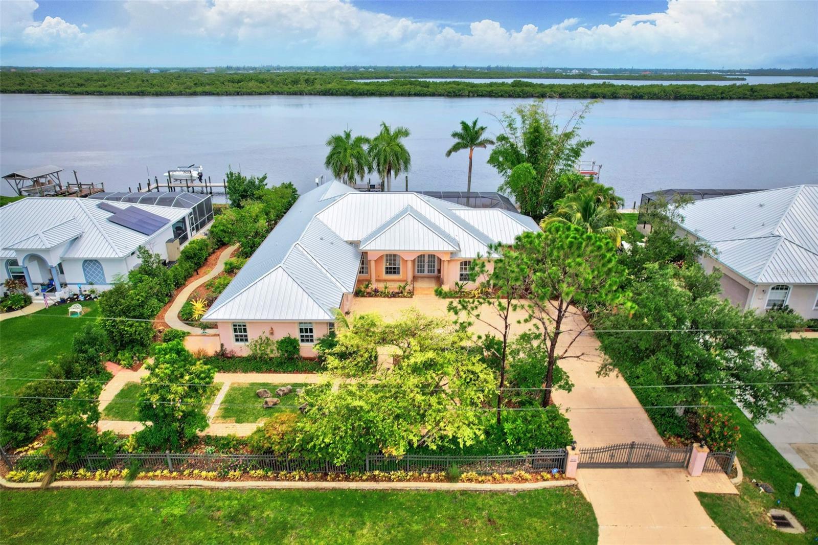 MOTIVATED SELLER!! Extraordinary Peace River fishing & boating waterfront home with Florida-friendly edible garden. This dream home for boating & fishing features a 10ft x 20ft dock with electric and water, located on one of the Peace River’s best fishing and crabbing spots. Sail boat access and a 10,000 LB boat lift with additional pilings for a future boat slip. Less than 10 min to Charlotte Harbor by boat with a gorgeous natural island view. The 120ft seawall is topped with a sidewalk, connecting to paved walkways throughout the private, fenced Florida-friendly garden oasis featuring over 14 types of mature fruit and nut trees. The two lawns/dog runs are irrigated and there are electric and water hookups throughout. New standing seam metal roof, motorized StormSmart hurricane screens, impact windows, and a new generator outlet. Open concept main room offers stunning river and garden views with over 31ft of pocket sliders and a large picture window to enjoy spectacular sunrises and sunsets. This is an incredible entertainment space with a panoramic view of the river from the screened pool w/ outdoor shower, covered lanai, and outdoor kitchen. By car, 5 min to I-75, 10 min to the Sunseeker Resort, and 15 min to downtown Punta Gorda. Serious inquiries only.