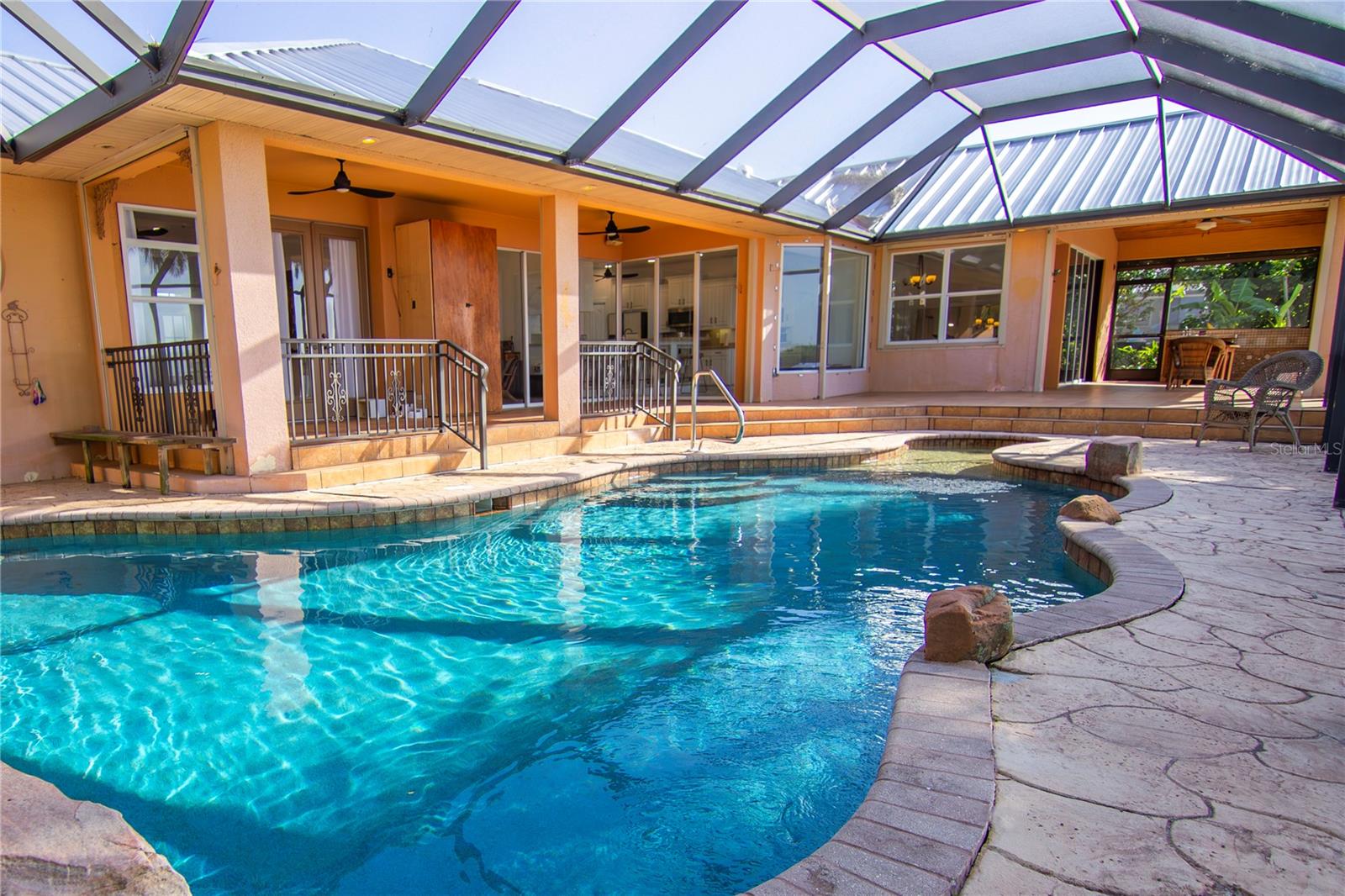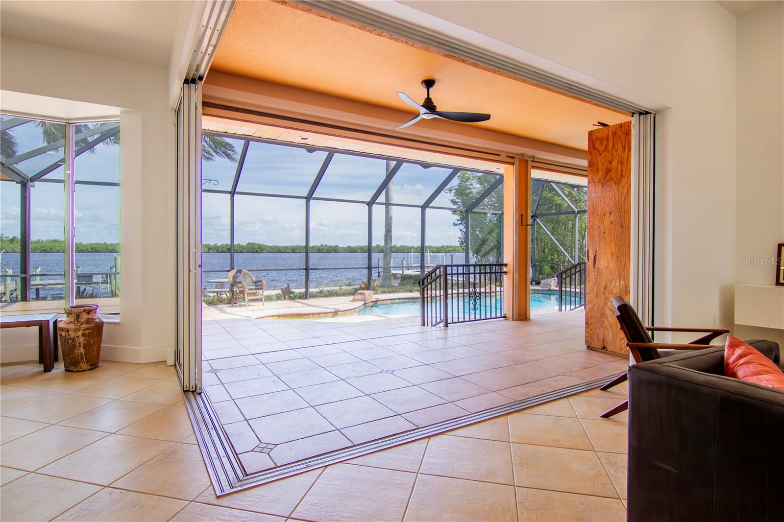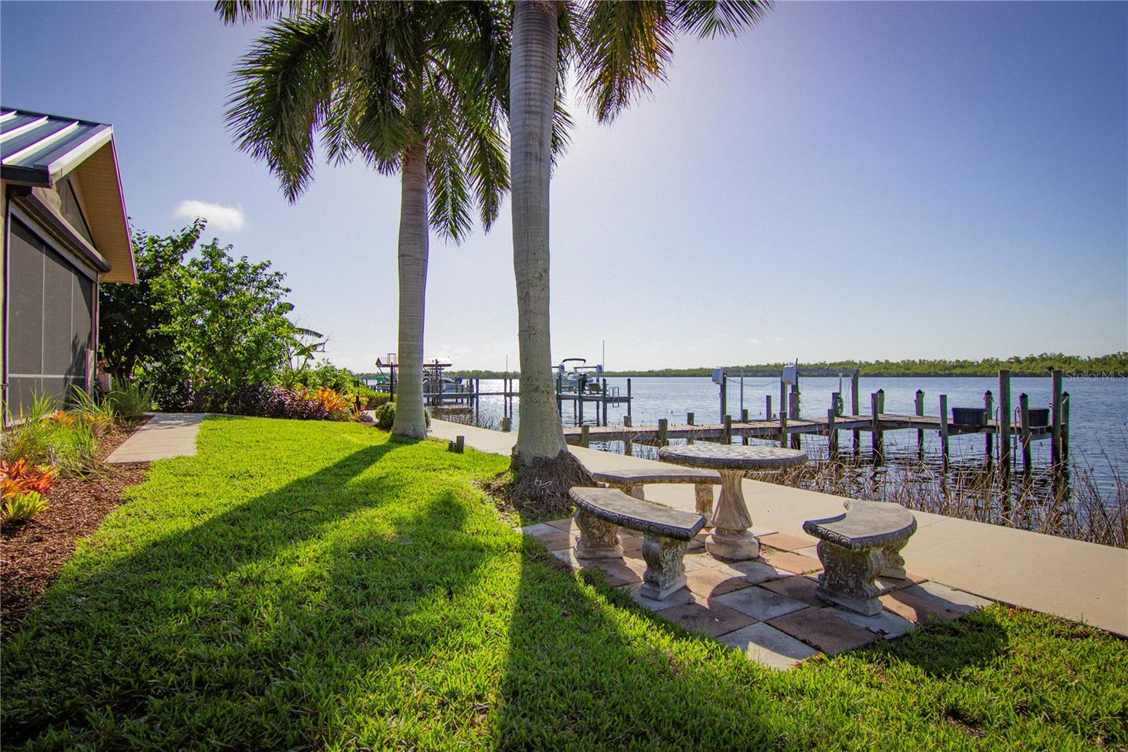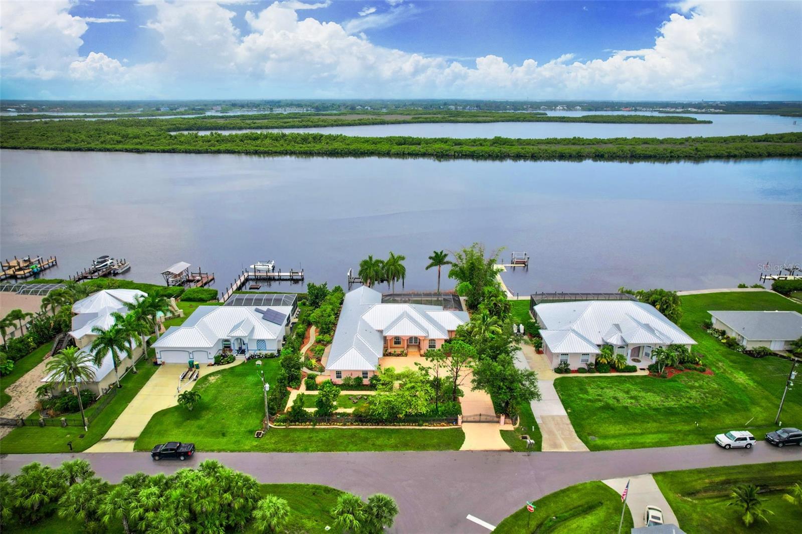 MOTIVATED SELLER!! Extraordinary Peace River fishing & boating waterfront home with Florida-friendly edible garden. This dream home for boating & fishing features a 10ft x 20ft dock with electric and water, located on one of the Peace River’s best fishing and crabbing spots. Sail boat access and a 10,000 LB boat lift with additional pilings for a future boat slip. Less than 10 min to Charlotte Harbor by boat with a gorgeous natural island view. The 120ft seawall is topped with a sidewalk, connecting to paved walkways throughout the private, fenced Florida-friendly garden oasis featuring over 14 types of mature fruit and nut trees. The two lawns/dog runs are irrigated and there are electric and water hookups throughout. New standing seam metal roof, motorized StormSmart hurricane screens, impact windows, and a new generator outlet. Open concept main room offers stunning river and garden views with over 31ft of pocket sliders and a large picture window to enjoy spectacular sunrises and sunsets. This is an incredible entertainment space with a panoramic view of the river from the screened pool w/ outdoor shower, covered lanai, and outdoor kitchen. By car, 5 min to I-75, 10 min to the Sunseeker Resort, and 15 min to downtown Punta Gorda. Serious inquiries only.