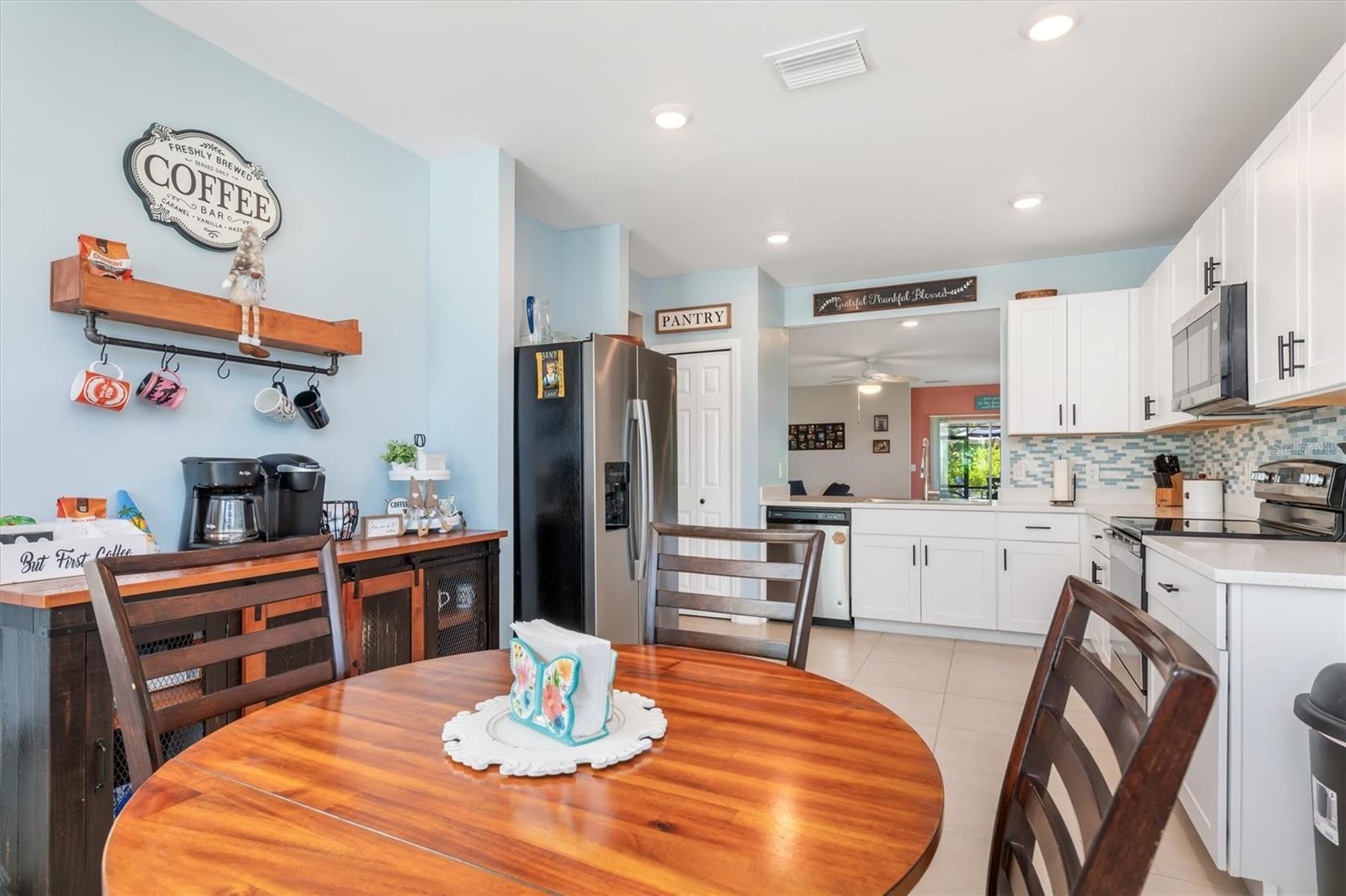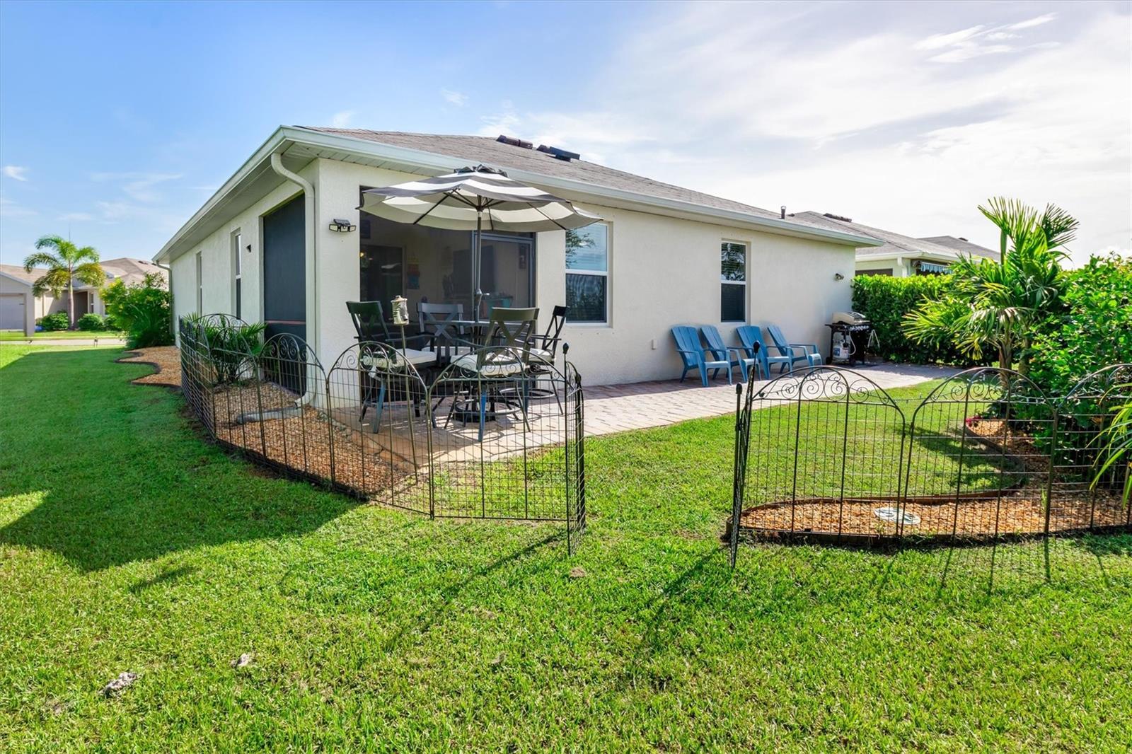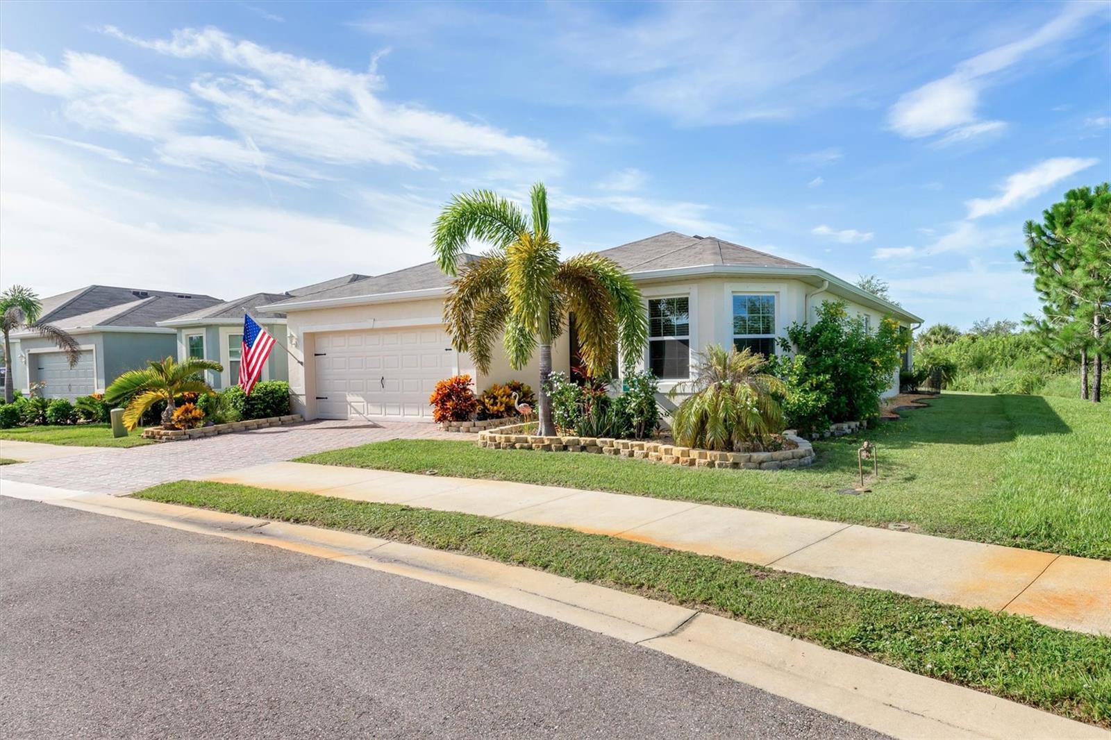 **Safe from Hurricanes Helene and Milton—no flooding, no damage, and no loss of power thanks to underground utilities! High and dry!!** LIKE NEW 2020 build, NOT IN A FLOOD ZONE, and just minutes from downtown Punta Gorda! Welcome to this pristine coastal split floorplan home located in the low-cost gated community of Calusa Creek. The home features QUARTZ COUNTERTOPS in both the kitchen and bathrooms, with updated sinks throughout and matte black hardware in the bathrooms. The kitchen shines with a farmhouse sink, tile backsplash, stainless steel appliances, and modern white shaker cabinets. SHIPLAP accents the guest bath, while fresh Key West paint throughout creates a bright, coastal vibe. NO CARPET anywhere—new luxury vinyl plank flooring in all the bedrooms ensures easy maintenance. With no neighbors behind or on one side, enjoy stunning sunrises and sunsets from the southwest-facing SCREENED lanai. The FENCED backyard, landscaped and pet-friendly, also includes an extended 40-foot paver pad for cookouts and entertaining. Enjoy the community pool and walking paths, and take a quick drive to downtown Punta Gorda for Charlotte Harbor, Fisherman’s Village, shopping, parks, and nightlife! This home shines with a newly resealed driveway and back pavers, plus full house gutters for lasting convenience. A perfect blend of style and practicality—schedule your showing today!