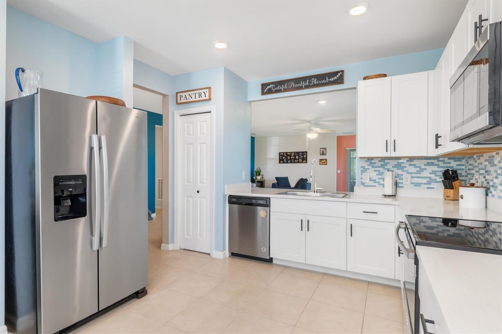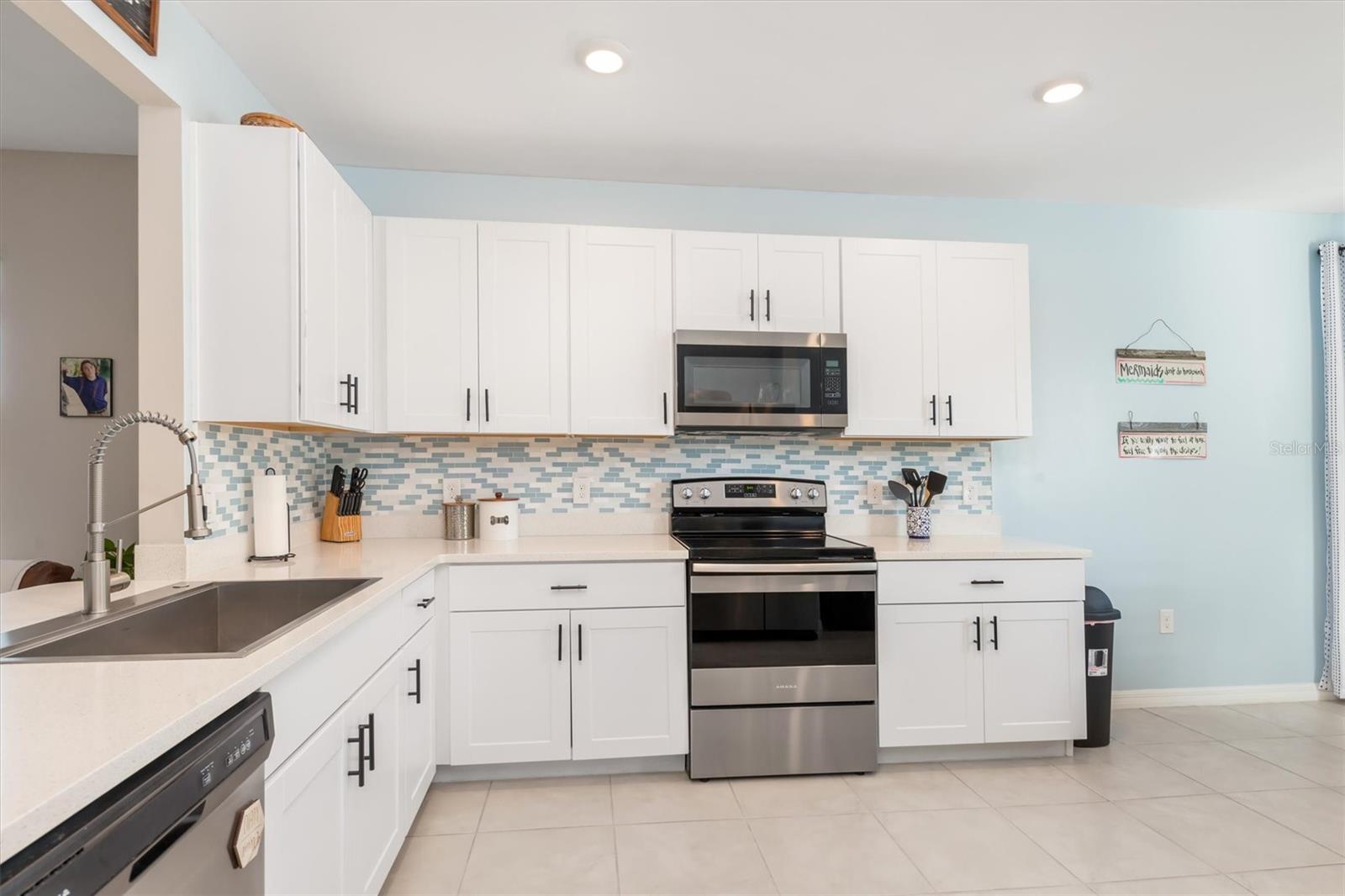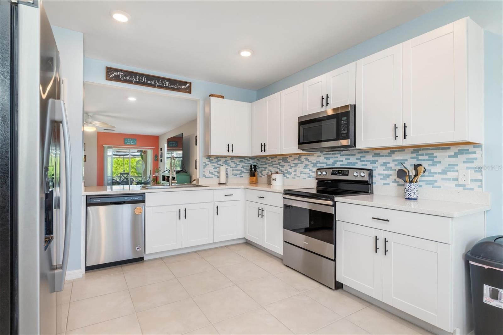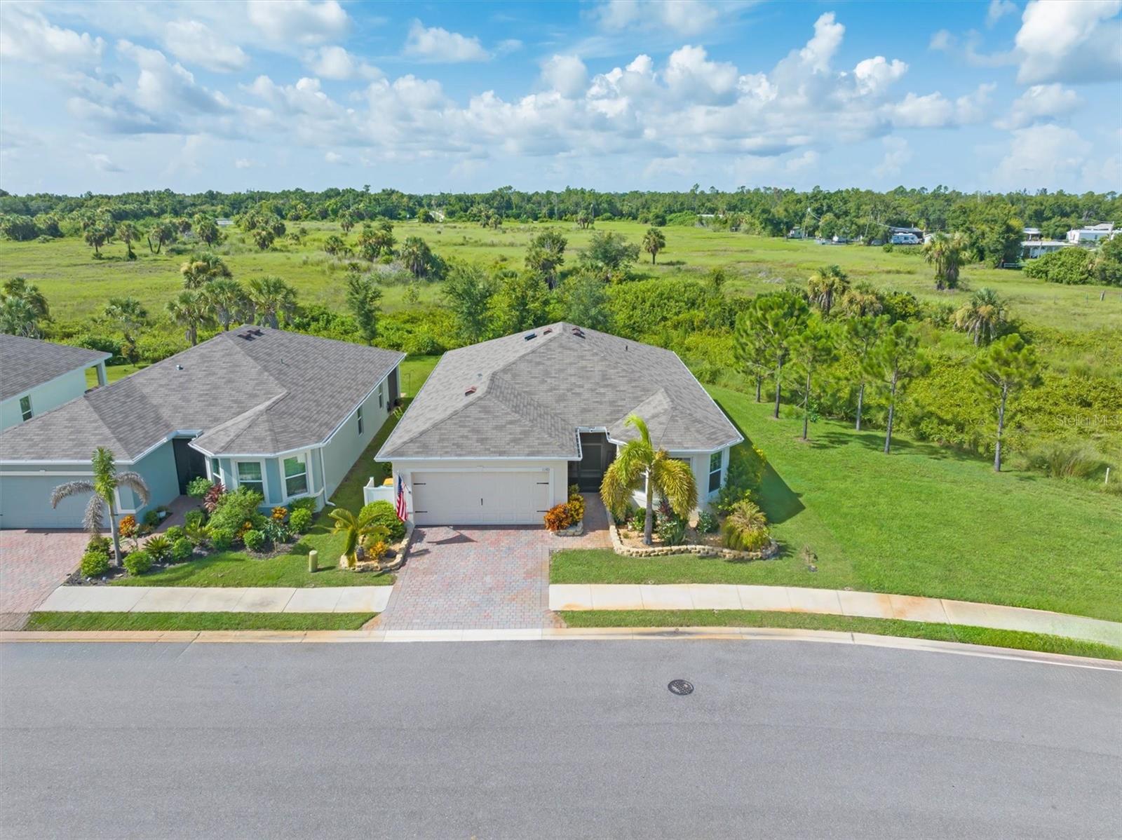 **Safe from Hurricanes Helene and Milton—no flooding, no damage, and no loss of power thanks to underground utilities! High and dry!!** LIKE NEW 2020 build, NOT IN A FLOOD ZONE, and just minutes from downtown Punta Gorda! Welcome to this pristine coastal split floorplan home located in the low-cost gated community of Calusa Creek. The home features QUARTZ COUNTERTOPS in both the kitchen and bathrooms, with updated sinks throughout and matte black hardware in the bathrooms. The kitchen shines with a farmhouse sink, tile backsplash, stainless steel appliances, and modern white shaker cabinets. SHIPLAP accents the guest bath, while fresh Key West paint throughout creates a bright, coastal vibe. NO CARPET anywhere—new luxury vinyl plank flooring in all the bedrooms ensures easy maintenance. With no neighbors behind or on one side, enjoy stunning sunrises and sunsets from the southwest-facing SCREENED lanai. The FENCED backyard, landscaped and pet-friendly, also includes an extended 40-foot paver pad for cookouts and entertaining. Enjoy the community pool and walking paths, and take a quick drive to downtown Punta Gorda for Charlotte Harbor, Fisherman’s Village, shopping, parks, and nightlife! This home shines with a newly resealed driveway and back pavers, plus full house gutters for lasting convenience. A perfect blend of style and practicality—schedule your showing today!