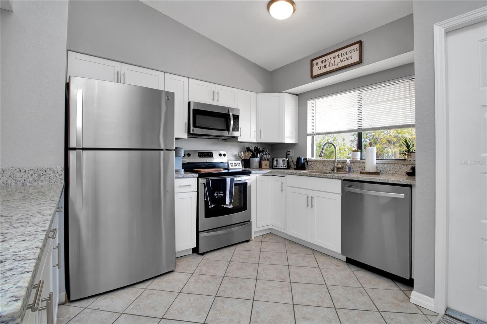 Get ready to see this stunning remodeled gorgeous golf course view condo in the highly desired neighborhood of Deep Creek in Punta Gorda. This bright condo’s roof is NEW and features high cathedral ceilings with an open floor plan spanning 1,017 square feet. The kitchen boasts newer stainless steel appliances, ample cabinets, drawers, and modern granite countertops. Convenient in-unit laundry with stackable washer and dryer included. The community screened in pool is perfect for year round get togethers and bbq with friends and family. With sidewalks throughout the Deep Creek, you will be within a short stroll away to TWO neighborhood coffee shops, Watson’s Ice Cream, a breakfast bistro, convenience store, food trucks, Pilates studio, pickle ball courts, and so much more. Deep Creek offers is all. Conveniently situated near major highways, schools, shopping centers, recreational parks, and Gulf Coast beaches, this condo offers both comfort and convenience. Don't miss out on this opportunity to live the Florida lifestyle in style.