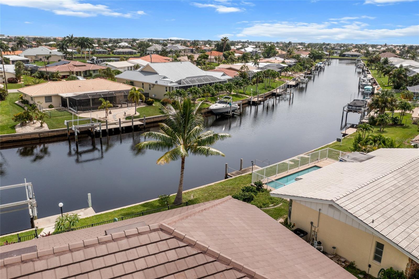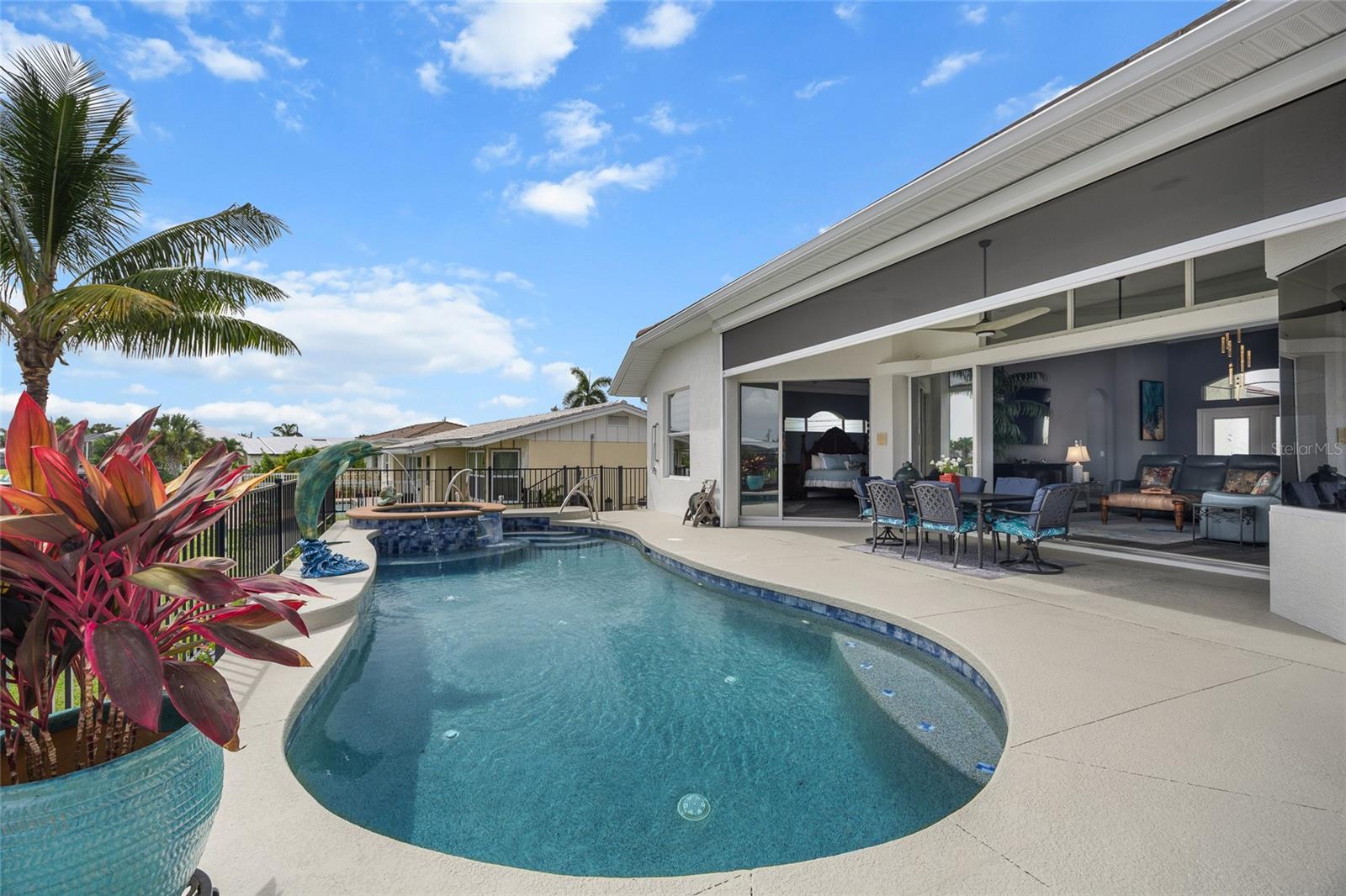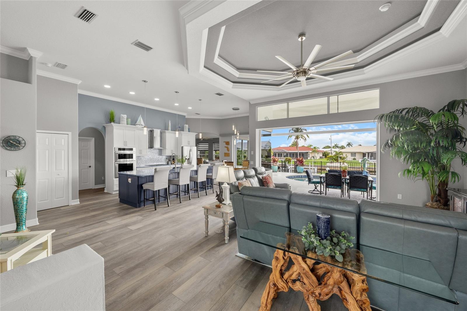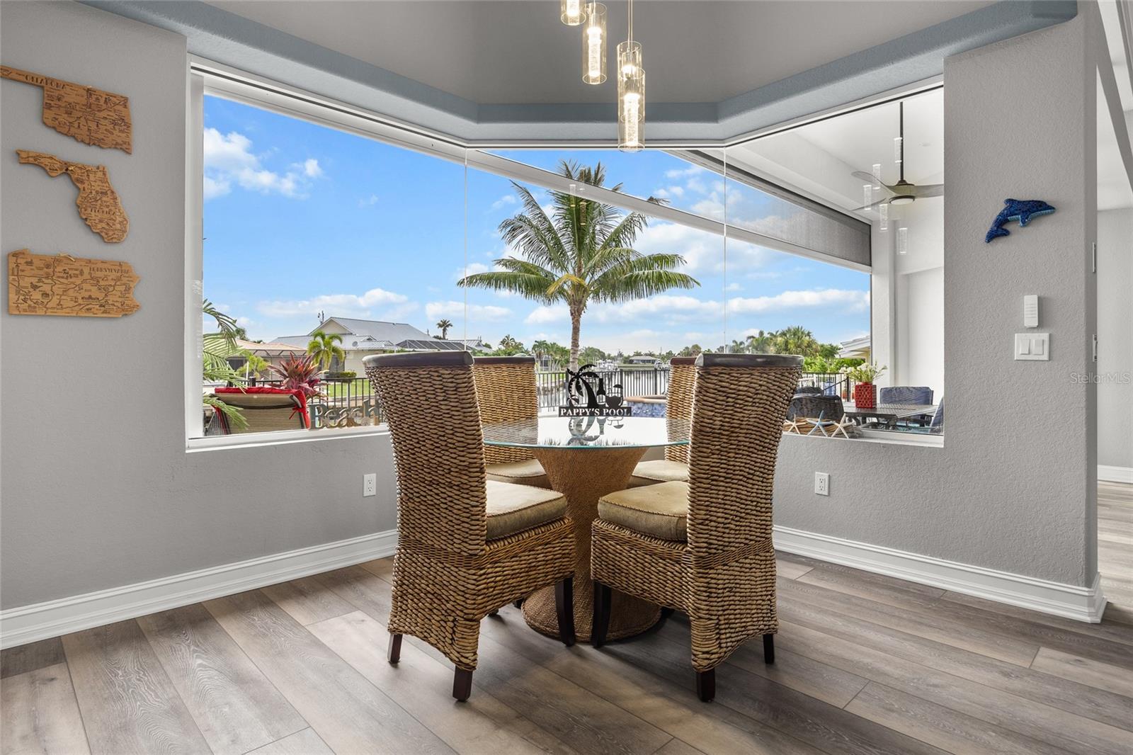 LOOKING FOR A NEW HOME, THIS COMPLETELY REMODELED HOME IS IT! This gorgeous 3-bedroom, 2-bath, 2-car garage waterfront pool home offers a modern lifestyle with stunning features and 10-minute powerboat access to Charlotte Harbor leading to the Gulf of Mexico! This home is designed for those who appreciate luxury, leisure and awesome views of the pool and water from almost every room! As you step inside, you'll be greeted by an open floor plan with many custom features and updates including volume and tray ceilings, crown molding, transom windows, arched entryways, built-in accents, custom window treatments and new NuCORE LVP flooring in the main areas, creating an inviting and spacious atmosphere. The living room boasts a lighted double tray ceiling and a 12’ pocket slider that opens to the pool and water views, allowing for seamless indoor-outdoor living. The remodeled kitchen is a chef's dream, featuring an 11’ x 5’ quartzite island, new contemporary interior lighting, and new kitchen appliances including a 36” KitchenAid range. The breakfast nook with an aquarium window offers a delightful spot to enjoy your morning coffee. There is also a spacious bonus room that can serve as additional dining room or game room. The extra-large primary suite is a serene retreat with a pocket slider to the pool, his and hers walk-in closets, and a remodeled master bath highlighted by dual vanities, a walk-in shower with herringbone tile, and a freestanding tub. The split floor plan provides privacy for guests, with new carpet in the guest bedrooms. Step outside to the covered lanai and remodeled heated saltwater pool and spa with dolphin water feature and Intellibrite lighting, a great space for entertaining. For the boating enthusiast, this property offers 73' of waterfrontage, concrete dock with water and electric and a 10,000 lb. boat lift. This home is not just about luxury indoors; it also offers a 30’ motorized retractable lanai screen, a new decorative iron fence surrounding the patio/pool, and mature tropical landscaping, creating a private oasis for relaxation and entertainment. Additional notable features include new tile roof (2023), Manabloc plumbing system, new epoxy floor in garage and new total coverage interior and exterior paint. Located in a popular golf and boating community, this home is just minutes from the Yacht Club, Fishermen's Village, and the historic downtown area of Punta Gorda. Enjoy access to arts, community events, entertainment, world-class fishing, boating, fine dining, and beautiful parks, as well as easy access to the SWFL gulf beaches. Don't miss the opportunity to make this exceptional home your new Florida retreat! Schedule your private showing today!