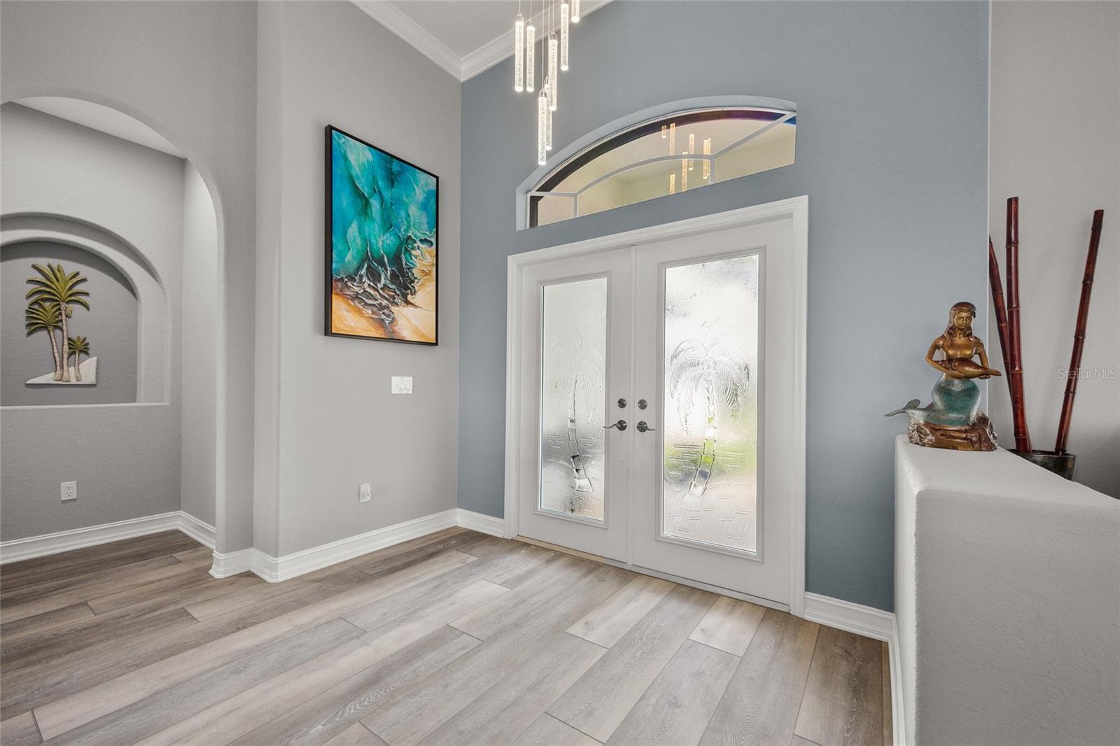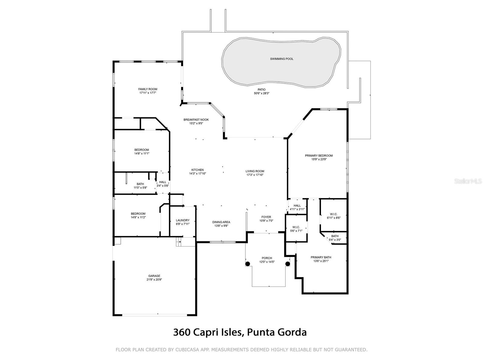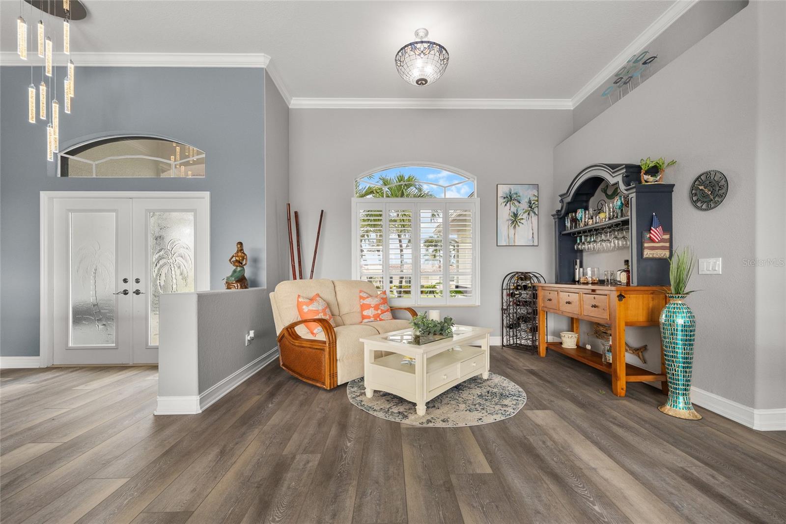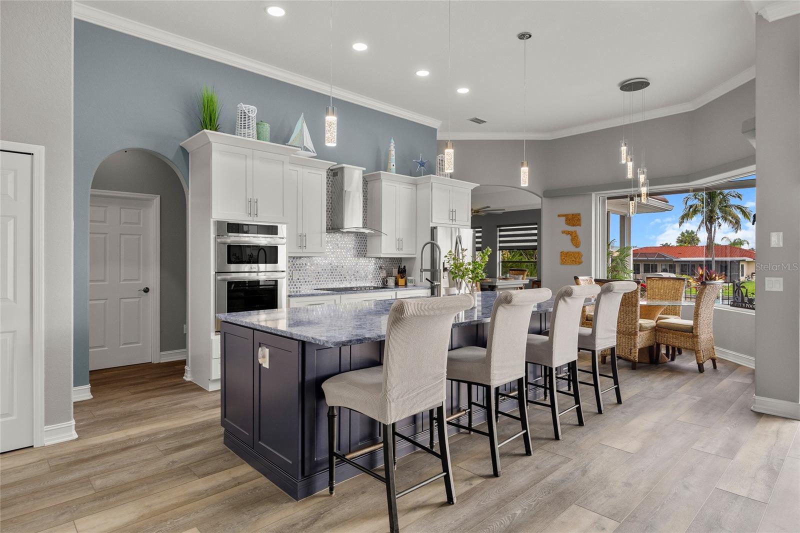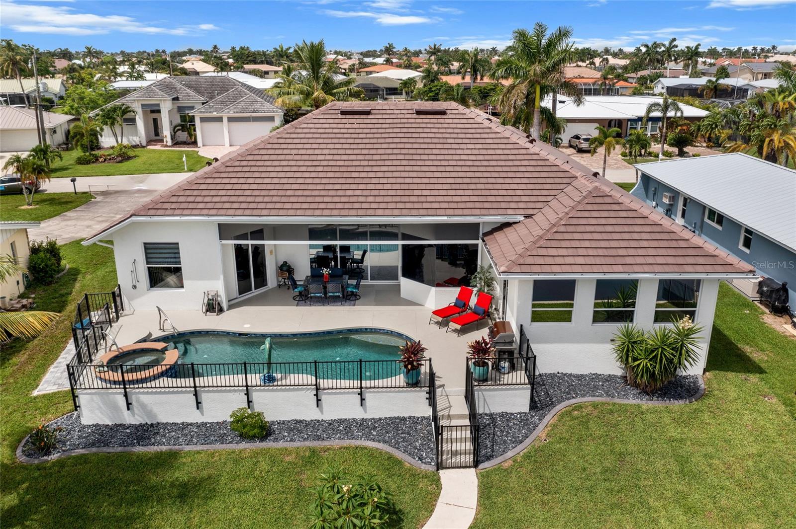 LOOKING FOR A NEW HOME, THIS COMPLETELY REMODELED HOME IS IT! This gorgeous 3-bedroom, 2-bath, 2-car garage waterfront pool home offers a modern lifestyle with stunning features and 10-minute powerboat access to Charlotte Harbor leading to the Gulf of Mexico! This home is designed for those who appreciate luxury, leisure and awesome views of the pool and water from almost every room! As you step inside, you'll be greeted by an open floor plan with many custom features and updates including volume and tray ceilings, crown molding, transom windows, arched entryways, built-in accents, custom window treatments and new NuCORE LVP flooring in the main areas, creating an inviting and spacious atmosphere. The living room boasts a lighted double tray ceiling and a 12’ pocket slider that opens to the pool and water views, allowing for seamless indoor-outdoor living. The remodeled kitchen is a chef's dream, featuring an 11’ x 5’ quartzite island, new contemporary interior lighting, and new kitchen appliances including a 36” KitchenAid range. The breakfast nook with an aquarium window offers a delightful spot to enjoy your morning coffee. There is also a spacious bonus room that can serve as additional dining room or game room. The extra-large primary suite is a serene retreat with a pocket slider to the pool, his and hers walk-in closets, and a remodeled master bath highlighted by dual vanities, a walk-in shower with herringbone tile, and a freestanding tub. The split floor plan provides privacy for guests, with new carpet in the guest bedrooms. Step outside to the covered lanai and remodeled heated saltwater pool and spa with dolphin water feature and Intellibrite lighting, a great space for entertaining. For the boating enthusiast, this property offers 73' of waterfrontage, concrete dock with water and electric and a 10,000 lb. boat lift. This home is not just about luxury indoors; it also offers a 30’ motorized retractable lanai screen, a new decorative iron fence surrounding the patio/pool, and mature tropical landscaping, creating a private oasis for relaxation and entertainment. Additional notable features include new tile roof (2023), Manabloc plumbing system, new epoxy floor in garage and new total coverage interior and exterior paint. Located in a popular golf and boating community, this home is just minutes from the Yacht Club, Fishermen's Village, and the historic downtown area of Punta Gorda. Enjoy access to arts, community events, entertainment, world-class fishing, boating, fine dining, and beautiful parks, as well as easy access to the SWFL gulf beaches. Don't miss the opportunity to make this exceptional home your new Florida retreat! Schedule your private showing today!