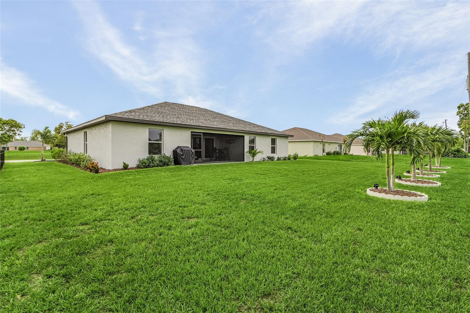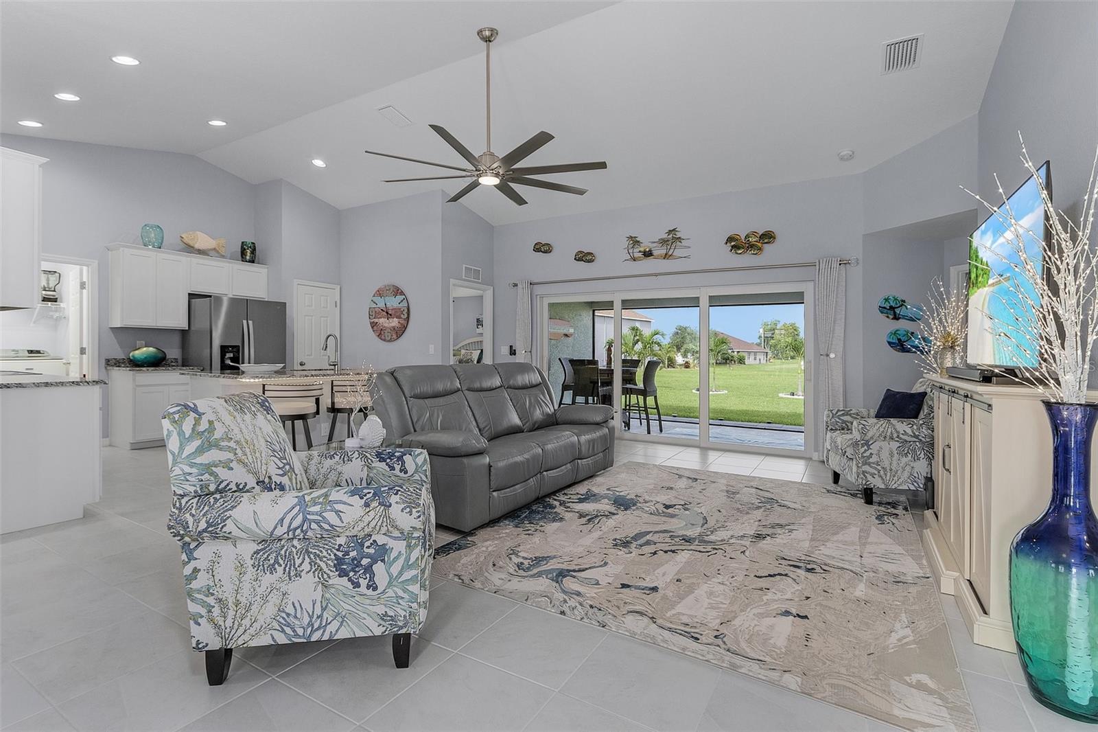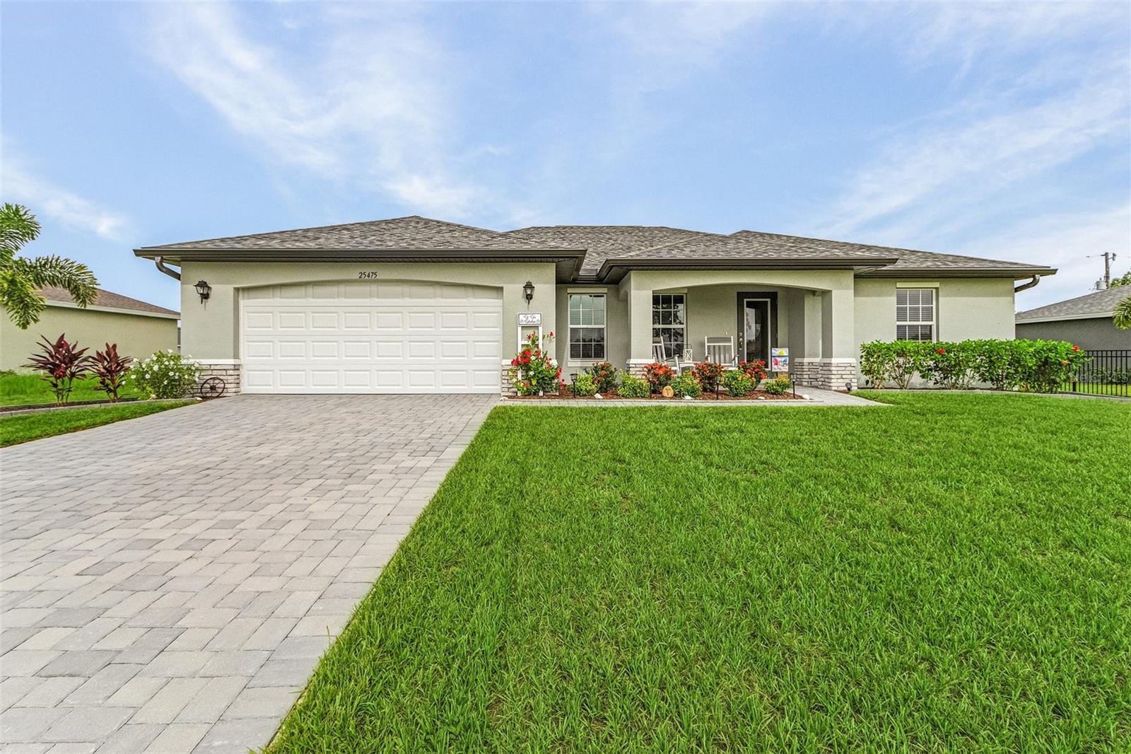 IMMACULATE 4 BED 2 BATH HOME IN THE BEAUTIFUL AND POPULAR NEIGHBORHOOD OF BURNT STORE VILLAGE IS MOVE IN READY!! This very desirable floor plan, The"St. Augustine" is the only one currently available in Burnt Store Village. Open floor plan with cathedral ceilings, kitchen island, granite countertops, hurricane windows and tile floors through the whole house. The kitchen features accent lighting above and below cabinets, Whirlpool stainless steel appliances and laundry room has Maytag washer and dryer, all only a year old. The spacious lanai (over 300sq.ft.) has been upgraded to a no-see-ums picture window screen for enjoyment any time of day. The garage has epoxy floors and leads out to a 50ft. paver driveway. Outside you will find the front of the home has stone accents and beautiful landscaping, around back features 9 newly planted palm trees. Come see this pristine home and start living the Florida lifestyle!!!