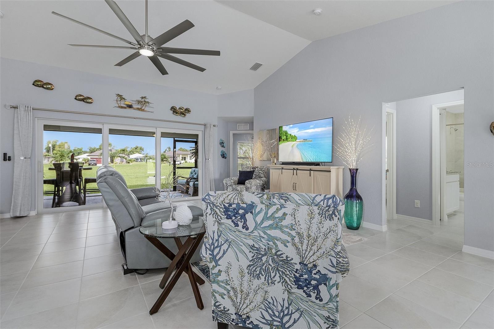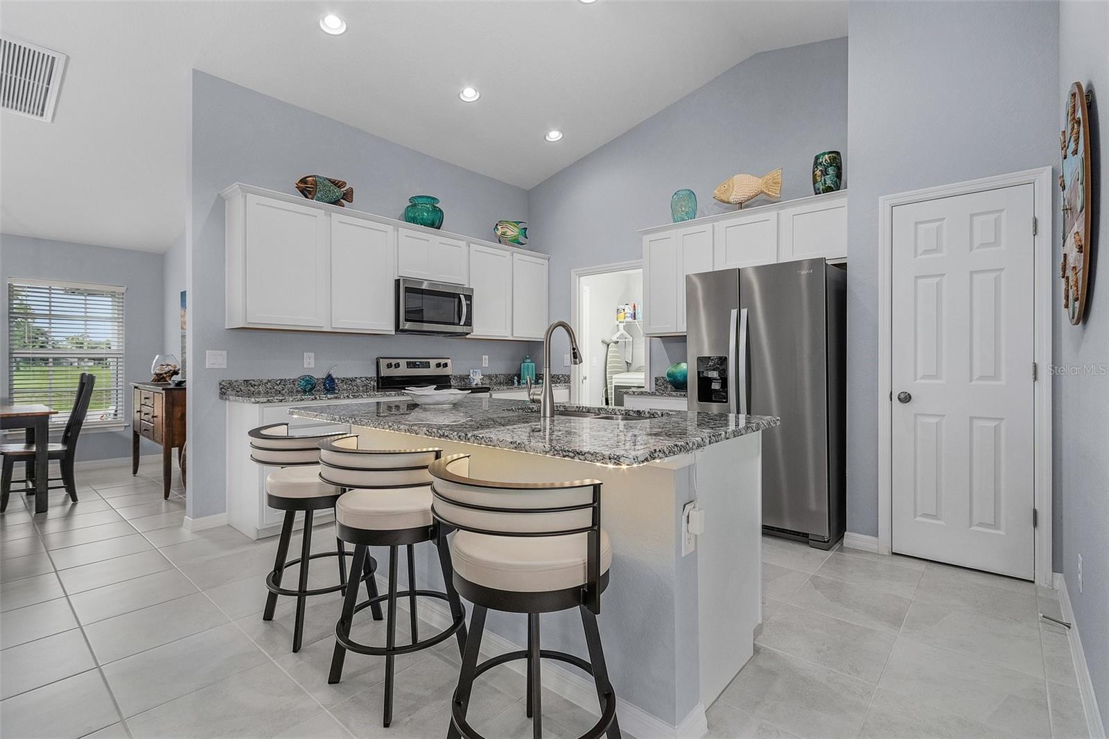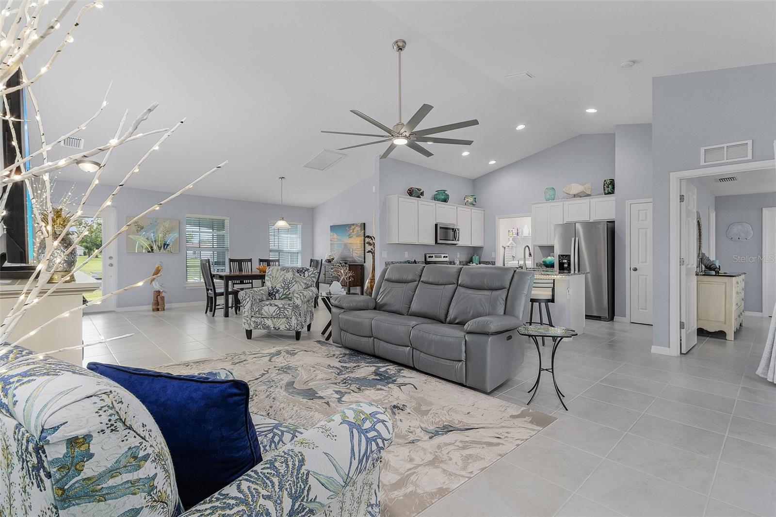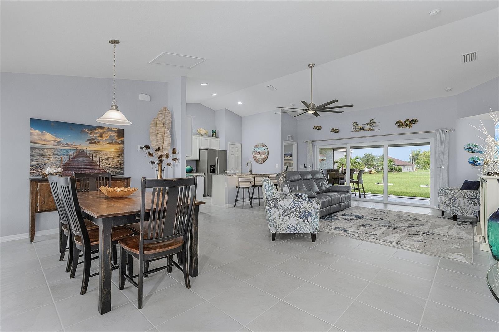 IMMACULATE 4 BED 2 BATH HOME IN THE BEAUTIFUL AND POPULAR NEIGHBORHOOD OF BURNT STORE VILLAGE IS MOVE IN READY!! This very desirable floor plan, The"St. Augustine" is the only one currently available in Burnt Store Village. Open floor plan with cathedral ceilings, kitchen island, granite countertops, hurricane windows and tile floors through the whole house. The kitchen features accent lighting above and below cabinets, Whirlpool stainless steel appliances and laundry room has Maytag washer and dryer, all only a year old. The spacious lanai (over 300sq.ft.) has been upgraded to a no-see-ums picture window screen for enjoyment any time of day. The garage has epoxy floors and leads out to a 50ft. paver driveway. Outside you will find the front of the home has stone accents and beautiful landscaping, around back features 9 newly planted palm trees. Come see this pristine home and start living the Florida lifestyle!!!