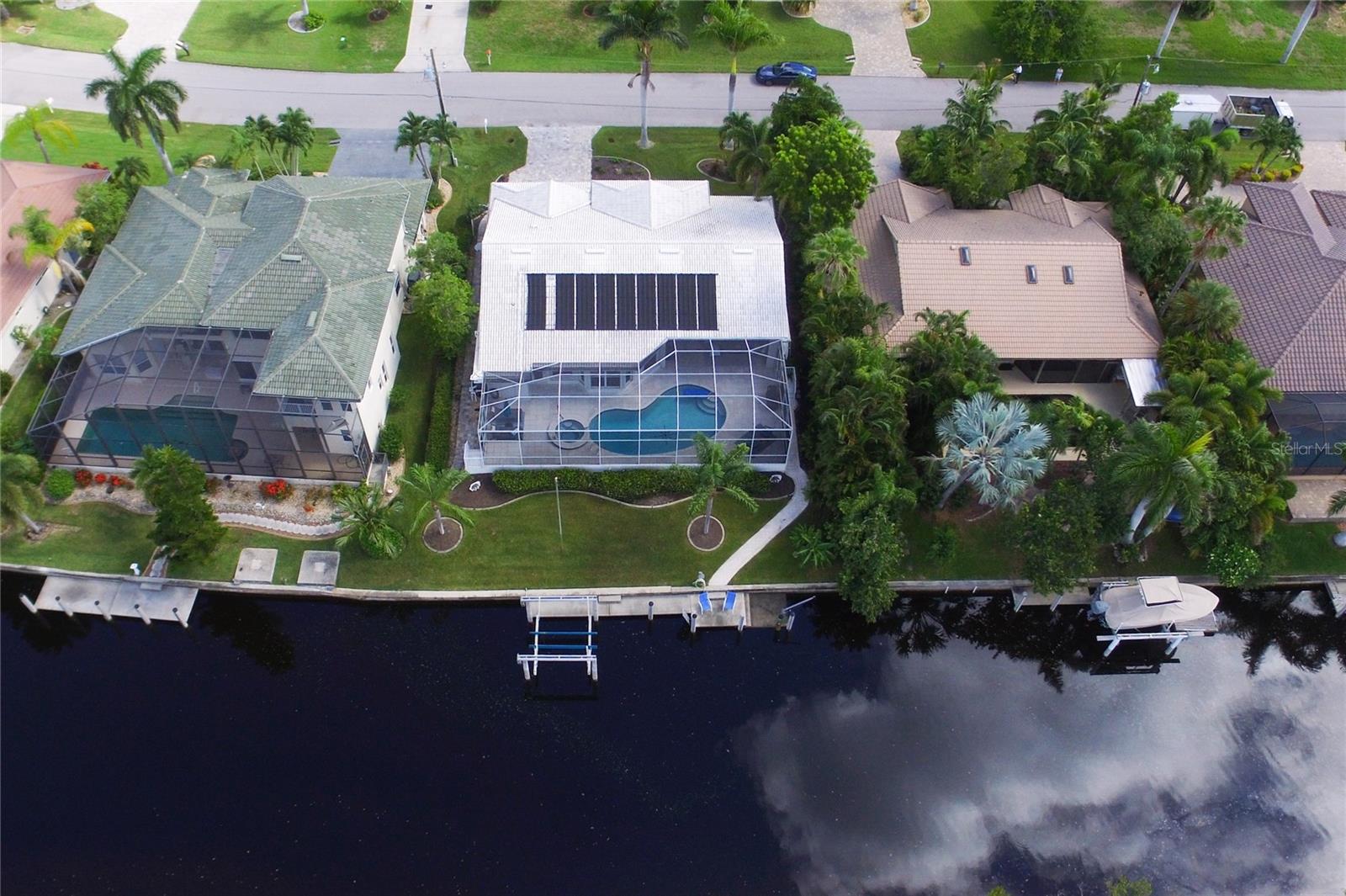 Welcome to popular deed-restricted waterfront and golf community of Burnt Store Isles in beautiful Punta Gorda, FL, the best boating in Florida. The City of Punta Gorda maintains the seawalls and canals, which is a huge benefit to the local homeowners. This impressive 3/2 home is located on saltwater canal with access to Charlotte Harbor and the Gulf. This property is a true epitome of perfect Florida getaway and boasts large tiled lanai with outdoor shower and 24x58 screened cage with a south facing sparkling blue pool and spa with unmatched views of the canal, the mangroves and gorgeous Florida sunsets. The floor plan is featuring a bright neutral color kitchen with Corian countertops, 2 sinks, a breakfast bar, vaulted ceilings throughout the whole house, great size living room with built-in shelving and light beige carpet with amazing views of the lanai/pool area, expansive dining room area off the kitchen , large main bedroom with built in vanity, shelving and bed, plantation shutters, again with gorgeous views. The main bathroom is a masterpiece itself with dual sinks, sparkling countertops, a nice size tub, walk in shower, a large walk in closet with built in drawers. The second bedroom is of good size with plantation shutters as well. The third bedroom is currently used as an office, but could be easily converted back. Whole house propane fueled emergency 22KW Generator and hurricane shutters are a big plus as well. The long 47' concrete dock and the 10,000 lb lift are at your leisurely disposal. The recent updates include all new improved plumbing in 2021, new driveway was installed in 2023, solar for the pool in 2021, the landscaping has been upgraded to low maintenance in 2024. All new updated electrical for the boat lift: new wire from breaker box to lift, new conduit, new outlets and switches, new cypress bunks on the lift as well. This gorgeous home has been continually maintained and loved, but is ready for it's new owners. Bring your boat, your swimming suit and enjoy sweet SW Florida living. Privacy in the back, no neighbors across the canal, just beautiful green lush mangroves. Close to historic downtown Punta Gorda, Fishermen Village, new popular Sunseeker resort, Punta Gorda airport, convenient commute to Fort Myers, Cape Coral, Port Charlotte, etc areas. The Seller is offering HOME WARRANTY for a Buyers peace of mind that covers HVAC, plumbing, electrical, appliances, water heater, etc. P.S. NO FLOODING OR ANY DAMAGE AFTER MILTON/HELENE! Elevation certificate and flood disclosure are available for potential Buyers to review.