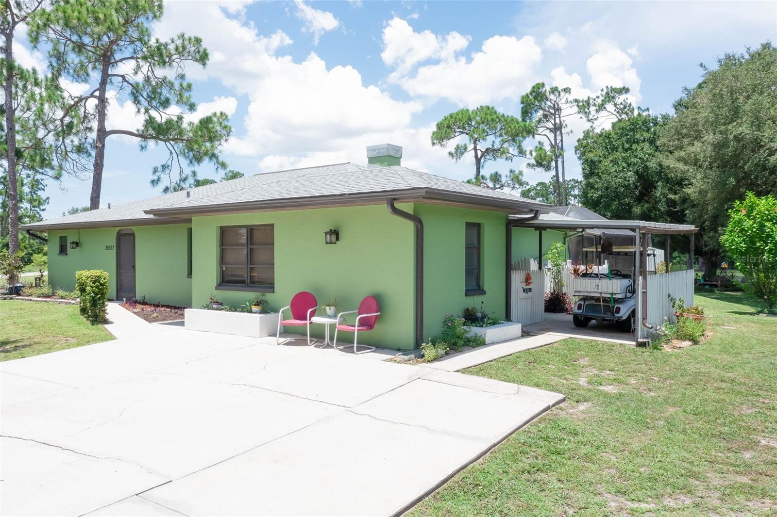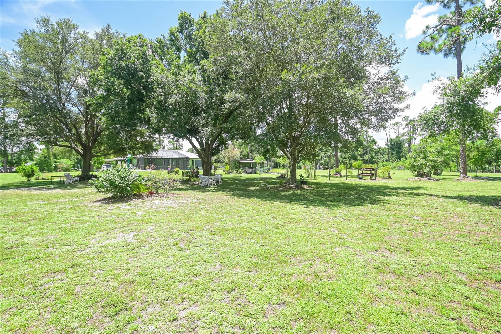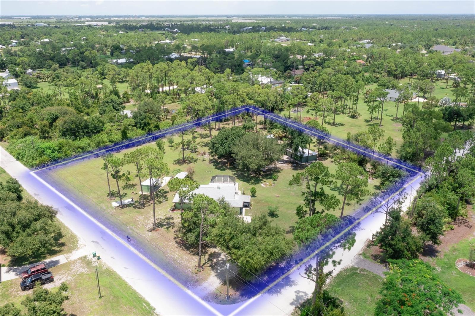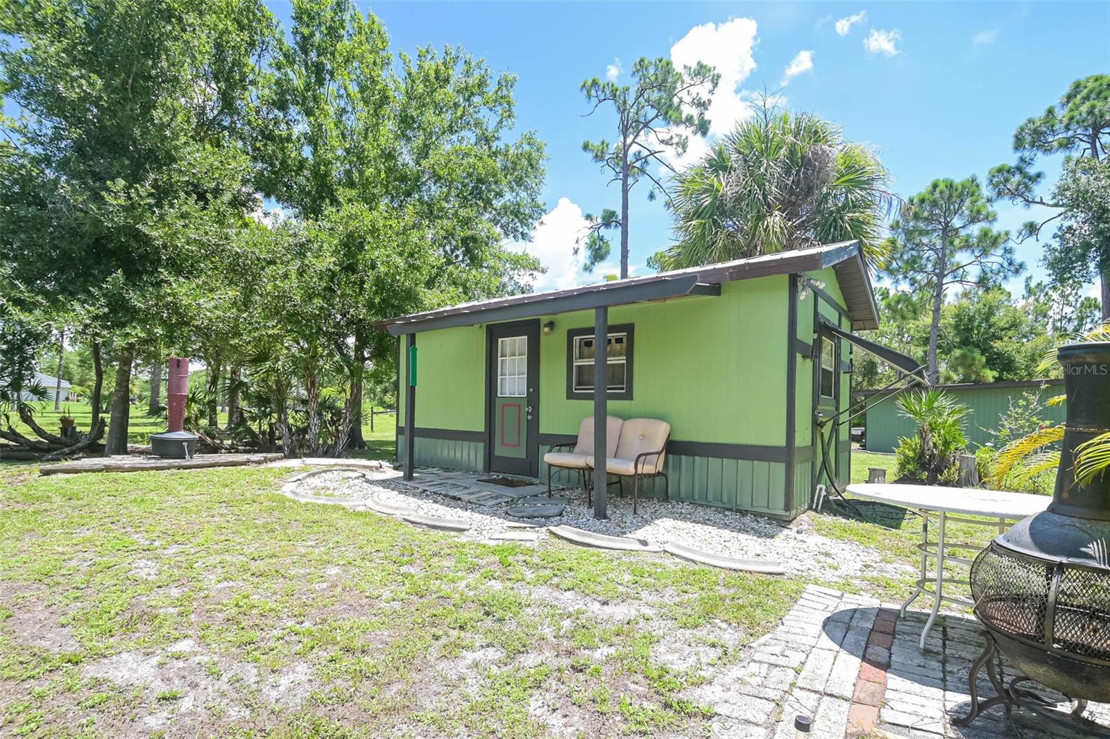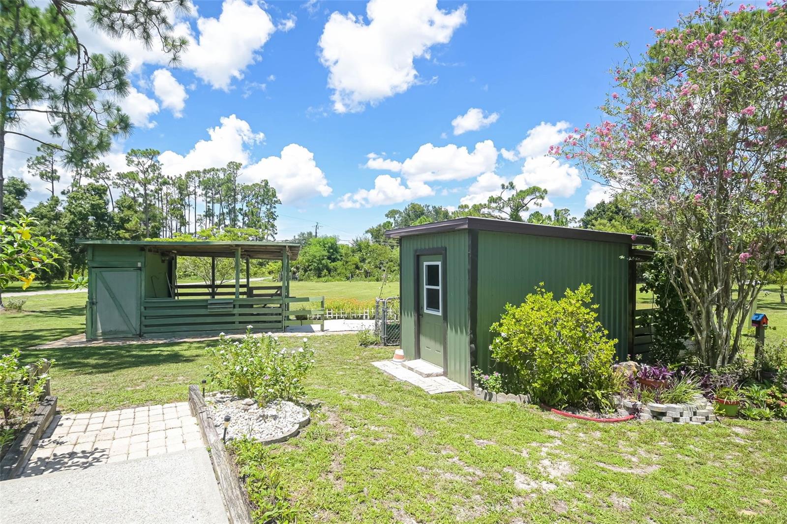 Escape to your country retreat in sunny Florida, where your dream home awaits on 2.5 acres (about the area of a Manhattan city block) of agriculture land that allows peace and quiet for relaxing days and evenings, the ability to become a self-sustaining farm, or even a petting zoo. Enjoy preparing pool side BBQ, low-key dinners, family brunch or happy-hour charcuterie masterpieces in this updated kitchen with granite counter tops, solid wood cabinetry, and plenty of prep space. A private-entrance bonus room allows privacy for extended guests, adult family members, or a business –in-home office. Enjoy cozy evenings around the fireplace, hot summer pool parties, or working on the farm – this is country living at its finest, perfectly blending tranquility with modern conveniences and limitless recreational opportunities. Large, detached outbuilding with a workshop - perfect for a garage, tractors, boats, and other outdoor toys! With an upgraded roof and new AC – move in with worry-free confidence. Property includes studio apartment that offers flexibility as an in-law suite, income-generating rental, or arts and crafts studio. Amenities and life-conveniences are easy access on paved roads in a dirt road community just 5 minutes from Punta Gorda Airport and the I75 interchange. Located within an easy drive are grocery stores (5-7 miles) and the quaint downtown of Punta Gorda (15 min), bustling with shopping, dining, and entertainment options. The newly developed Allegiant Sunseeker Resort is a short drive away (18 min), while downtown Fort Myers beckons in just 25 minutes. Embrace the outdoors with Gulf beaches and State Parks a mere 45-60 minutes away. Relish the freedom to keep livestock, horses, or indulge in ATV adventures right at home.