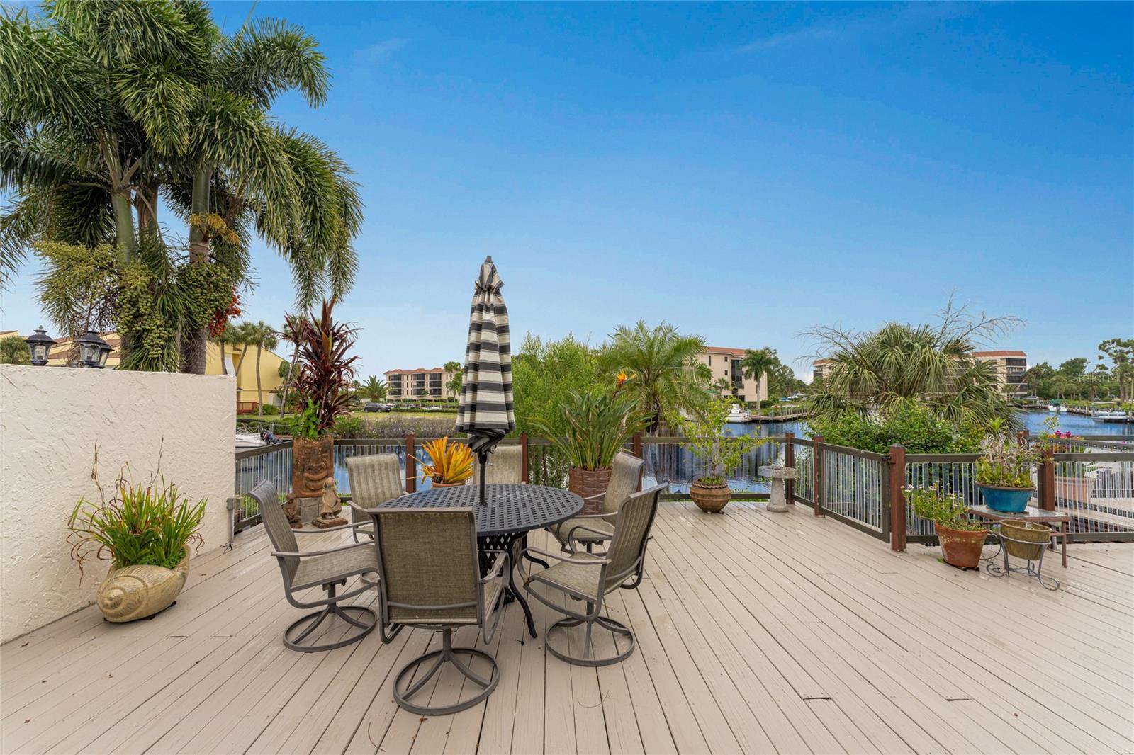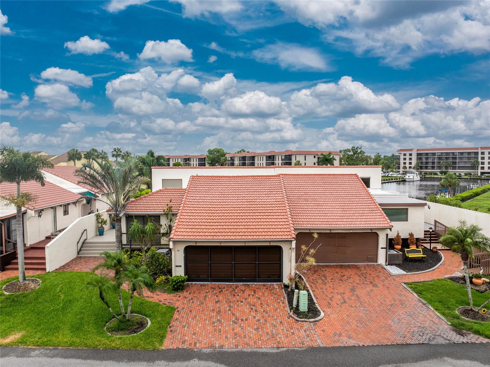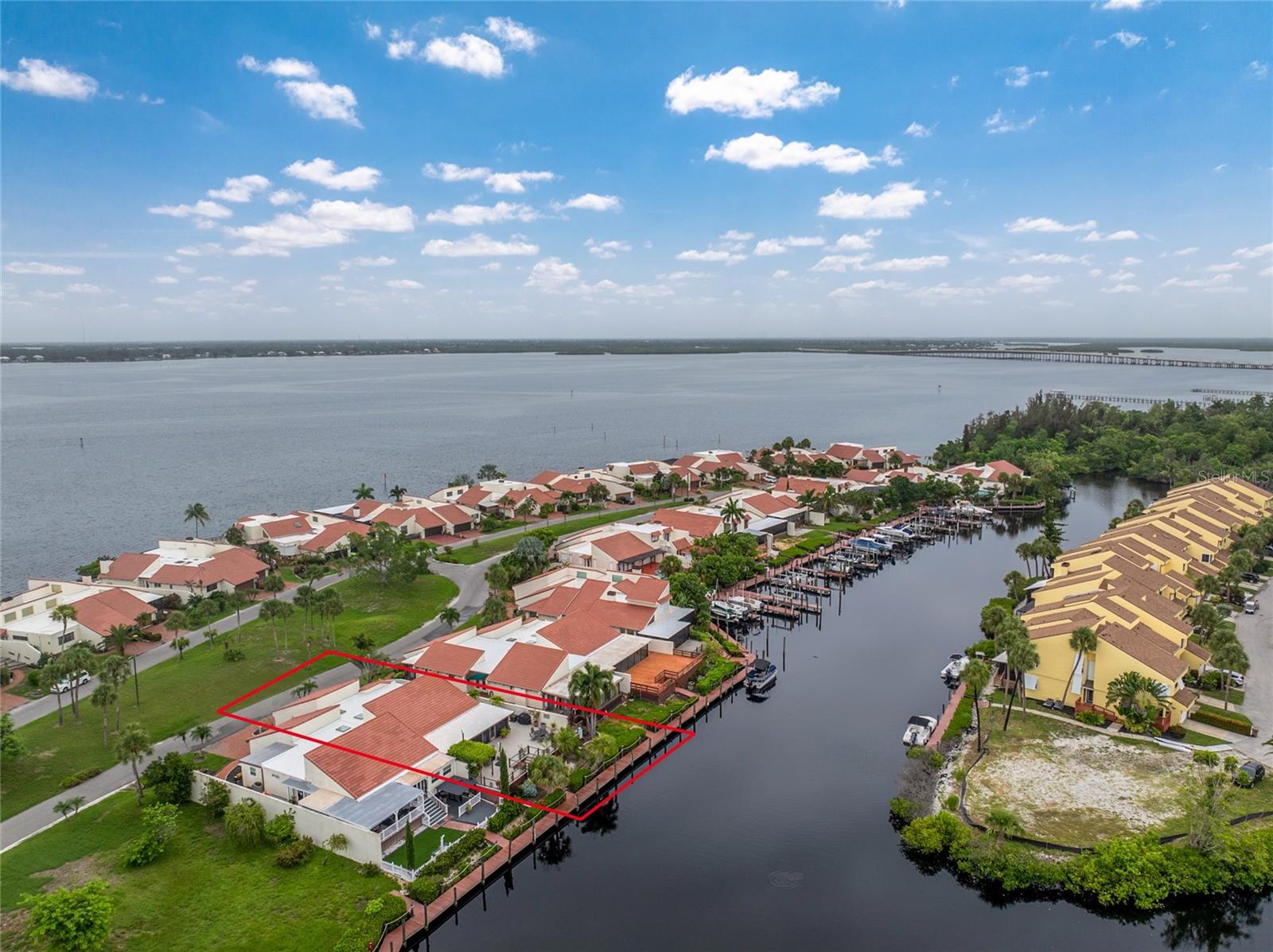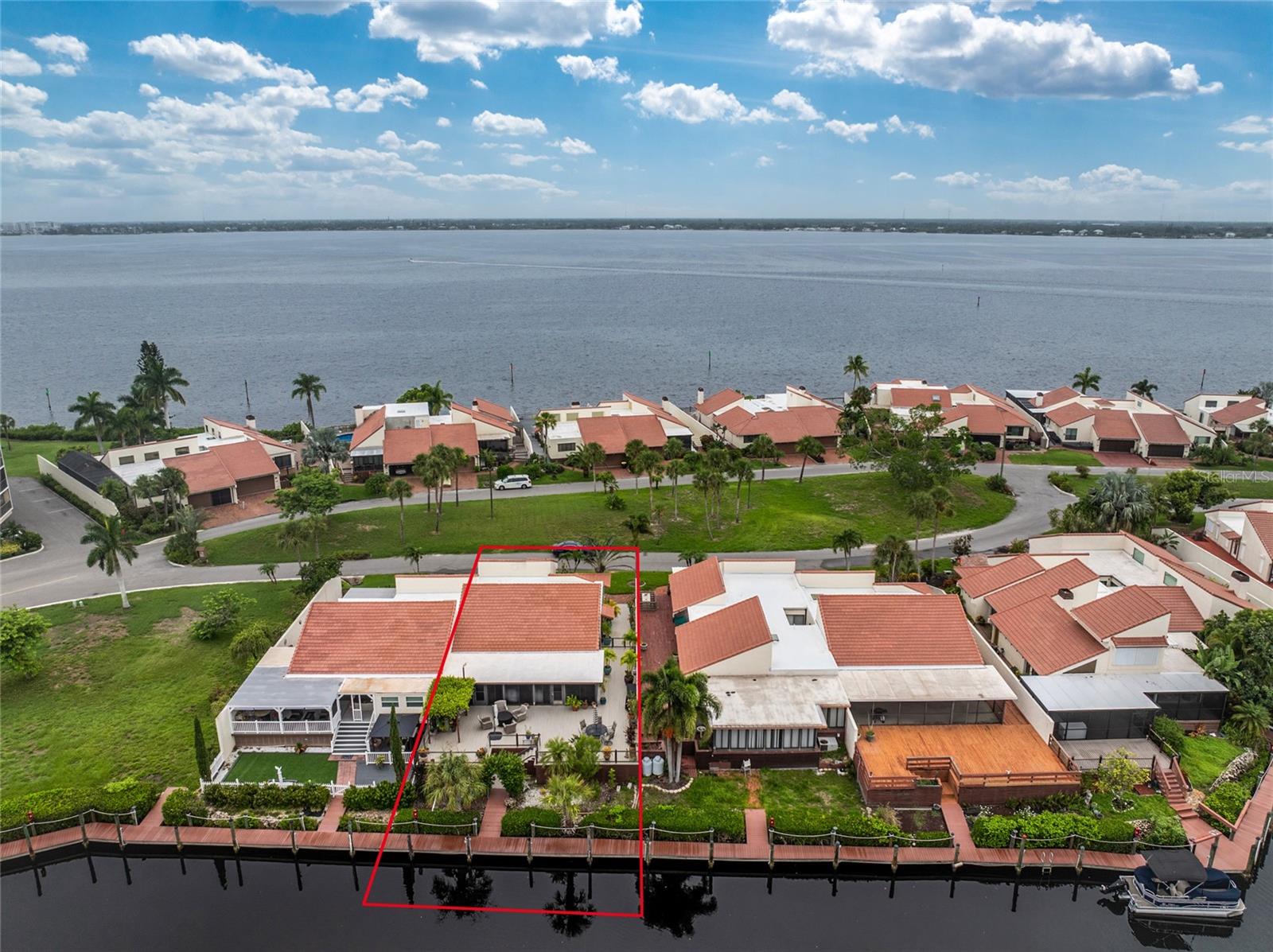 Calling all boaters…..don’t miss this opportunity to own this waterfront villa in the highly desirable community of Emerald Pointe. This 2 bedroom, 2 bath home is being sold FURNISHED. As you enter you will be immediately impressed with the living room/dining area with its sparkling floors, vaulted ceilings, and large windows giving a bright and airy feel of a much larger home. To add to the welcoming feeling, this room boasts of an updated fireplace and wet bar/wine cooler…the perfect gathering spot for friends and family. Adjacent to the dining area is a well appointed kitchen with stainless steel appliances, granite countertops, and solid cherry cabinets. The spacious primary suite features vaulted ceilings, expansive closet space, and a separate makeup vanity. The guest suite is equally well appointed. Here you will also find a separate sitting/TV area…a feature your guests will truly appreciate. All specifications and dimensions are believed to be accurate and should be verified to the buyer or buyer's agent satisfaction. Finally, the huge (15x37) enclosed lanai has updated tile floor and recently installed mini split AC making it the ideal year round party room. If outside is where you want to be…this is the place for you…the massive deck offers tons of space. This deck also offers a drip irrigation system for easy maintenance of the plants. And last but not least…just steps from the deck is you assigned dock with WATER and 30 AMP MARINE HOOK UP. Other updates include: NEW ROOF, 3 NEW SKYLIGHTS,CENTRAL VACUUM, and LED Lighting. Emerald Point sits directly on the shore of Charlotte Harbor and is only 5 minutes from downtown Punta Gorda where you can enjoy the many fine restaurants, shops, and the weekly farmers markets. Punta Gorda is alive with concerts, arts & crafts shows, cars shows and much more…something for every taste and interest. And if staying closer to home is your desire, Emerald Pointe offers so much within the community…3 pools, 5 tennis courts, pickleball courts, bocce courts, putting green, fitness center, and a seasonal restaurant. And don’t forget, included in you HOA fees is a boat dock or boat/trailer storage on a first come first serve basis. Call for your private showing today…homes with features like this don’t last long. Please see attachments for excluded items not conveying with the furniture. All specifications and dimensions are deemed to be accurate and should be verified to the buyer or buyer's agent satisfaction.