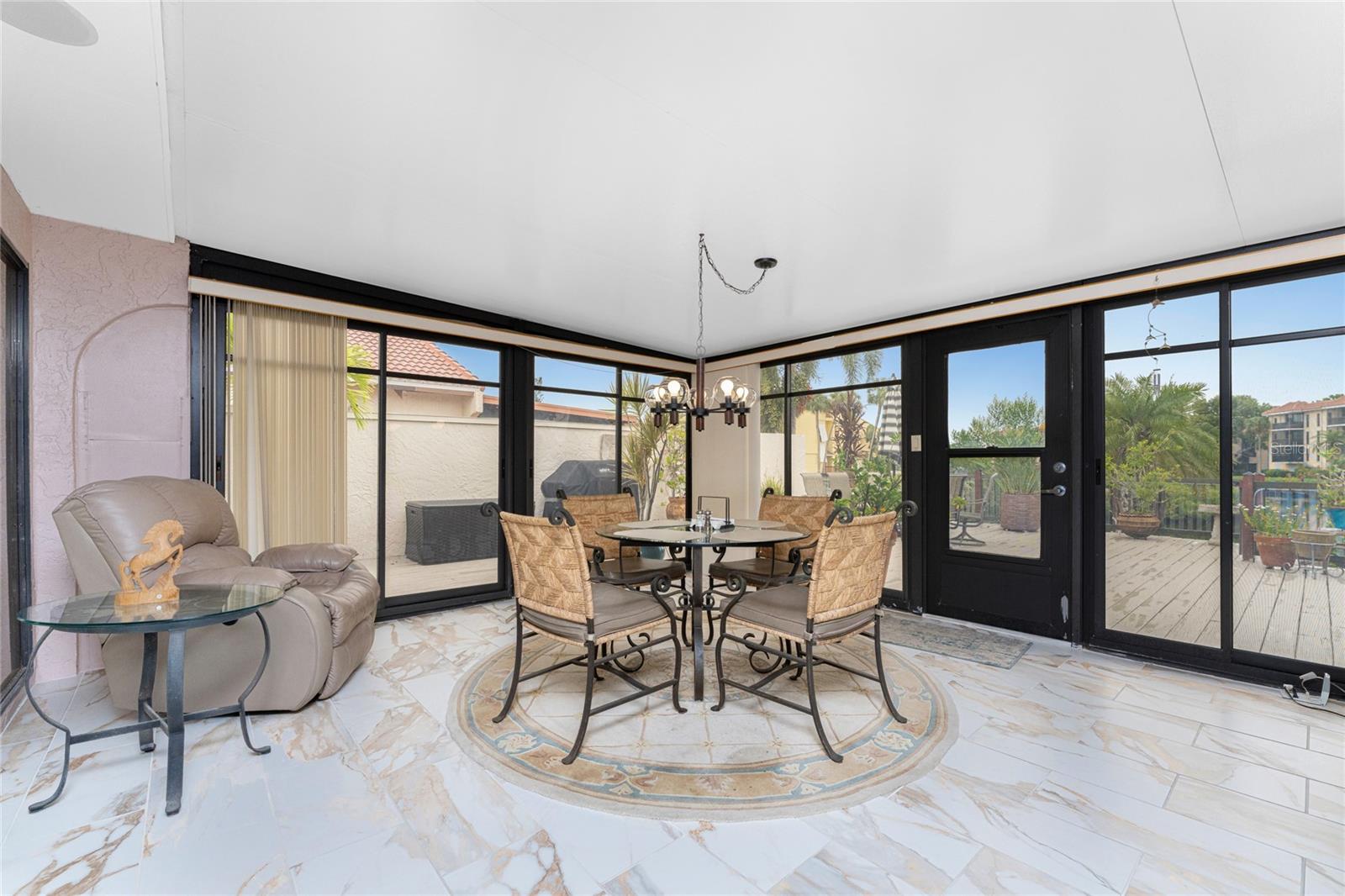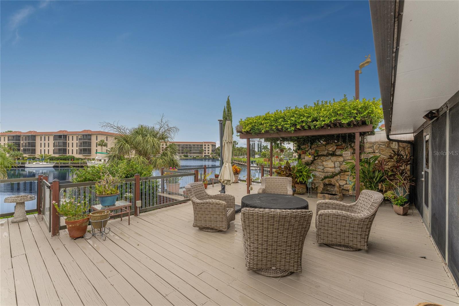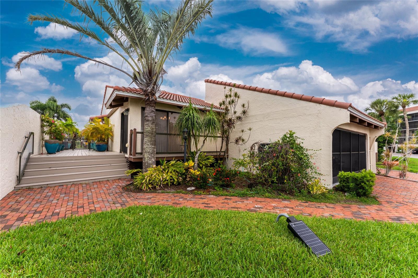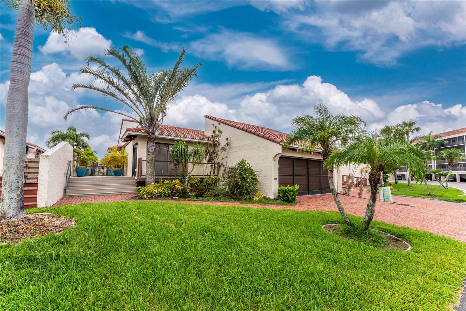 Calling all boaters…..don’t miss this opportunity to own this waterfront villa in the highly desirable community of Emerald Pointe. This 2 bedroom, 2 bath home is being sold FURNISHED. As you enter you will be immediately impressed with the living room/dining area with its sparkling floors, vaulted ceilings, and large windows giving a bright and airy feel of a much larger home. To add to the welcoming feeling, this room boasts of an updated fireplace and wet bar/wine cooler…the perfect gathering spot for friends and family. Adjacent to the dining area is a well appointed kitchen with stainless steel appliances, granite countertops, and solid cherry cabinets. The spacious primary suite features vaulted ceilings, expansive closet space, and a separate makeup vanity. The guest suite is equally well appointed. Here you will also find a separate sitting/TV area…a feature your guests will truly appreciate. All specifications and dimensions are believed to be accurate and should be verified to the buyer or buyer's agent satisfaction. Finally, the huge (15x37) enclosed lanai has updated tile floor and recently installed mini split AC making it the ideal year round party room. If outside is where you want to be…this is the place for you…the massive deck offers tons of space. This deck also offers a drip irrigation system for easy maintenance of the plants. And last but not least…just steps from the deck is you assigned dock with WATER and 30 AMP MARINE HOOK UP. Other updates include: NEW ROOF, 3 NEW SKYLIGHTS,CENTRAL VACUUM, and LED Lighting. Emerald Point sits directly on the shore of Charlotte Harbor and is only 5 minutes from downtown Punta Gorda where you can enjoy the many fine restaurants, shops, and the weekly farmers markets. Punta Gorda is alive with concerts, arts & crafts shows, cars shows and much more…something for every taste and interest. And if staying closer to home is your desire, Emerald Pointe offers so much within the community…3 pools, 5 tennis courts, pickleball courts, bocce courts, putting green, fitness center, and a seasonal restaurant. And don’t forget, included in you HOA fees is a boat dock or boat/trailer storage on a first come first serve basis. Call for your private showing today…homes with features like this don’t last long. Please see attachments for excluded items not conveying with the furniture. All specifications and dimensions are deemed to be accurate and should be verified to the buyer or buyer's agent satisfaction.
