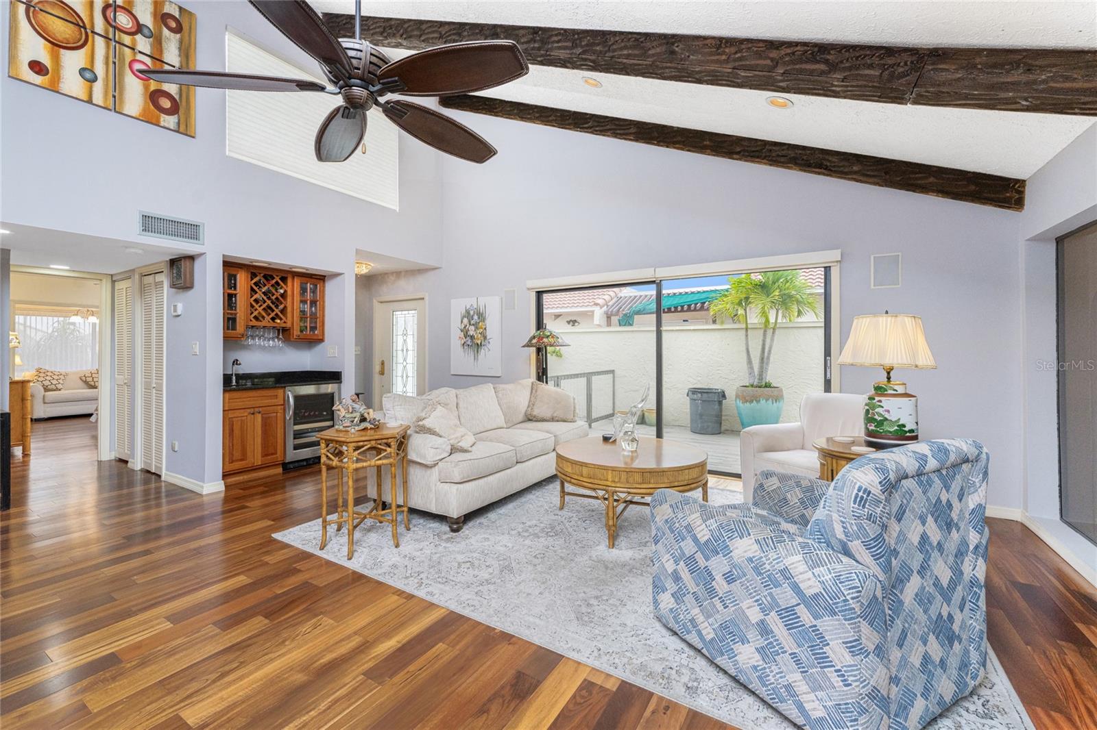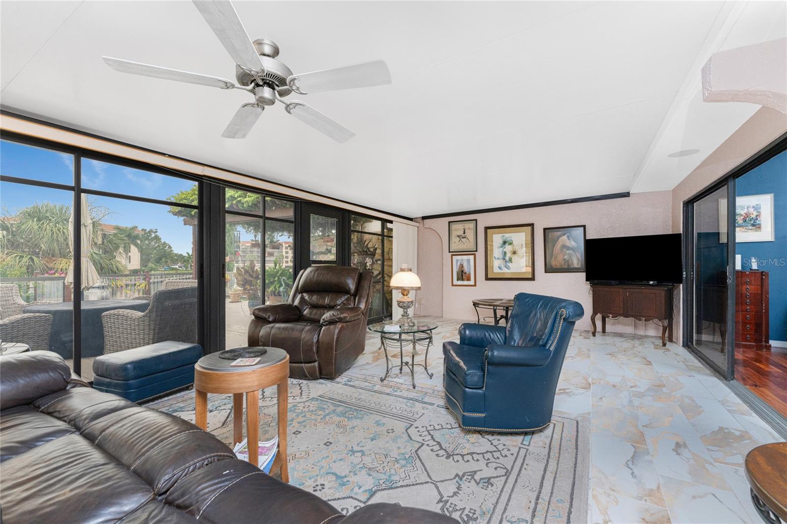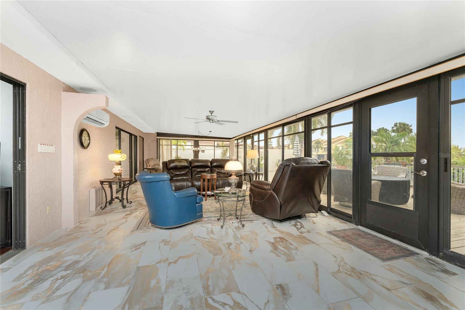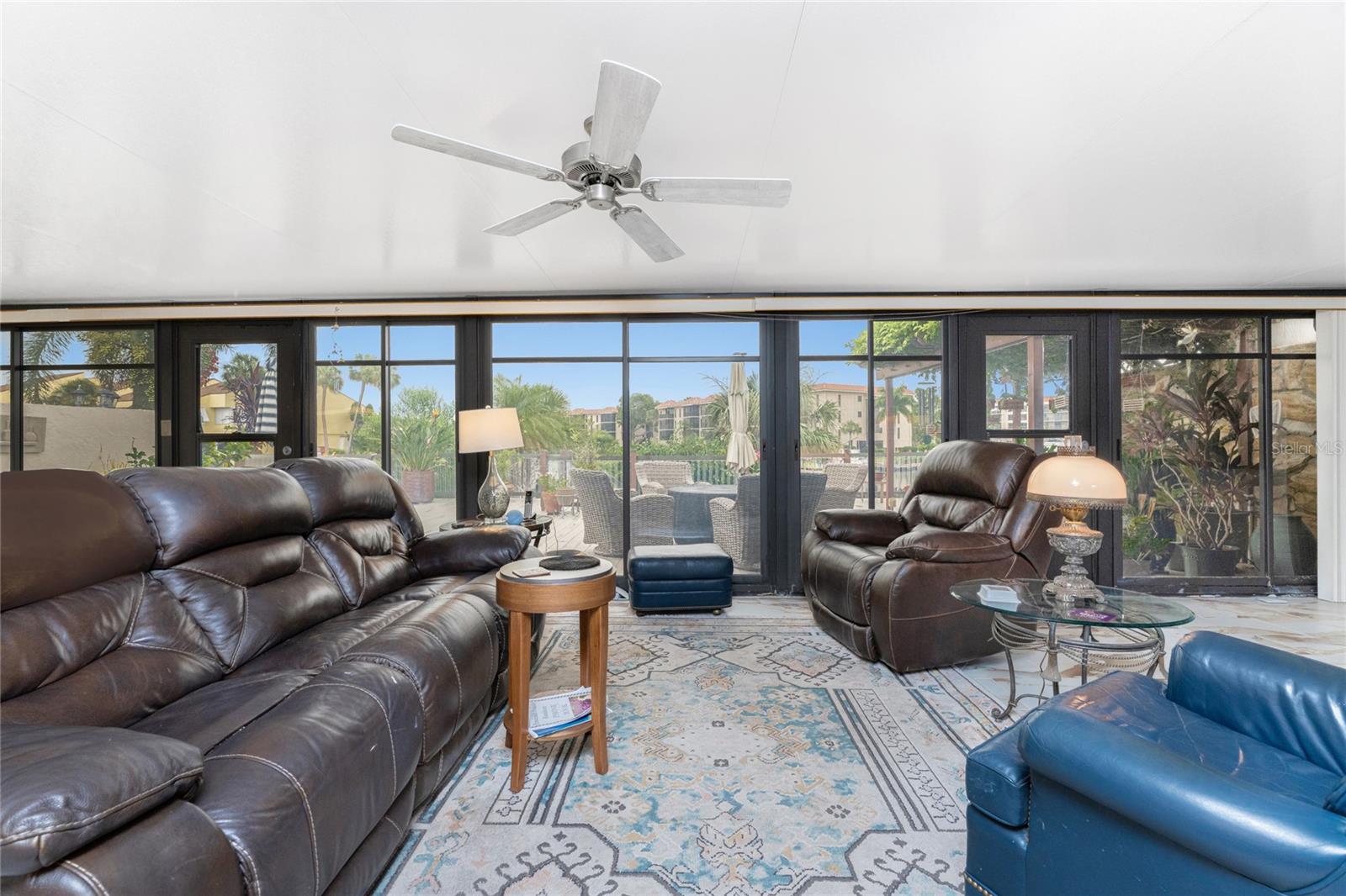Calling all boaters…..don’t miss this opportunity to own this waterfront villa in the highly desirable community of Emerald Pointe. This 2 bedroom, 2 bath home is being sold FURNISHED. As you enter you will be immediately impressed with the living room/dining area with its sparkling floors, vaulted ceilings, and large windows giving a bright and airy feel of a much larger home. To add to the welcoming feeling, this room boasts of an updated fireplace and wet bar/wine cooler…the perfect gathering spot for friends and family. Adjacent to the dining area is a well appointed kitchen with stainless steel appliances, granite countertops, and solid cherry cabinets. The spacious primary suite features vaulted ceilings, expansive closet space, and a separate makeup vanity. The guest suite is equally well appointed. Here you will also find a separate sitting/TV area…a feature your guests will truly appreciate. All specifications and dimensions are believed to be accurate and should be verified to the buyer or buyer's agent satisfaction. Finally, the huge (15x37) enclosed lanai has updated tile floor and recently installed mini split AC making it the ideal year round party room. If outside is where you want to be…this is the place for you…the massive deck offers tons of space. This deck also offers a drip irrigation system for easy maintenance of the plants. And last but not least…just steps from the deck is you assigned dock with WATER and 30 AMP MARINE HOOK UP. Other updates include: NEW ROOF, 3 NEW SKYLIGHTS,CENTRAL VACUUM, and LED Lighting. Emerald Point sits directly on the shore of Charlotte Harbor and is only 5 minutes from downtown Punta Gorda where you can enjoy the many fine restaurants, shops, and the weekly farmers markets. Punta Gorda is alive with concerts, arts & crafts shows, cars shows and much more…something for every taste and interest. And if staying closer to home is your desire, Emerald Pointe offers so much within the community…3 pools, 5 tennis courts, pickleball courts, bocce courts, putting green, fitness center, and a seasonal restaurant. And don’t forget, included in you HOA fees is a boat dock or boat/trailer storage on a first come first serve basis. Call for your private showing today…homes with features like this don’t last long. Please see attachments for excluded items not conveying with the furniture. All specifications and dimensions are deemed to be accurate and should be verified to the buyer or buyer's agent satisfaction.