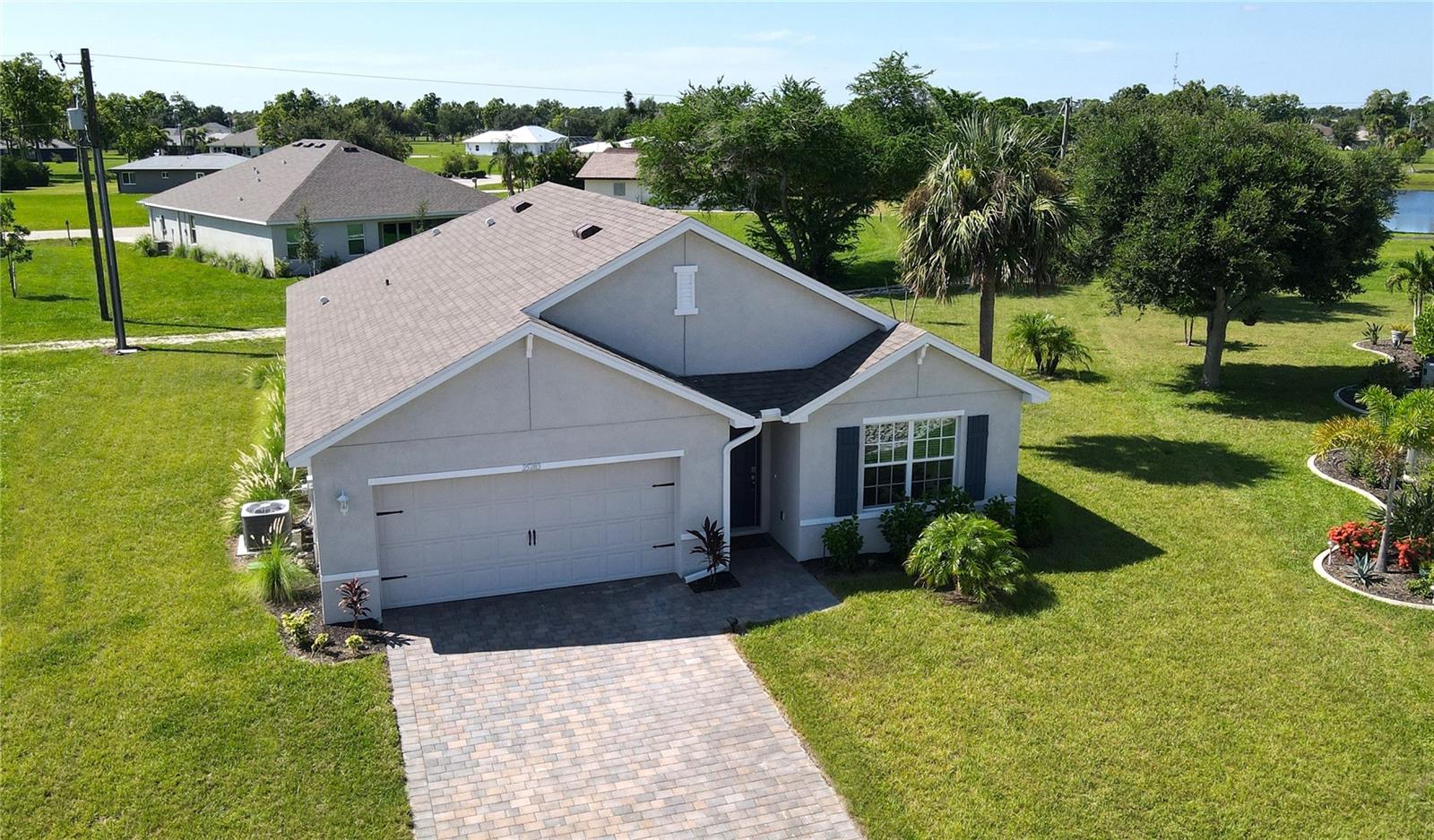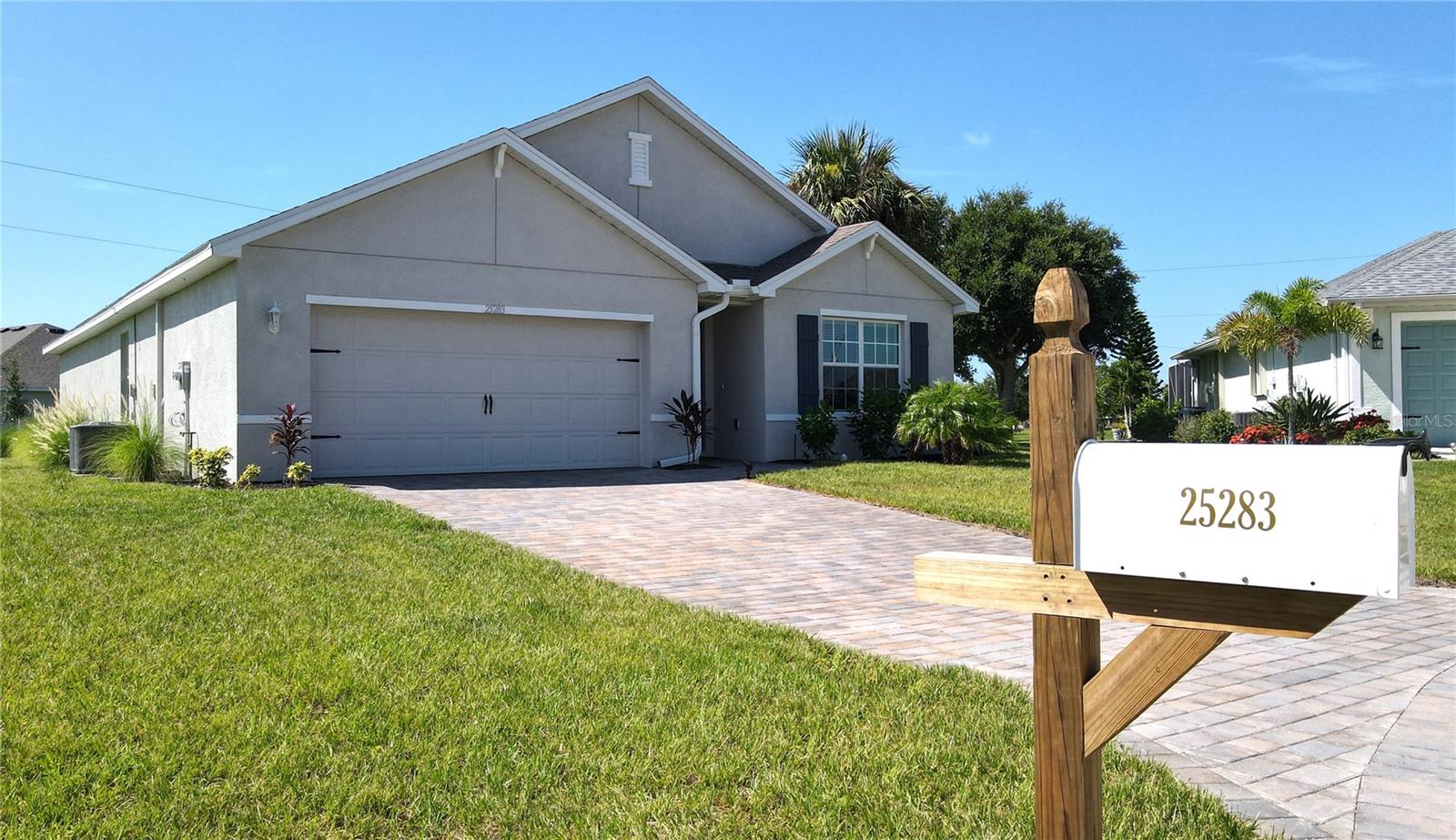 **PLEASE ENJOY THE 3D INTERACTIVE VIRTUAL TOUR ASSOCIATED WITH THIS LISTING – Located in the South Punta Gorda community of Burnt Store Village is where you'll find this NEW 2024 built home constructed by DR Horton, the nation's largest home builder. With an ultra-functional great room floor plan, this popular Cali model features four bedrooms, two full baths and a two-car attached garage. You'll find ceramic plank-tile flooring in all but the carpeted bedrooms, a paver-stone driveway and lanai with a serene greenbelt view providing quick access to the community lake, park & trails. The open kitchen is comprised of ample wood cabinetry and solid surface counters, a closet pantry, breakfast bar and stainless appliances. The primary ensuite bedroom, which is separate from the three guest rooms for added privacy, has a bath with dual sinks with under cabinet storage, a glass walk in shower, a large walk-in closet and a water closet. Other features include impact windows and a two-car attached garage with an attractive and durable epoxy surface. With a fresh neutral décor, you find that this spotless residence is absolutely move-in ready and is being offered turn-key furnished outside of an executed contract! Do yourself a favor and walk through now by clicking on the attached interactive 3D VIRTUAL TOUR, as this may be the one you've been looking for!