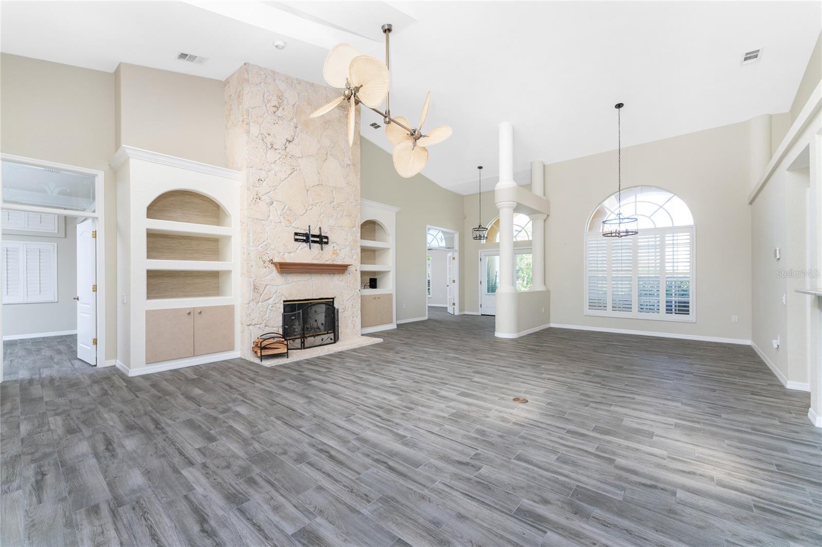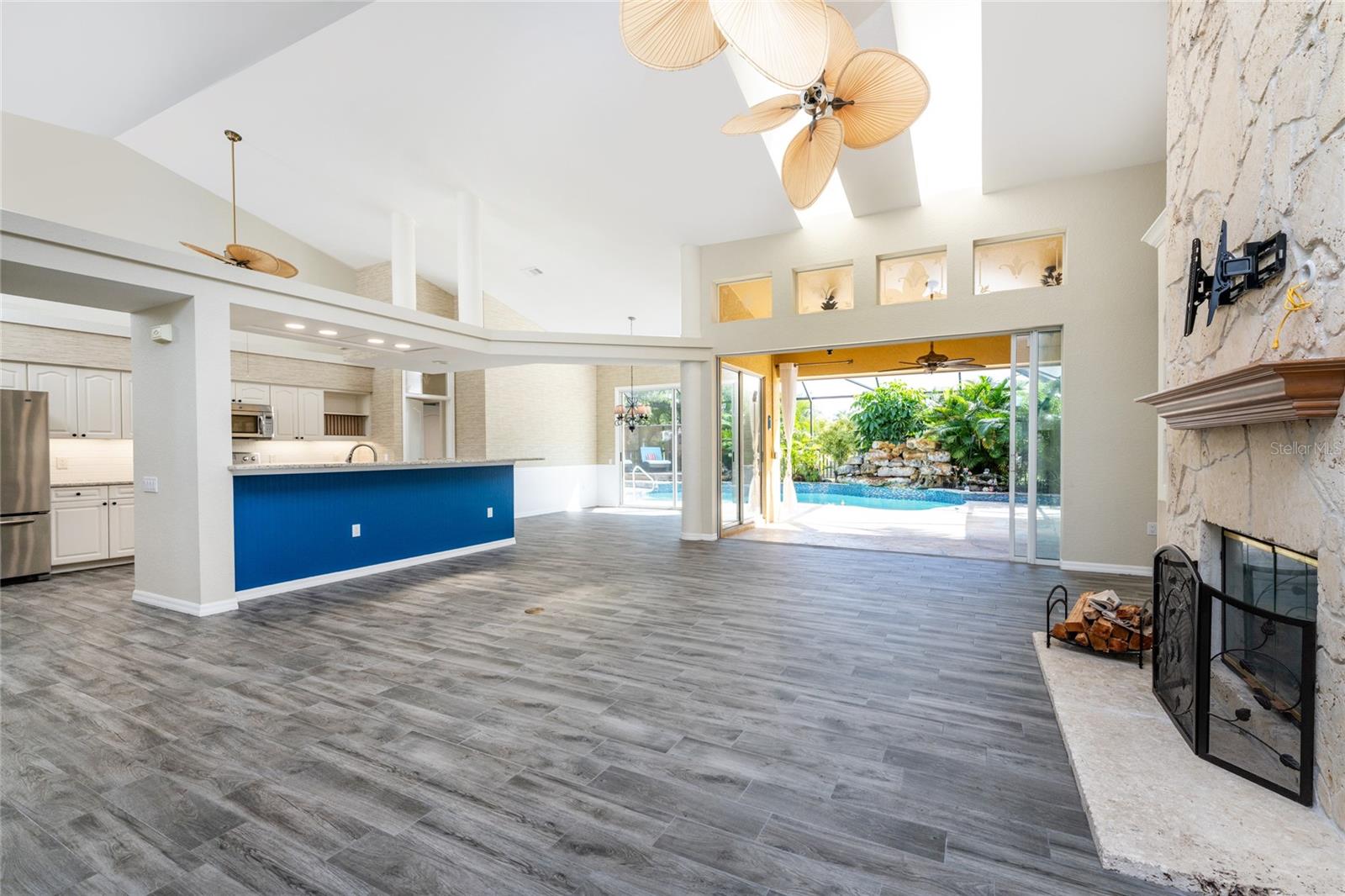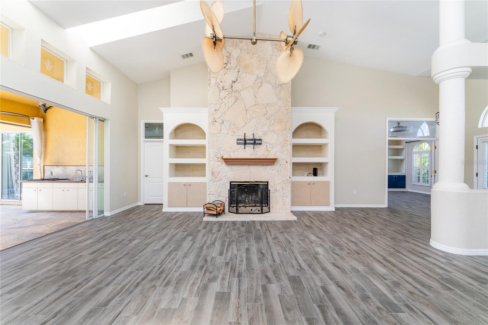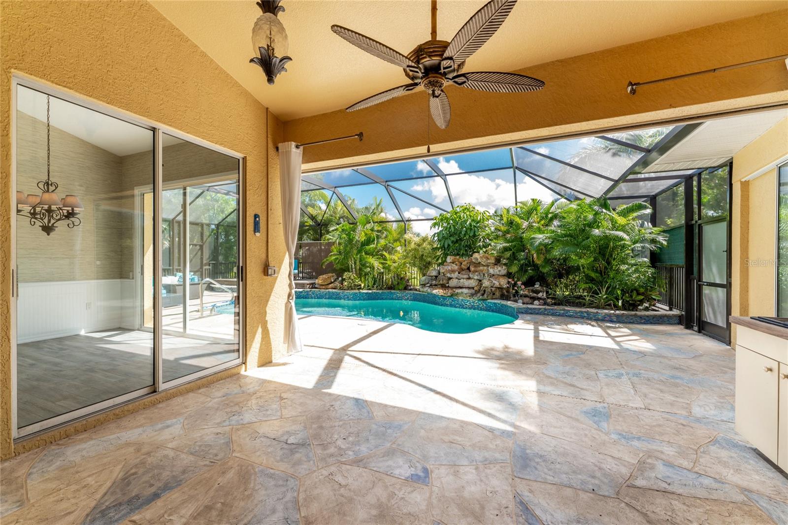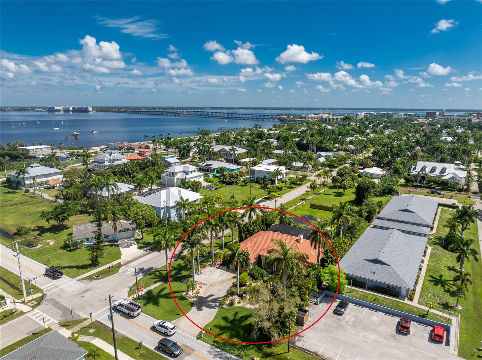 Priced to Sell! You cannot beat this location!! This former model home has 3 bedrooms and 2 bathrooms, located in Historic Downtown Punta Gorda. Tropical landscaping and custom exterior lighting create a lovely tropical feel. Step inside through double glass front doors to discover a spacious, open floor plan perfect for both relaxing and entertaining. The great room has a full wall of sliders providing a view of the rock waterfall, pool, and mature tropical landscaping. A working stone fireplace is a nice addition for the rare cool evening. The well-appointed kitchen features contemporary finishes and a breakfast bar area perfect for entertainment. Need a home office? A large office is just off the great room with custom built-in shelves. It can also serve as a hobby area or as an extra bedroom. Enjoy the serene ambiance of the master suite, complete with a luxurious ensuite bathroom, double walk-in closets and large walk-in shower. The additional two bedrooms are spacious and share a hall bathroom with lanai access. The screened-in lanai feels like a private island oasis! Multiple seating areas, both shaded and sunny, provide plenty of space to entertain. Just imagine beginning your day on the lanai listening to your very own waterfall! Just off the lanai is a fenced area for your pets. One of this home’s greatest features is its prime location. Enjoy easy walking or biking to Fishermen’s Village, Gilchrist Park, the Saturday Farmer’s Market, History Park, downtown restaurants and boutiques, or the 18 miles of bike and walking paths – all within a mile. Daily shopping needs such as groceries, pharmacies or big box stores are 10 minutes or less away. Punta Gorda Airport is also within 10 minutes, allowing easy travel. This home checks all the boxes for Punta Gorda coastal life. No water in the home from hurricanes.
