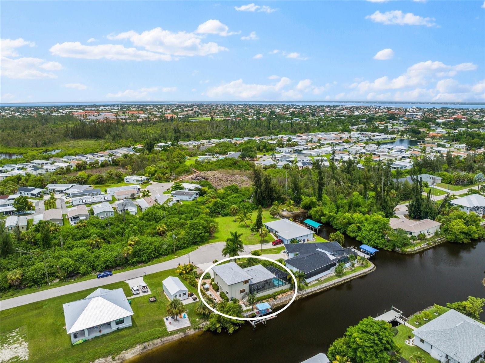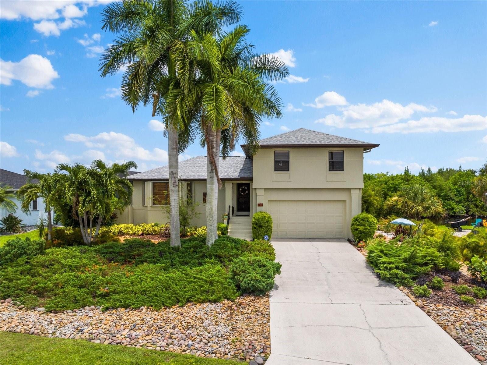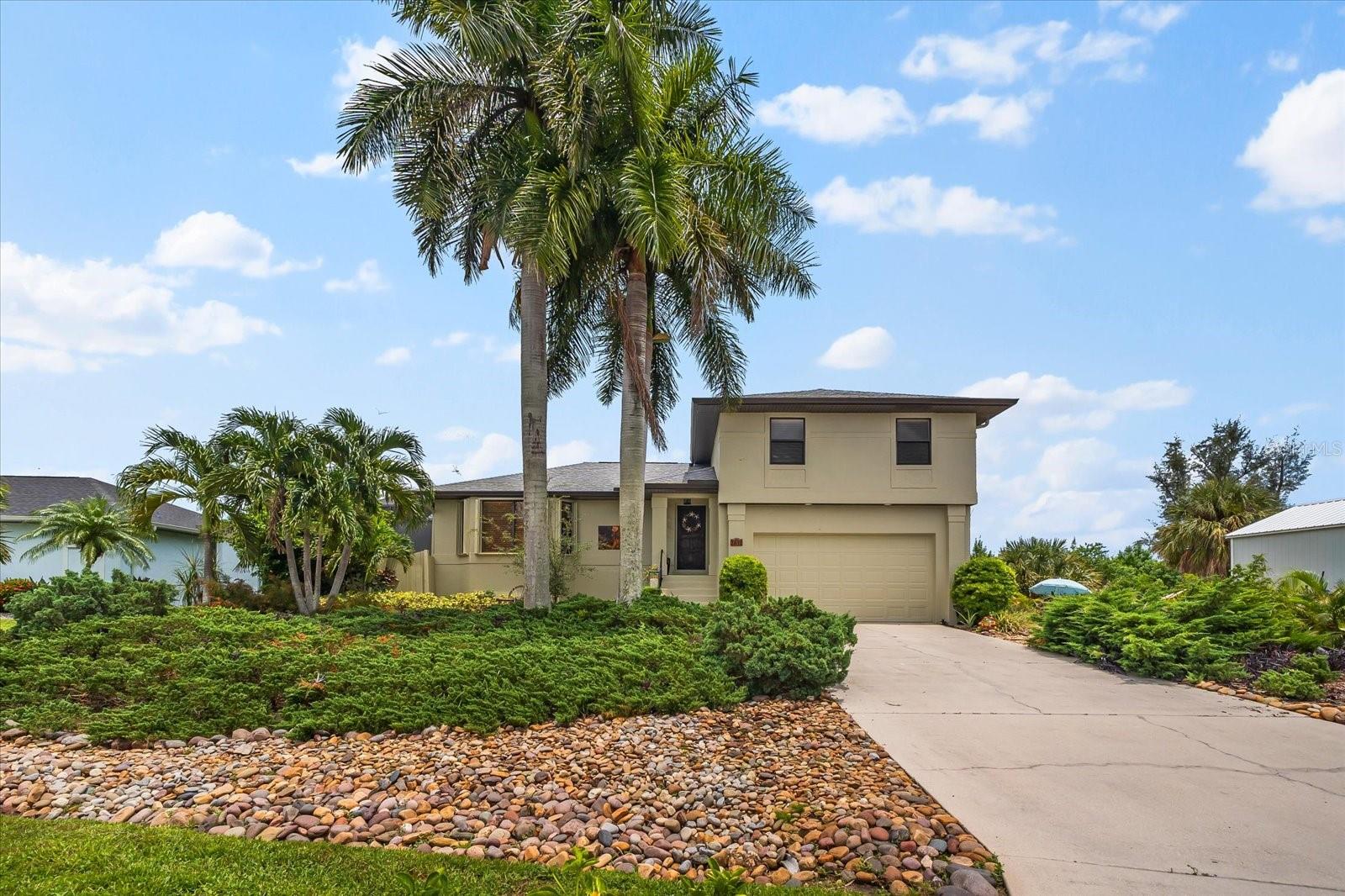 NO HURRICANE DAMAGE AND NO FLOODING!! Experience the joy of coastal living in this incredible two-story pool home with direct GULF ACCESS, nestled in the serene community of Punta Gorda. This property features 3 spacious bedrooms, 2.5 bathrooms, and 1,768 square feet of beautifully appointed living space. As you approach, you’ll be greeted by meticulously maintained landscaping that surrounds the home, enhancing its charm and curb appeal. The exterior boasts a fresh coat of paint applied this year, giving it a modern and vibrant look. Step inside to find a spacious living room adorned with a beautiful electric holographic fireplace, perfect for cozy evenings. The open-concept design seamlessly connects the living area to the kitchen, which is equipped with top-of-the-line stainless steel appliances, including a double range oven and a wine refrigerator. The kitchen and living room windows provide stunning water views, creating a serene backdrop for your daily activities. From the main floor, a short flight of steps leads down to the dining room and the attached garage. Adjacent to the dining area, you'll find a convenient powder bathroom, ideal for guests. All three bedrooms are located on the second floor, each featuring generous walk-in closets. The upper floor is fitted with hurricane impact glass, ensuring safety and peace of mind. The home boasts numerous recent upgrades, including a NEW ROOF installed in 2023, repiped plumbing in 2022, and a water heater installed in 2021. The first level features accordion shutters for added storm protection. The cocktail pool is perfect for those looking to soak up the sun and unwind in their private retreat. A large propane tank on the south side of the house is available to help generate power when needed. The property also includes a well pump and water conditioning system, both installed within the last few years. Enjoy the convenience of an 8,000-pound boat lift and a beautiful dock, surrounded by lush landscaping. The waterfront location provides easy and quick access to the Gulf. Situated at the end of a quiet cul-de-sac, this home offers unparalleled peace and privacy with NO HOA and NO DEED RESTRICTIONS. Despite its tranquil setting, it’s just minutes away from downtown Punta Gorda, Fisherman’s Village, and Gilchrist Park. Don’t miss your chance to own this exceptional waterfront property. Schedule your showing today before it's too late!