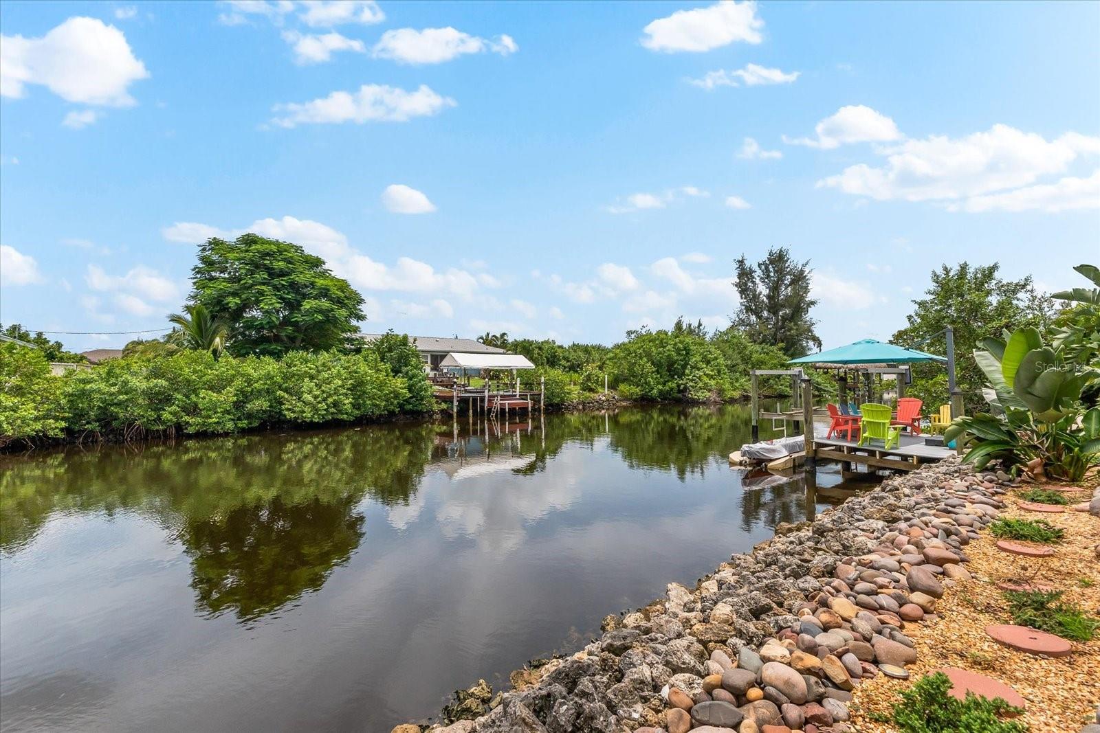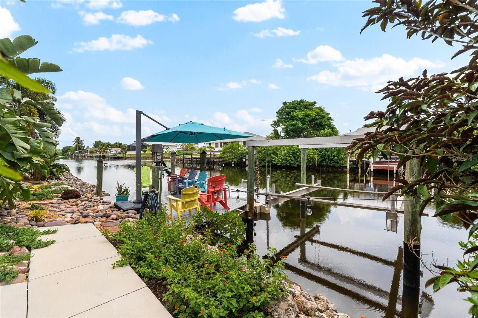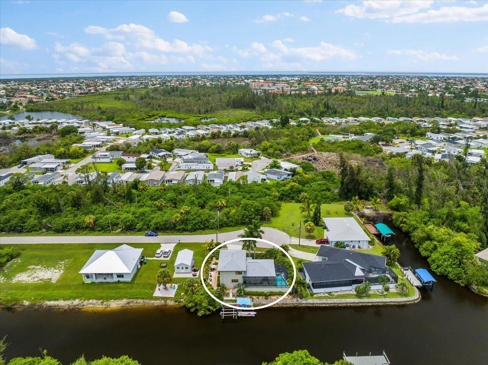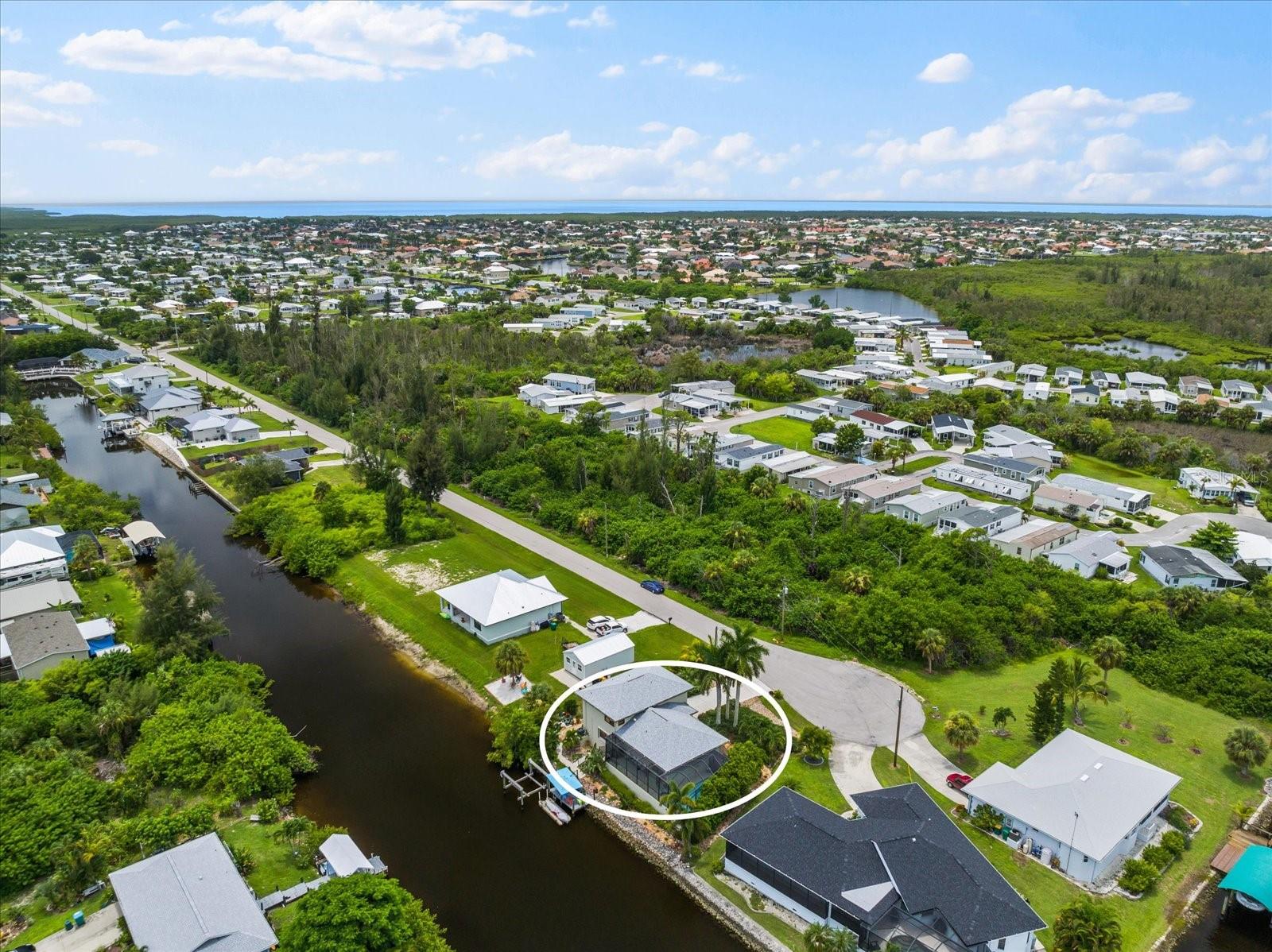 NO HURRICANE DAMAGE AND NO FLOODING!! Experience the joy of coastal living in this incredible two-story pool home with direct GULF ACCESS, nestled in the serene community of Punta Gorda. This property features 3 spacious bedrooms, 2.5 bathrooms, and 1,768 square feet of beautifully appointed living space. As you approach, you’ll be greeted by meticulously maintained landscaping that surrounds the home, enhancing its charm and curb appeal. The exterior boasts a fresh coat of paint applied this year, giving it a modern and vibrant look. Step inside to find a spacious living room adorned with a beautiful electric holographic fireplace, perfect for cozy evenings. The open-concept design seamlessly connects the living area to the kitchen, which is equipped with top-of-the-line stainless steel appliances, including a double range oven and a wine refrigerator. The kitchen and living room windows provide stunning water views, creating a serene backdrop for your daily activities. From the main floor, a short flight of steps leads down to the dining room and the attached garage. Adjacent to the dining area, you'll find a convenient powder bathroom, ideal for guests. All three bedrooms are located on the second floor, each featuring generous walk-in closets. The upper floor is fitted with hurricane impact glass, ensuring safety and peace of mind. The home boasts numerous recent upgrades, including a NEW ROOF installed in 2023, repiped plumbing in 2022, and a water heater installed in 2021. The first level features accordion shutters for added storm protection. The cocktail pool is perfect for those looking to soak up the sun and unwind in their private retreat. A large propane tank on the south side of the house is available to help generate power when needed. The property also includes a well pump and water conditioning system, both installed within the last few years. Enjoy the convenience of an 8,000-pound boat lift and a beautiful dock, surrounded by lush landscaping. The waterfront location provides easy and quick access to the Gulf. Situated at the end of a quiet cul-de-sac, this home offers unparalleled peace and privacy with NO HOA and NO DEED RESTRICTIONS. Despite its tranquil setting, it’s just minutes away from downtown Punta Gorda, Fisherman’s Village, and Gilchrist Park. Don’t miss your chance to own this exceptional waterfront property. Schedule your showing today before it's too late!