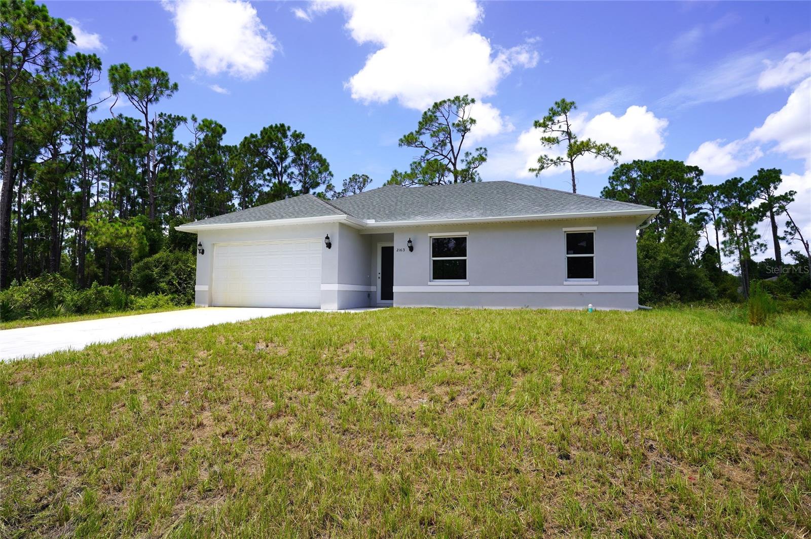 NEW, Move in Ready, Now!!! NO FLOOD ZONE!!! New 3/2/2 Block home. Bring a purchase contract that they can't refuse. A great first home or investment property. Hurricane doors and windows. Entering, you'll be greeted with 10 foot ceilings and a 8 foot impact resistant front door and windows (Hurricane rated). Many upgrades to this property. 8 foot and four hinged doors through out the house and Luxury tile flooring throughout the home. Granite counter tops and stainless appliance packages and upgrade faucets. The bathrooms are designed with a spa-like ambiance, featuring luxurious fixtures, stylish tiling, and modern conveniences for a truly oasis experience. The master bedrooms will be a sanctuary of comfort, offering a spacious layout, ample natural light, and bathroom. The garage 19 x 20, is plumbed for water and a sink if you desire. The home has a water Softener System and water comes from a well. Drive way measures 52 x 16 for extra parking. Lanai comes with extra hot / cold water and drain plumbing to install a sink if you wish. Conveniently located close to I-75 and local amenities, beaches, and Tiki Bars and Live entertainment daily. The best Tarpon and red game fishing in the world with off speed boat racing to spring training baseball teams as The Atlanta Braves and Tampa Rays baseball teams. Just want to go to the local beaches (Port Charlotte, Boca Grande, Englewood and Sarasota beaches) or fishing for the day. Great to do it all with whatever you can dream or do as a hobby. Local International Airports: Fort Myers, Sarasota and local Punta Gorda with Allegiant airlines direct. Many outdoor concert venues weekly. Many local Tiki Clubs watch live entertainment to have a Sunset view. Local parks, state parks, tennis or pickleball, to amazing golf courses. You deserve to view this property and make it your home or investment. You even have room to add or build a new pool. Ask for warranty details and or video walk through showings.