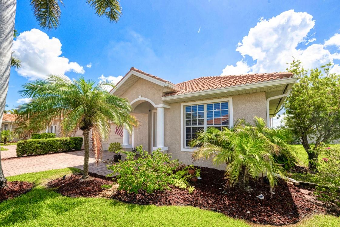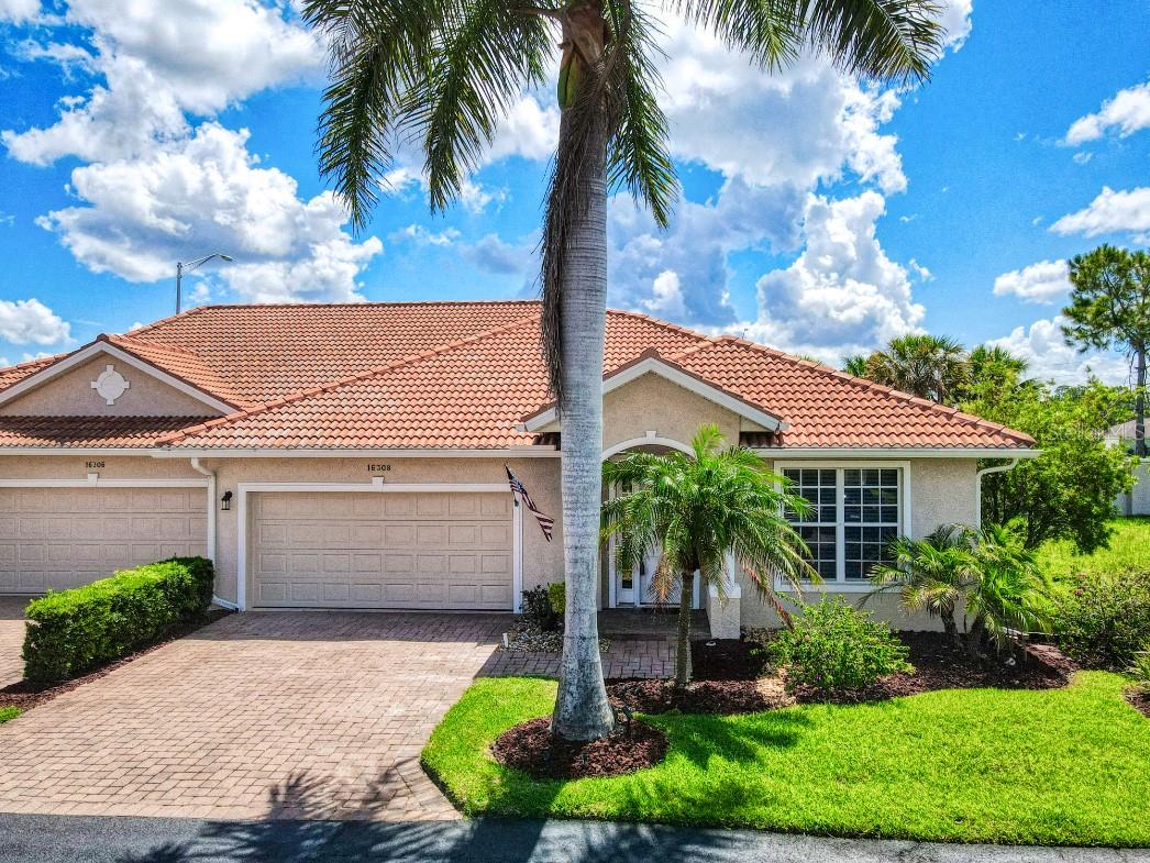 Live the Florida lifestyle with this 3 Bedroom, 2 Bathroom, 2 Car Garage condo located in the Sunset Palms community in Burnt Store Lakes. CLICK ON THE VIRTUAL TOUR LINK 1 FOR THE VIDEO AND VIRTUAL LINK 2 FOR THE 3D TOUR. Featuring a bright & airy floor plan with high ceilings, recessed lighting, tile & wood flooring in the main living areas, and MORE! Enjoy entertaining friends and family in the living room that flows to the formal dining room. The kitchen offers ALL appliances, granite countertops, a tiled backsplash, a closet pantry, and a breakfast counter. A spacious master bedroom has a walk-in closet and a private bathroom with a dual sink vanity, walk-in shower, and private toilet. The guest bedrooms are on a split floor plan offering plenty of privacy with built-in closets and a guest bathroom nearby. Sip your morning coffee or unwind with your favorite beverage on the enclosed lanai while enjoying the serene landscaping and beautiful Florida weather. Experience ultimate relaxation with your very own Swedish sauna conveniently located in the garage. The landscaped backyard has a paved patio and vinyl fencing, perfect for an animal lover. Sunset Palms is a sub-community within Burnt Store Lakes offering a clubhouse with an exercise room, billiards and kitchen, and community pool. Burnt Store Lakes is a deed-restricted community featuring city water, sewer, a playground, a community park, a bike path, and a recreation area. Enjoy the convenience of Burnt Store Marina, the largest deep water marina in SW FL featuring wet slips, dry dock storage, a boat ramp, and Burnt Store Marina Golf and Activity Club. This community offers convenience to US41 and I-75 for easy access to local shopping, dining, entertainment & award-winning beaches!