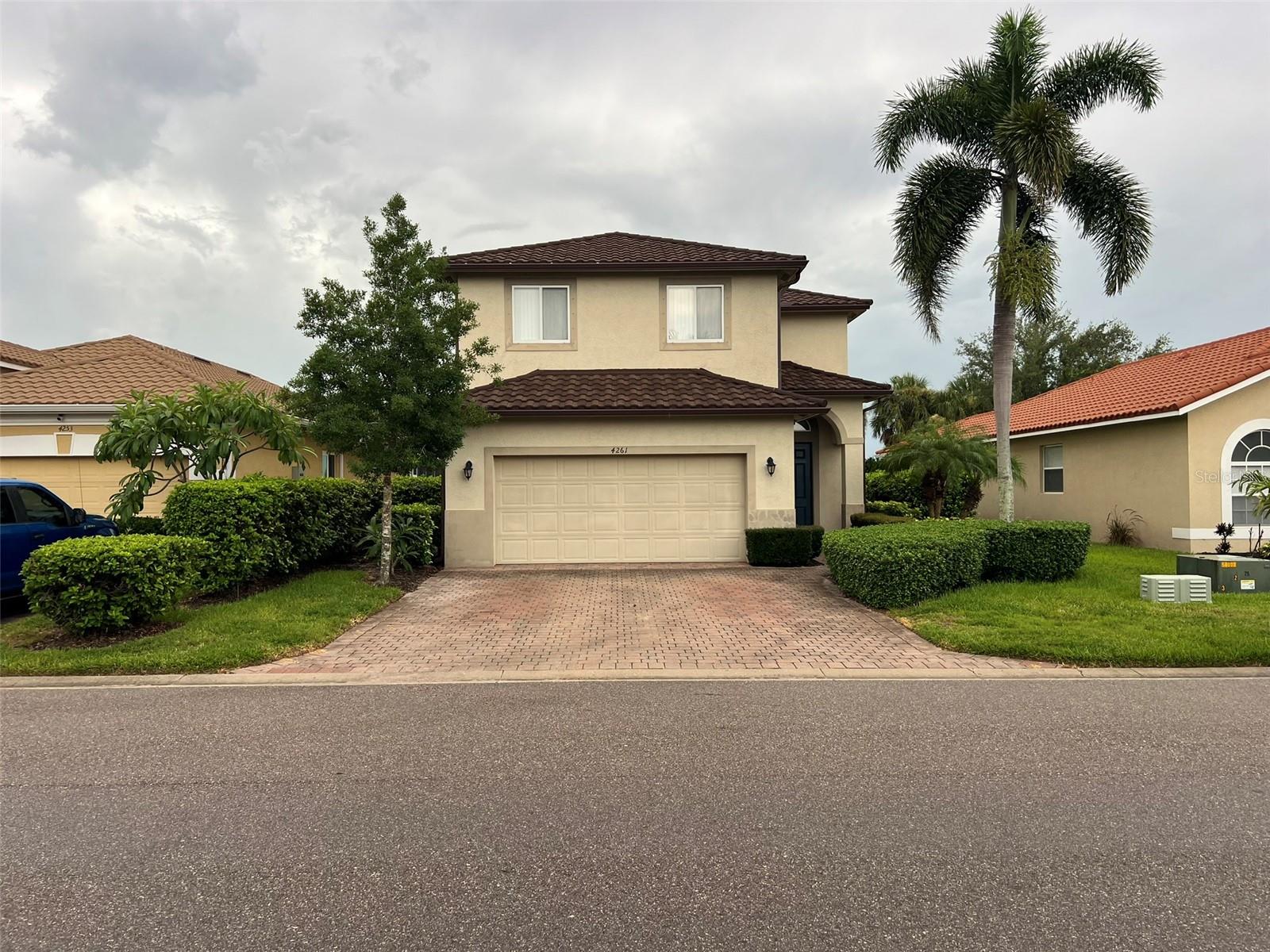 This is a beautiful one owner, 4 bedroom, 2.5 bath home located in a desirable gated community featuring a community pool, fitness center & playground. Super strong Tilcor Stone Coated Steel Roof. A/C Unit. Water Heater, and Stainless Refrigerator - all less than a year old. A sliding 3 panel glass door leading to a screened in lanai and a large rear, 35 by 25 paver patio deck with tall hedges for privacy. Great for entertaining. Kitchen has all matching appliances, counter space, cabinet storage, pantry and granite countertops. Kitchen also has a convenient half bath and next to that is the laundry room with matching cabinets. The stairs to the second floor have an open feeling with high ceilings. The 2nd floor has the 3 guest rooms and a full guest bathroom. The master suite enjoys maximum privacy with double doors, his & hers walk-in closets, and the bath features a soaking tub & privatized water closet. This home also has a large 2 car garage with storage shelves. The garage paver driveway has been expanded to fit three cars. Convenient location that is close to I-75, minutes to the Peace River and all the shopping, dining and entertainment options of Punta Gorda or Port Charlotte. Anyone would be proud to call this property and the River Club Port Charlotte community with all of its amenities home! UPDATES - POOL/SPA INSTALLED 2019, WATER HEATER 2022, GARAGE DOOR 2022. The association fees include lawn care, irrigation, basic cable, & use of the recreation facility (gym playground and large heated pool). Lake and private road maintenance are also included.