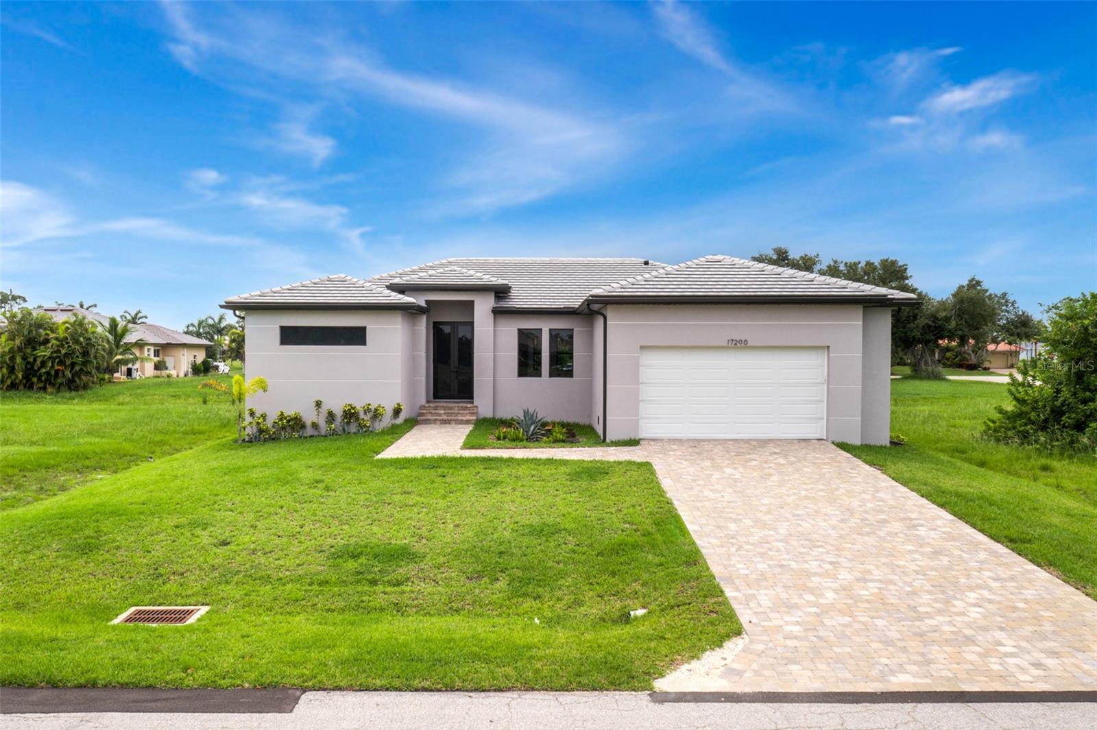 Step into your dream home with this stunning, move-in-ready gem, designed for modern living and ultimate comfort. This beautiful residence features an open floor plan with 3 spacious bedrooms, 2.5 luxurious bathrooms, and an oversized 2-car garage that offers plenty of storage. The home showcases elegant 8-foot doors throughout, adding a touch of sophistication. The expansive master suite is a true retreat, boasting private access to the lanai, two walk-in closets, and a spa-like en-suite bathroom with dual vanities and a large shower with multiple shower heads for a luxurious experience. The guest bedrooms are thoughtfully located on the opposite side of the house to provide maximum privacy. The heart of the home, the open-concept great room, seamlessly connects to the kitchen, creating an inviting space for entertaining. The kitchen is a chef's delight, featuring a bar area, a full-size walk-in pantry, a sleek glass cooktop, and a wall oven. The upgraded Italian quartz countertops add elegance to the kitchen and all three bathrooms. Outside, the home is just as impressive with a stunning paver driveway, a state-of-the-art irrigation system, and lush landscaping that makes this property a true standout. The community is golf cart-friendly, offering a leisurely way to explore the area. Located in the desirable Burnt Store Corridor, this home is just a short drive from Punta Gorda Airport and conveniently close to Fort Myers Airport, with plenty of dining and shopping options nearby. Homeowners have the opportunity to join the social membership at Burnt Store Marina, granting access to an array of amenities, including golf, a fitness center, and a marina. Don’t miss the chance to make this perfect home yours—schedule a tour today and experience the luxury and convenience for yourself!