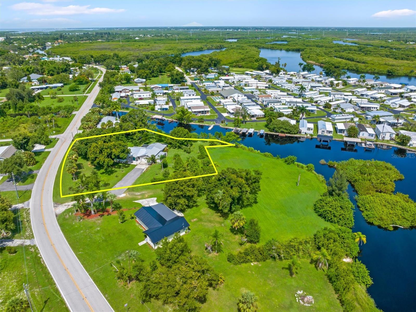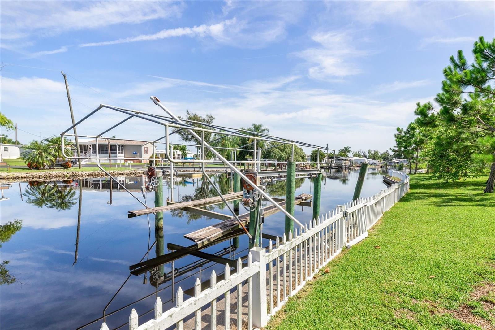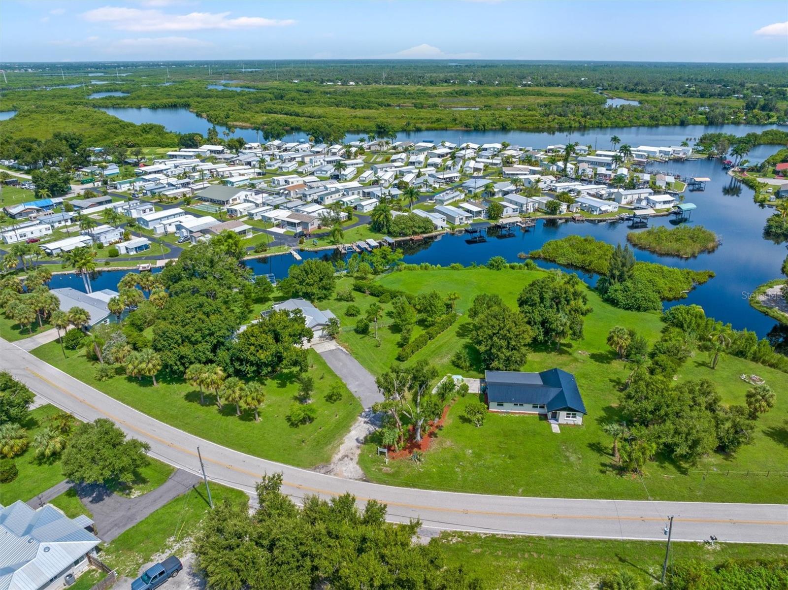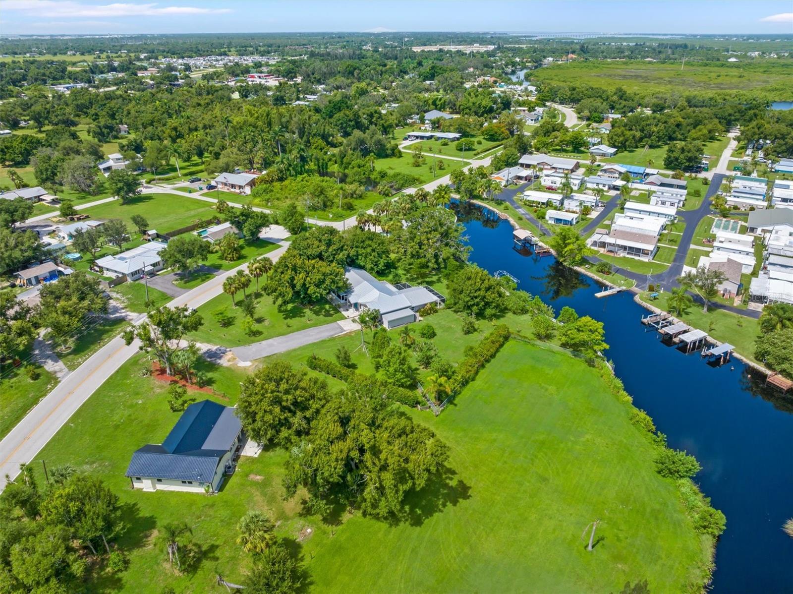 One or more photo(s) has been virtually staged. Enjoy this spacious FAMILY HOME on a HUGE WATERFRONT LOT WITH QUICK ACCESS TO THE PEACE RIVER. Experience exceptional fishing and boating from this Punta Gorda gem where there is plenty of room for pets and children to romp and play in the fenced yard. Boasting over 200 ft of concrete seawall along the serene shores of Shell Creek, this property offers direct access to the open waters of the Peace River, Charlotte Harbor, Myakka River, Boca Grande, and the Gulf of Mexico – with NO BRIDGES obstructing your journey. Step inside to discover an array of MODERN UPDATES throughout the open, split-floor plan that seamlessly combines comfort and style. The expansive Living/Great Room features large windows that frame views of the waterfront. The Primary Bedroom, with its French doors leading to a wrap-around screened lanai, offers picturesque views of the tranquil setting, and the updated spa-like Ensuite Bath is a highlight, featuring a gorgeous claw-foot bathtub, pedestal sink and a spacious tiled shower with bench. The second and third bedrooms are both generously sized and include CEDAR WALK-IN CLOSETS and elegant wood plank ceilings. They share an updated bathroom with a tiled shower and a cedar linen closet. Beautiful archways frame the large, modern L-shaped Kitchen and Dining area that is perfect for versatile dining and entertaining. The kitchen has been totally redesigned and updated with new cabinets, countertops, tile backsplash, and stainless appliances, and it provides access to both the rear screened lanai and front porch, meaning seamless entertaining opportunities. Additional features include TILE FLOORING THROUGHOUT, new HURRICANE IMPACT WINDOWS, an updated breaker panel, and new AIR CONDITIONER and METAL ROOF installed in 2017. With three tankless water heaters (two installed and a third as backup), you will never run out of hot water. The attached two-car garage includes an adjoining shed, ideal for a workshop or outdoor equipment, and the spacious property includes ample room for parking recreational vehicles or watercraft. Set on a generous .88-acre waterfront lot, this classic mid-century home has been tastefully updated with a park on the other side of property that no one can build on. The fully fenced yard, complete with irrigation via city water, enhances the mature landscape and creates a park-like atmosphere. Conveniently located near downtown Punta Gorda, shopping, dining, medical facilities, I-75, and nearby airports, this home offers both charm and practicality. Don’t miss out—view the virtual tour for a 3D look at the floorplan and see for yourself why this move-in ready charmer is a must-see!