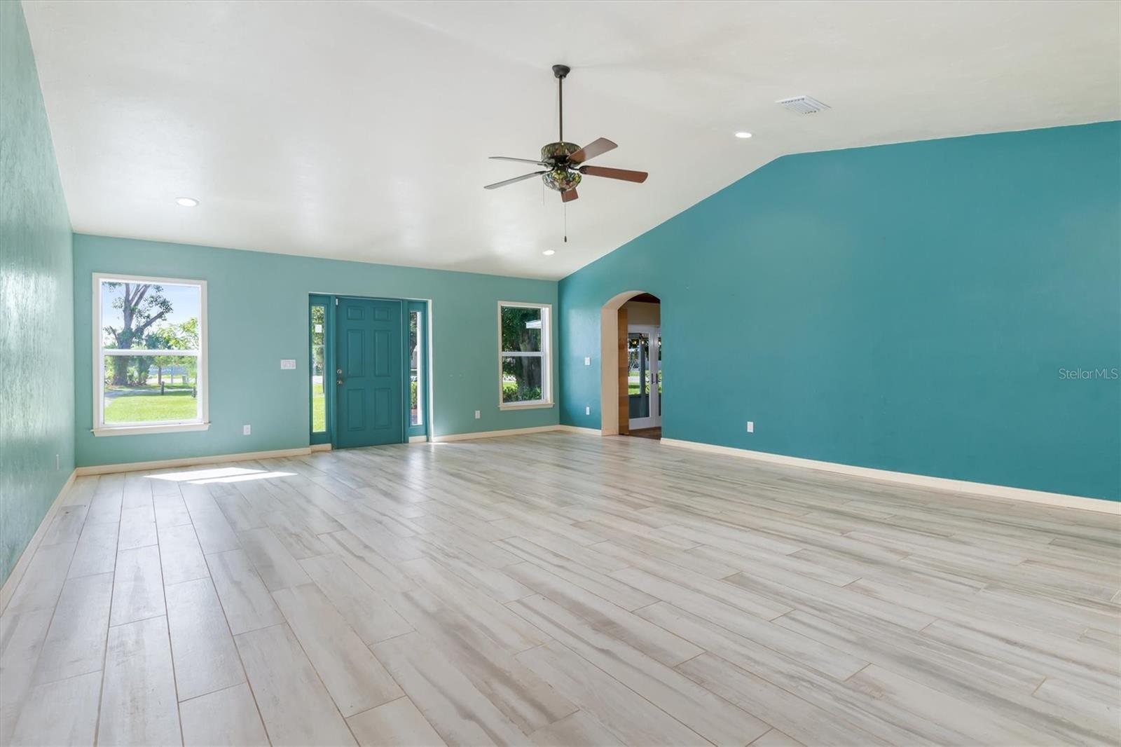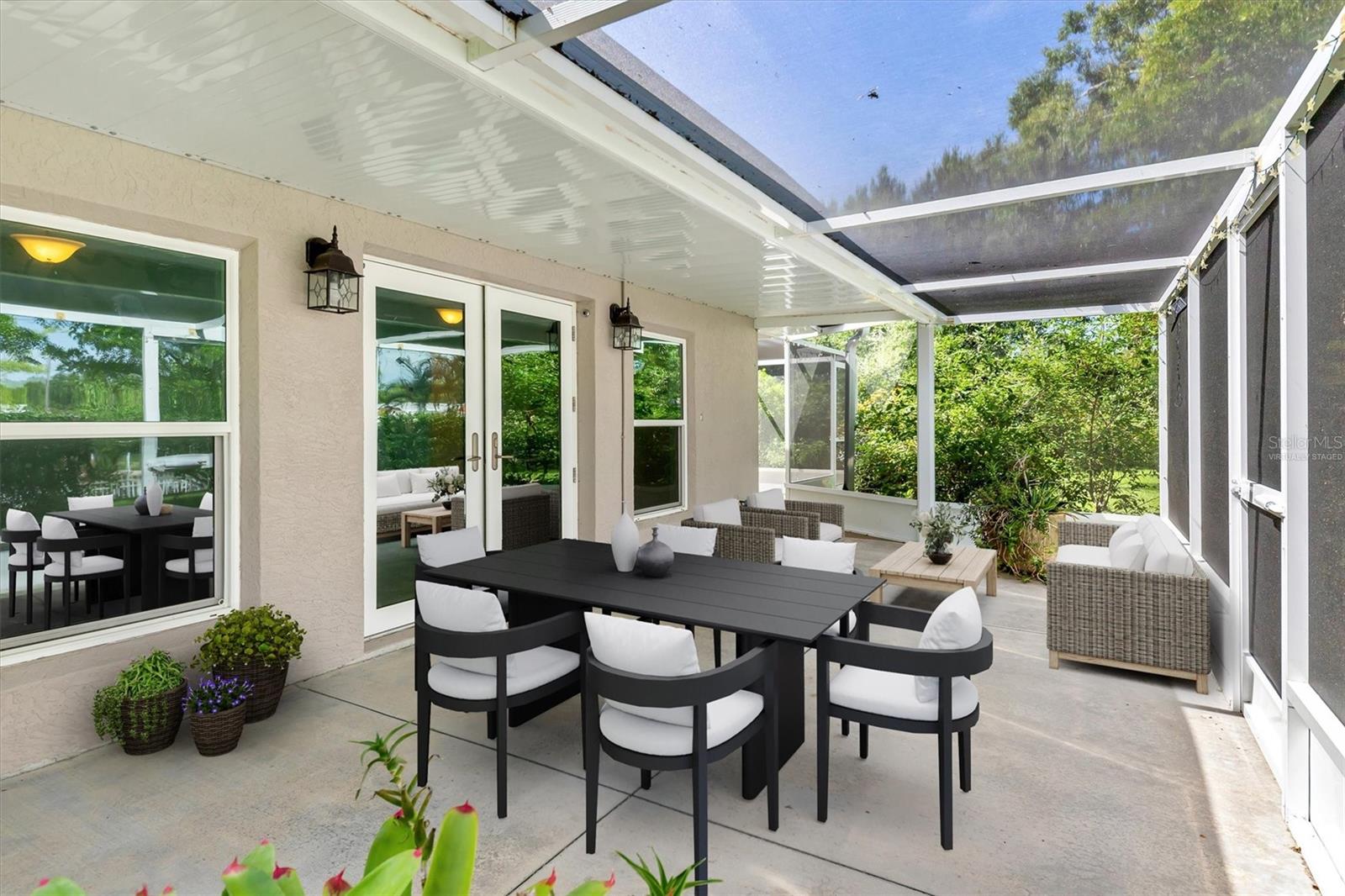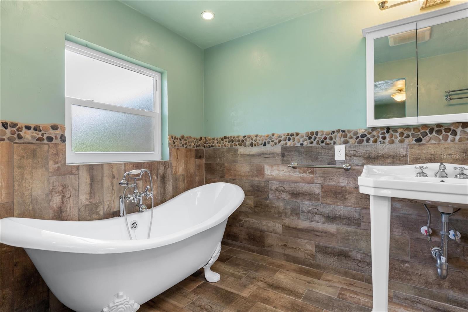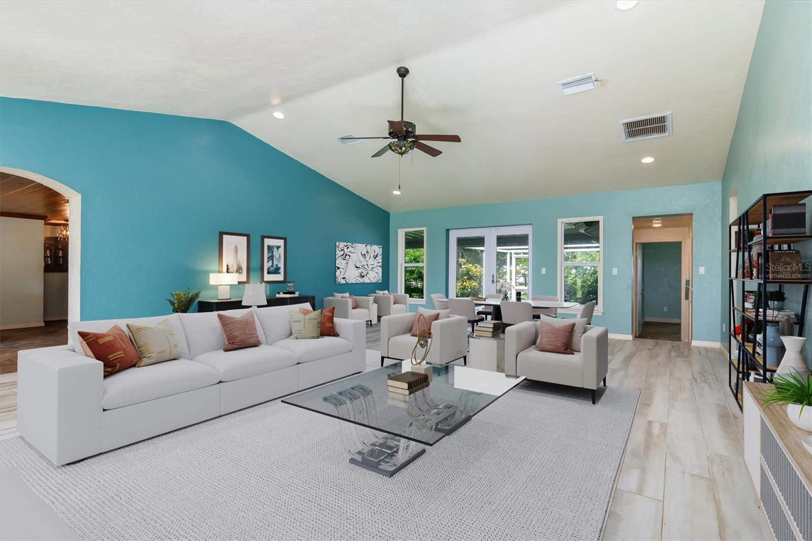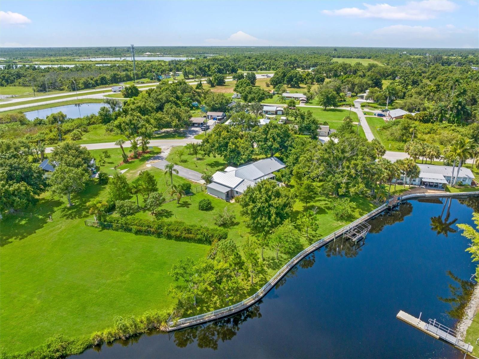 One or more photo(s) has been virtually staged. Enjoy this spacious FAMILY HOME on a HUGE WATERFRONT LOT WITH QUICK ACCESS TO THE PEACE RIVER. Experience exceptional fishing and boating from this Punta Gorda gem where there is plenty of room for pets and children to romp and play in the fenced yard. Boasting over 200 ft of concrete seawall along the serene shores of Shell Creek, this property offers direct access to the open waters of the Peace River, Charlotte Harbor, Myakka River, Boca Grande, and the Gulf of Mexico – with NO BRIDGES obstructing your journey. Step inside to discover an array of MODERN UPDATES throughout the open, split-floor plan that seamlessly combines comfort and style. The expansive Living/Great Room features large windows that frame views of the waterfront. The Primary Bedroom, with its French doors leading to a wrap-around screened lanai, offers picturesque views of the tranquil setting, and the updated spa-like Ensuite Bath is a highlight, featuring a gorgeous claw-foot bathtub, pedestal sink and a spacious tiled shower with bench. The second and third bedrooms are both generously sized and include CEDAR WALK-IN CLOSETS and elegant wood plank ceilings. They share an updated bathroom with a tiled shower and a cedar linen closet. Beautiful archways frame the large, modern L-shaped Kitchen and Dining area that is perfect for versatile dining and entertaining. The kitchen has been totally redesigned and updated with new cabinets, countertops, tile backsplash, and stainless appliances, and it provides access to both the rear screened lanai and front porch, meaning seamless entertaining opportunities. Additional features include TILE FLOORING THROUGHOUT, new HURRICANE IMPACT WINDOWS, an updated breaker panel, and new AIR CONDITIONER and METAL ROOF installed in 2017. With three tankless water heaters (two installed and a third as backup), you will never run out of hot water. The attached two-car garage includes an adjoining shed, ideal for a workshop or outdoor equipment, and the spacious property includes ample room for parking recreational vehicles or watercraft. Set on a generous .88-acre waterfront lot, this classic mid-century home has been tastefully updated with a park on the other side of property that no one can build on. The fully fenced yard, complete with irrigation via city water, enhances the mature landscape and creates a park-like atmosphere. Conveniently located near downtown Punta Gorda, shopping, dining, medical facilities, I-75, and nearby airports, this home offers both charm and practicality. Don’t miss out—view the virtual tour for a 3D look at the floorplan and see for yourself why this move-in ready charmer is a must-see!