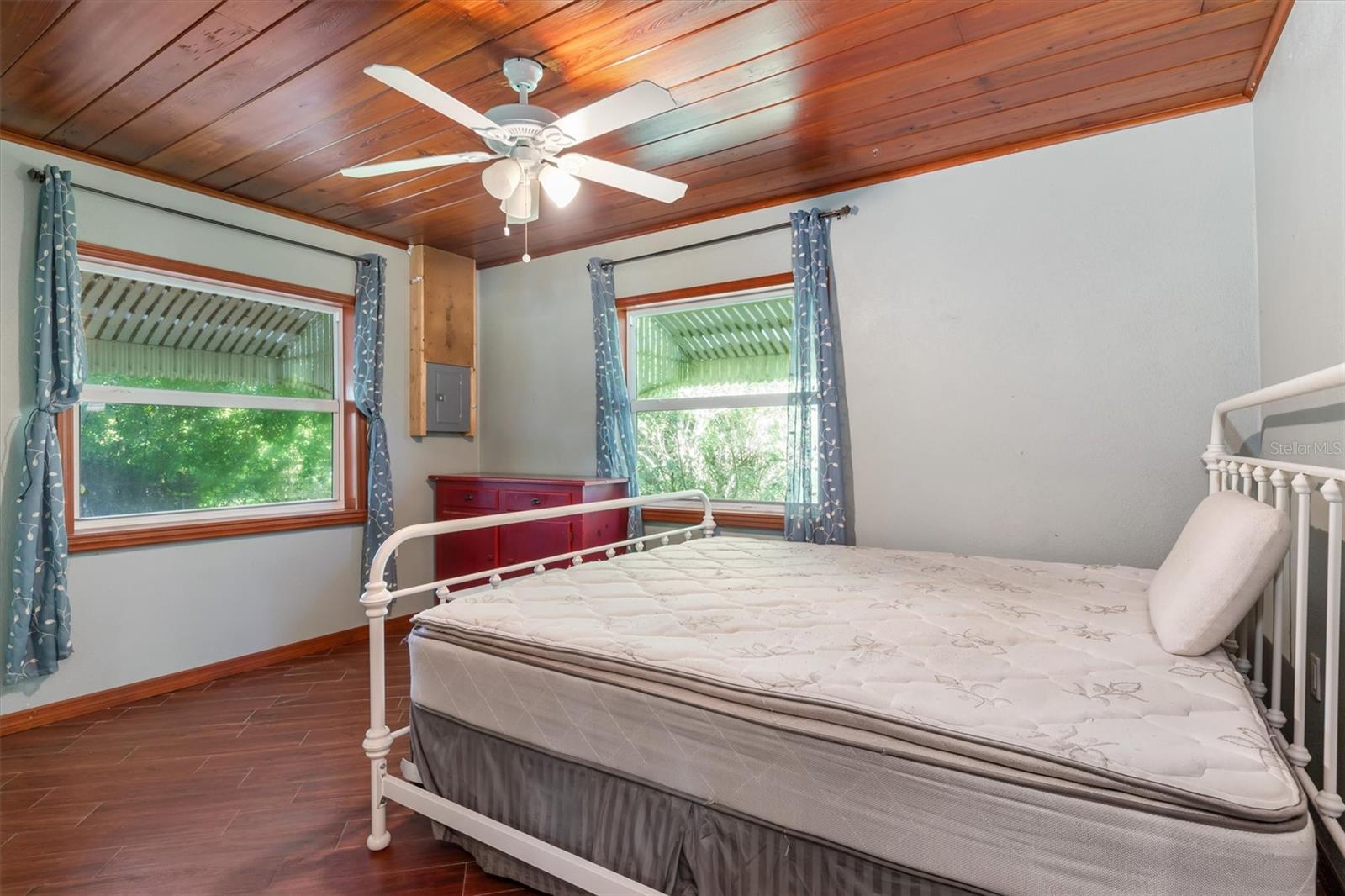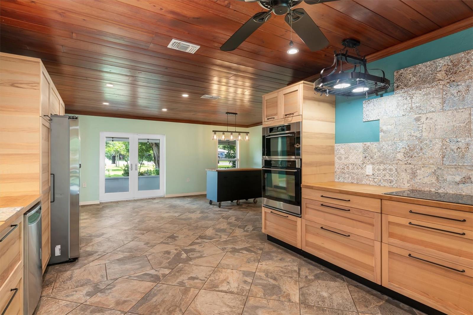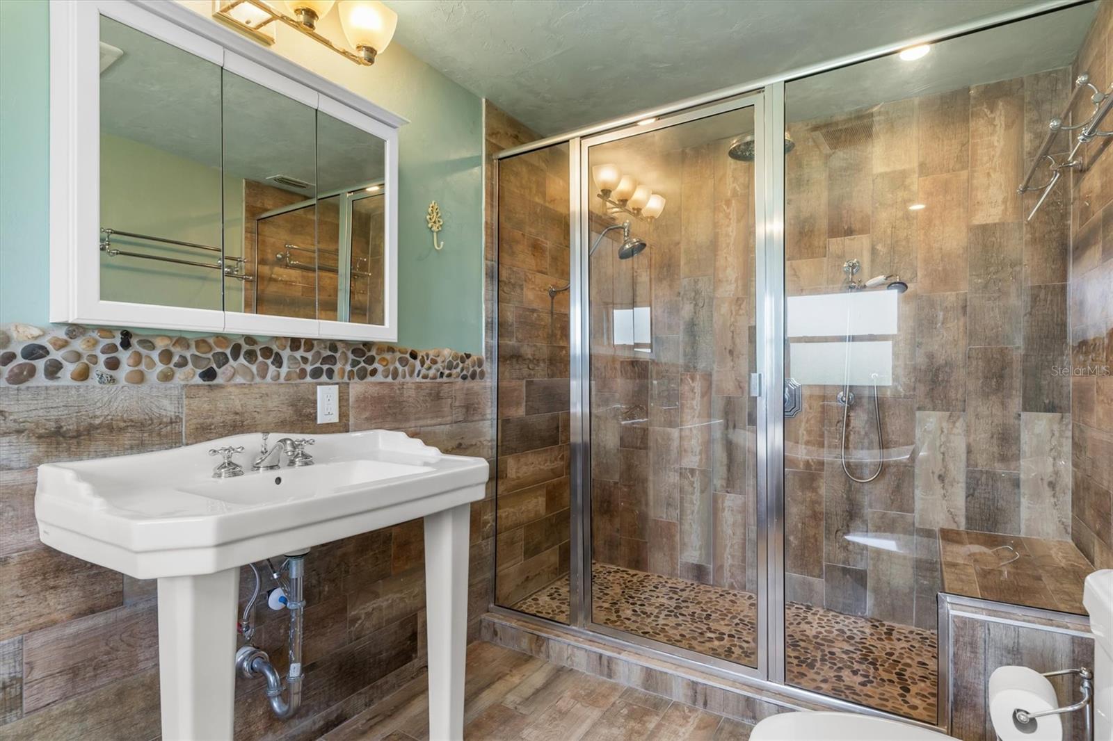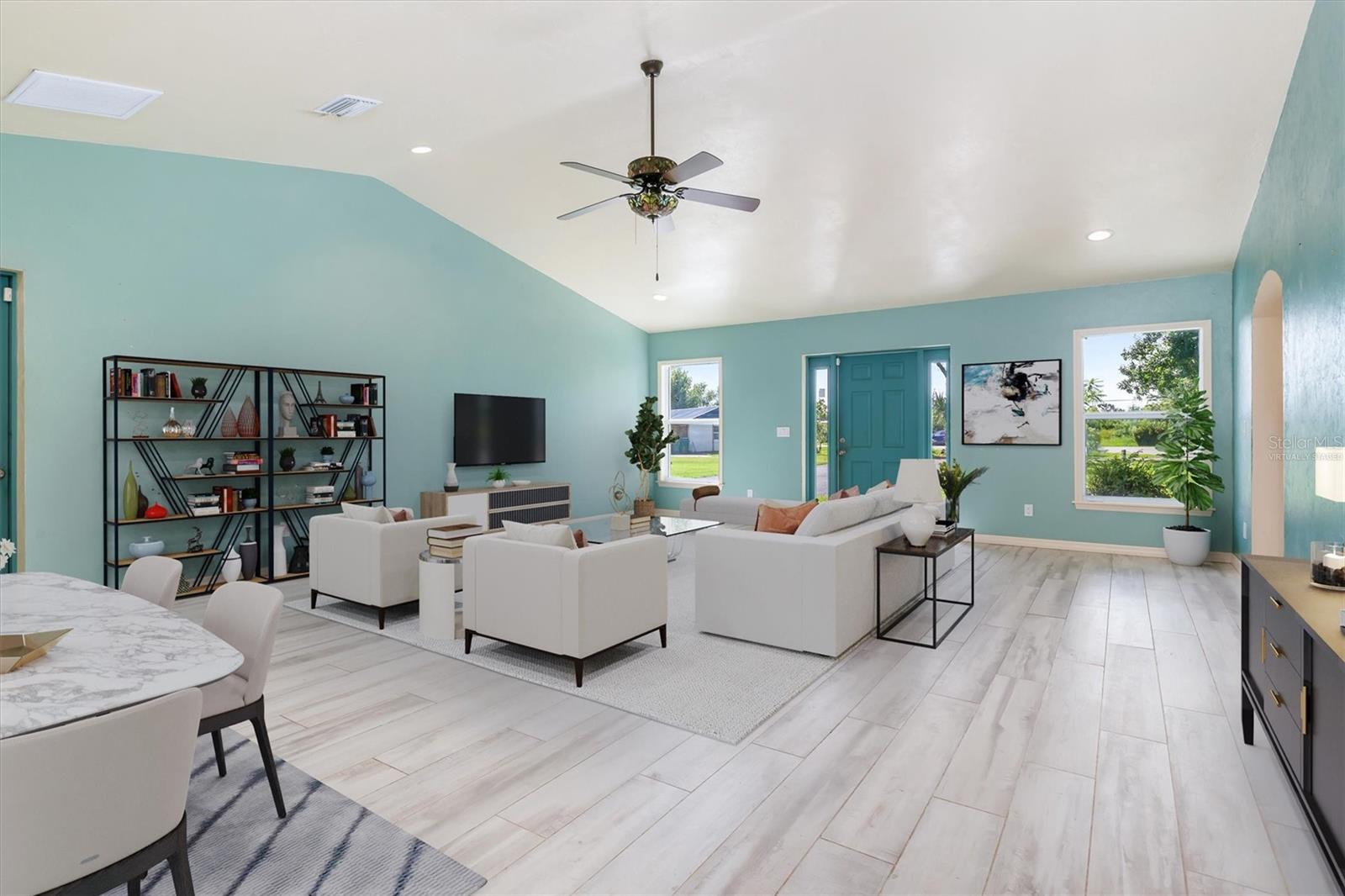 One or more photo(s) has been virtually staged. Enjoy this spacious FAMILY HOME on a HUGE WATERFRONT LOT WITH QUICK ACCESS TO THE PEACE RIVER. Experience exceptional fishing and boating from this Punta Gorda gem where there is plenty of room for pets and children to romp and play in the fenced yard. Boasting over 200 ft of concrete seawall along the serene shores of Shell Creek, this property offers direct access to the open waters of the Peace River, Charlotte Harbor, Myakka River, Boca Grande, and the Gulf of Mexico – with NO BRIDGES obstructing your journey. Step inside to discover an array of MODERN UPDATES throughout the open, split-floor plan that seamlessly combines comfort and style. The expansive Living/Great Room features large windows that frame views of the waterfront. The Primary Bedroom, with its French doors leading to a wrap-around screened lanai, offers picturesque views of the tranquil setting, and the updated spa-like Ensuite Bath is a highlight, featuring a gorgeous claw-foot bathtub, pedestal sink and a spacious tiled shower with bench. The second and third bedrooms are both generously sized and include CEDAR WALK-IN CLOSETS and elegant wood plank ceilings. They share an updated bathroom with a tiled shower and a cedar linen closet. Beautiful archways frame the large, modern L-shaped Kitchen and Dining area that is perfect for versatile dining and entertaining. The kitchen has been totally redesigned and updated with new cabinets, countertops, tile backsplash, and stainless appliances, and it provides access to both the rear screened lanai and front porch, meaning seamless entertaining opportunities. Additional features include TILE FLOORING THROUGHOUT, new HURRICANE IMPACT WINDOWS, an updated breaker panel, and new AIR CONDITIONER and METAL ROOF installed in 2017. With three tankless water heaters (two installed and a third as backup), you will never run out of hot water. The attached two-car garage includes an adjoining shed, ideal for a workshop or outdoor equipment, and the spacious property includes ample room for parking recreational vehicles or watercraft. Set on a generous .88-acre waterfront lot, this classic mid-century home has been tastefully updated with a park on the other side of property that no one can build on. The fully fenced yard, complete with irrigation via city water, enhances the mature landscape and creates a park-like atmosphere. Conveniently located near downtown Punta Gorda, shopping, dining, medical facilities, I-75, and nearby airports, this home offers both charm and practicality. Don’t miss out—view the virtual tour for a 3D look at the floorplan and see for yourself why this move-in ready charmer is a must-see!