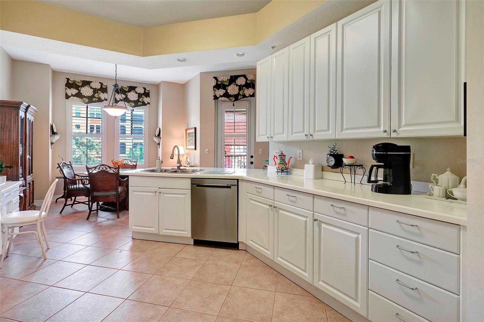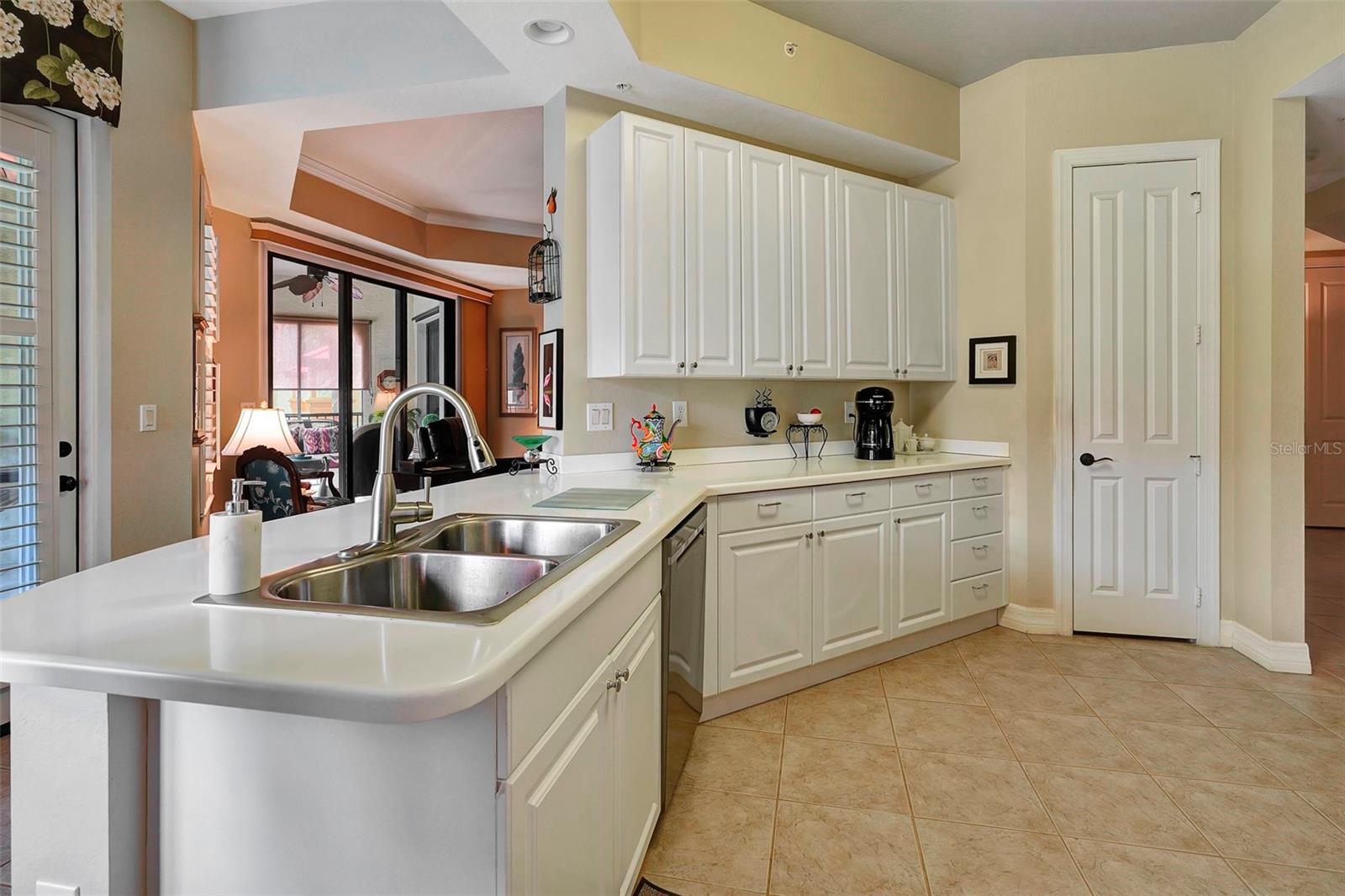 Experience the difference of an end-unit surrounded by WATER VIEWS, plus a LARGE STORAGE ROOM (242 sf) off of the garage--a rare find, as commonly only two garages in each building have this storage area. The easy in-and-out lengthy garage has a de-humidifier. Not all Vivante garages are the same size--this one is 30.5' deep and has perhaps the easiest drive-in experience in the building. The waterfront lanai has a dining area and sitting area. Step indoors to find 1915 sf of tastefully furnished space where most furniture and furnishings are included, ensuring a seamless move-in experience. The split floor plan allows privacy for the two guest bedrooms. This gem was one of the rare units that did not sustain damage from Hurricane Ian. The building has a new metal roof. The assessment has been paid by the Seller. The washer, dryer, dishwasher, and garbage disposal are also new. A home warranty is included. Safety is prioritized with safety bars installed in the bathrooms. The ensuite bathroom has dual vanities and a tub and walk-in shower. Building 96 is close to the clubhouse and tennis courts for convenience, yet not right next to them for serenity. The clubhouse has a fitness center, and both a lap pool and swimming pool serviced by a geo-thermal well—an eco-friendly touch that keeps costs down while maintaining optimal temperatures. Join a vibrant community where the friendly and active owners of building 96 owners gather monthly at the cabana, and also take advantage of Vivante's social and recreational activities. This gated community is located in a prime location overlooking the Charlotte Harbor yet is so close to lively downtown Punta Gorda, Fisherman's Village pier, and the 2.5 mile harbor walk. As an owner in Punta Gorda Isles, the option is yours to join the PGI Civic Association along with its plethora of social and recreational clubs. This is more than a home—it’s a lifestyle waiting for you to embrace.