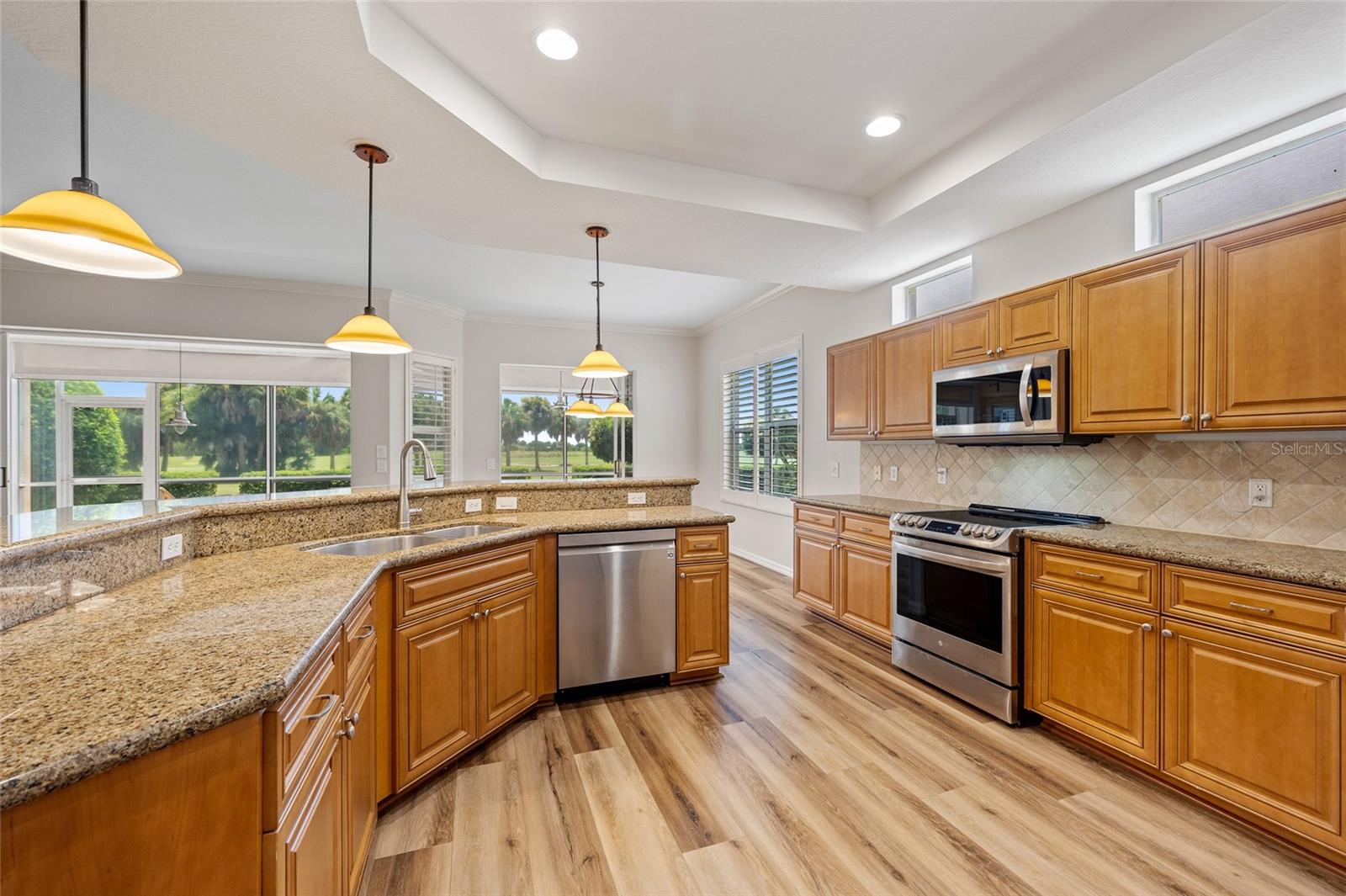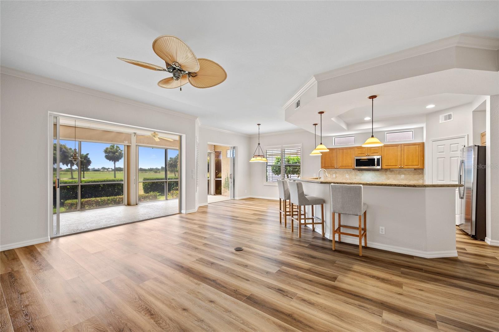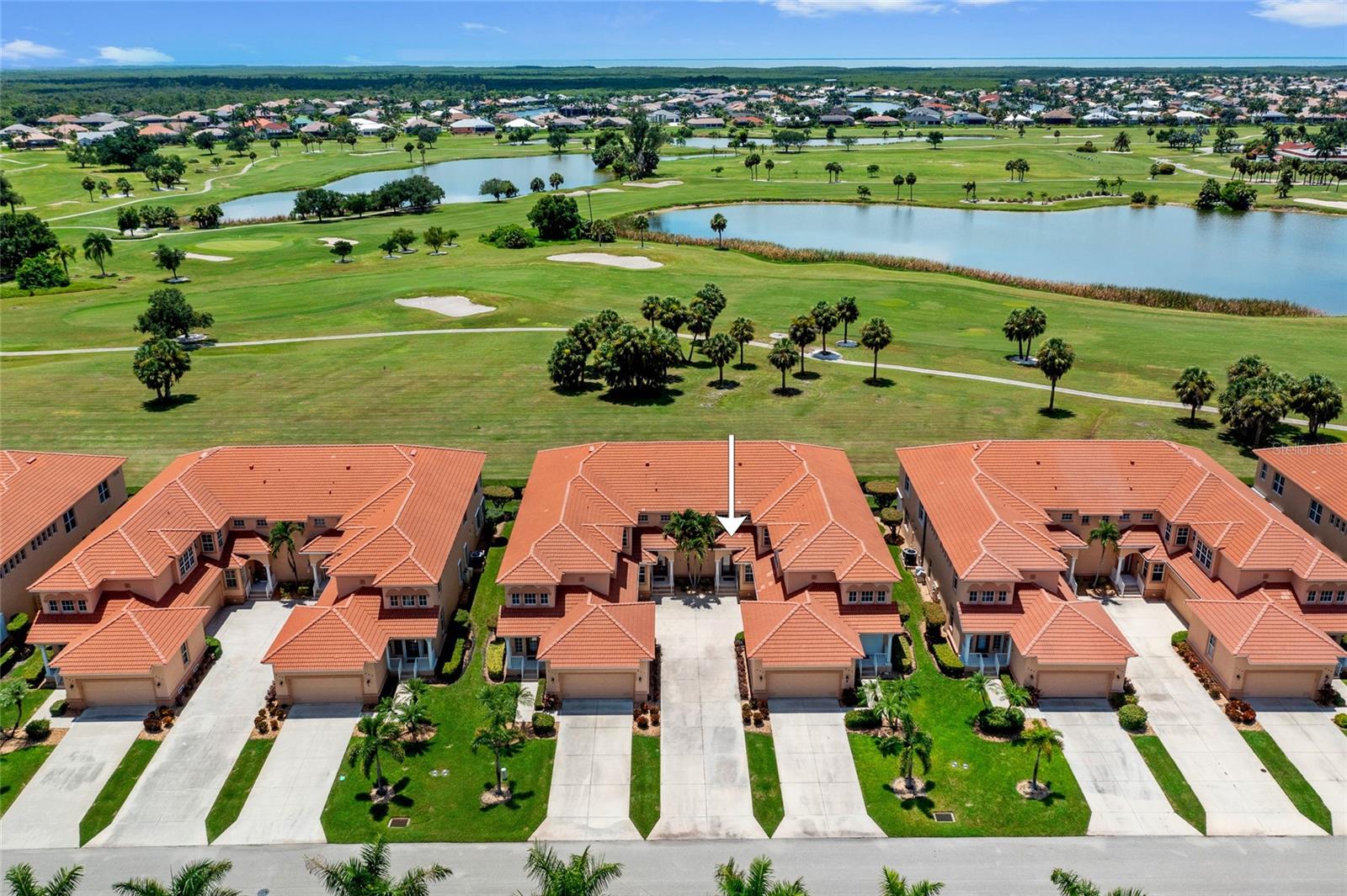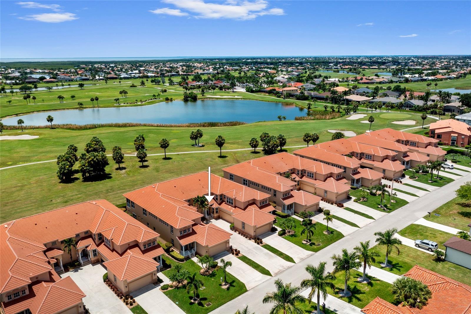 Welcome to this beautiful luxury first floor condo in the desirable boating and golf community of Burnt Store Isles offering serene lake and golf course views of the 8th hole at Twin Isles Golf Club! This impeccable home offers a spacious and open floor plan with 3 bedrooms, 2 baths and 1,883 square feet of living space. As you step inside, you'll immediately notice the attention to detail with crown molding, neutral décor, plantation shutters, plenty of windows for an abundance of natural light plus luxury vinyl flooring throughout. The living and dining areas feature sliders that lead out to a large, covered lanai, allowing for seamless indoor-outdoor living. The kitchen is a chef's dream, complete with granite countertops, tile backsplash, stainless appliances, a breakfast bar, closet pantry, and plenty of counter space for meal preparation. The primary suite offers golf course views, access to lanai, large walk-in closet and private bath with dual sinks and a walk-in shower. The guest bedrooms are generously sized and share a separate full bath, perfect for accommodating family or guests. The lanai boasts southwestern exposure to enjoy amazing SWFL sunsets. Additional features include inside laundry with cabinetry, 2-car attached garage with extra storage space plus electric hurricane roll down on lanai and accordion shutter on front door. Outside, you'll find lush tropical landscaping that adds to the overall beauty of the property. This home is in a quiet, deed-restricted golf course community that offers plenty of privacy. Optional memberships are available just steps away at the Twin Isles Country Club. Here, you can take advantage of an 18-hole championship golf course, a swimming pool, a tennis complex, and a spacious clubhouse that hosts dining and social events. Great location close to I-75 and just a short drive to nearby restaurants, shopping, The Yacht Club, Fishermen's Village, and historic downtown Punta Gorda. This home is truly one of a kind and is ready for you to move in today. Don't miss out on this incredible opportunity to live in luxury and enjoy the best that Burnt Store Isles has to offer. Schedule your private showing today!