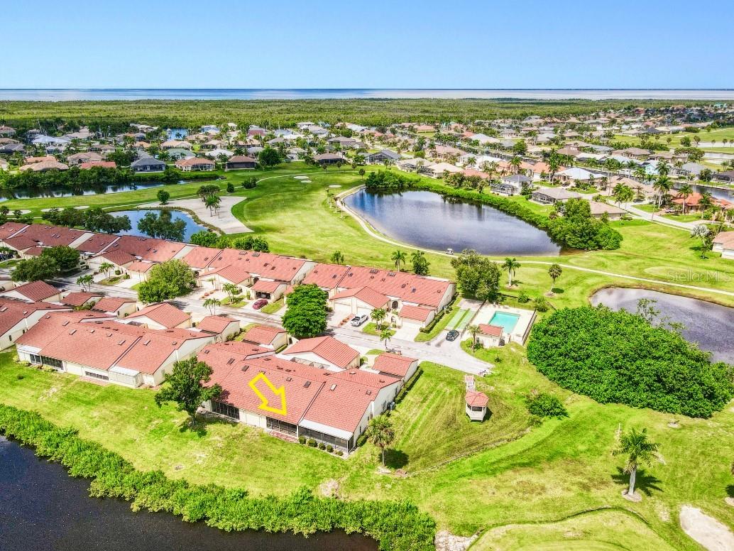 CHARMING 2 Bedroom, 2 Bathroom, 2 Car Garage condo in the Golf Course Villas community on the St. Andrews South Golf Course in Punta Gorda. CLICK ON THE VIRTUAL TOUR LINK 1 FOR THE VIDEO AND VIRTUAL LINK 2 FOR THE 3D TOUR. Featuring a bright & airy floor plan with skylights for plenty of natural lighting, vaulted ceilings, lake & golf-course views and MORE! A private courtyard entrance provides the perfect space to sip your morning coffee while taking in the sunny Florida weather! Spend quality time with friends and family in an open living and dining room, with a glass slider to the lanai, and a BEAUTIFUL lake and golf-course view. The kitchen offers ALL black appliances, granite countertops, tiled backsplash, closet pantry and serving counter to the dining room. The spacious master bedroom has a glass slider to the lanai, HIS & HERS walk-in closets, and a private en-suite bathroom with a single sink vanity, walk-in shower and linen closet. The guest bedroom is a fantastic size with dual built in closet and guest bathroom nearby. Unwind with your favorite evening beverage while enjoying the SERENE lake and golf-course views. The Golf Course Villas community has a pool and shuffle board court. For the golf enthusiast there is the option to join the St. Andrew's South Golf Club (see club office manager for details) which offers a club house, restaurant, and a variety of social events. Those with a regular golf membership have reciprocal privileges at the Isles Yacht Club with access to the dining room, marina and tennis courts. Enjoy all the amenities that Punta Gorda has to offer such as biking, fishing, boating, dining, live entertainment, and much more! Close to Fisherman's Village, Ponce De Leon Park, Gilchrist Park, and Historical Downtown Punta Gorda. Just a short car ride to award-winning beaches! Schedule your showing TODAY!
