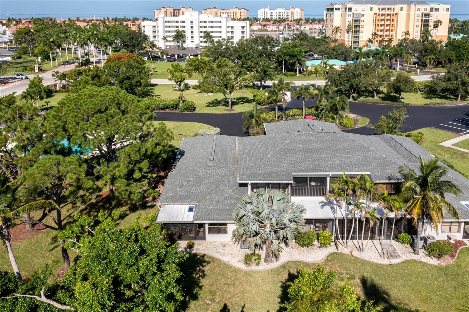 Welcome to your dream home in Admiralty Village at a Great New Price, located within the sought-after Burnt Store Marina community. This beautifully furnished, turnkey 2-bedroom, 2-bath condo spans 1,400 sq ft and offers a serene private garden view from the lanai, perfect for relaxation. The three-season back porch is a cozy yet versatile space designed to let you enjoy the outdoors while staying protected from the elements. The ceiling features a skylight, flooding the area with natural light during the day, creating a bright and inviting atmosphere. A ceiling fan with an integrated light fixture hangs above, providing a gentle breeze and soft lighting for evenings spent on the porch. Wrap-around windows are the key feature of this porch, offering panoramic views of the surrounding landscape. These windows can be easily opened to let in a refreshing breeze on warm days, filling the space with the sounds and scents of nature. When the weather is less favorable, the windows can be closed, allowing you to stay comfortable and dry while still feeling connected to the outdoors. This porch is perfect for sipping morning coffee, reading a book, or entertaining guests. Its design makes it a cozy retreat that can be enjoyed almost year-round, providing a seamless blend of indoor comfort and outdoor charm. This end unit boasts several recent upgrades, including a new air conditioning system installed in August 2024, a new roof in 2023 ensuring a well-maintained living space. Centrally located and close to the association pool, this condo provides convenient access to all the amenities in Burnt Store Marina. As a resident, you'll enjoy one of the largest marinas on Florida's Gulf Coast, featuring 525 wet slips and over 450 dry storage spaces. The community also includes a 27-hole golf course, tennis and pickleball courts, a fitness center, and a waterfront restaurant. Enjoy the picturesque walking and biking paths, social clubs, and a variety of planned activities that cater to all interests. Don't miss the opportunity to own this exceptional property in a prime location, priced to sell, offering both comfort and an active lifestyle.