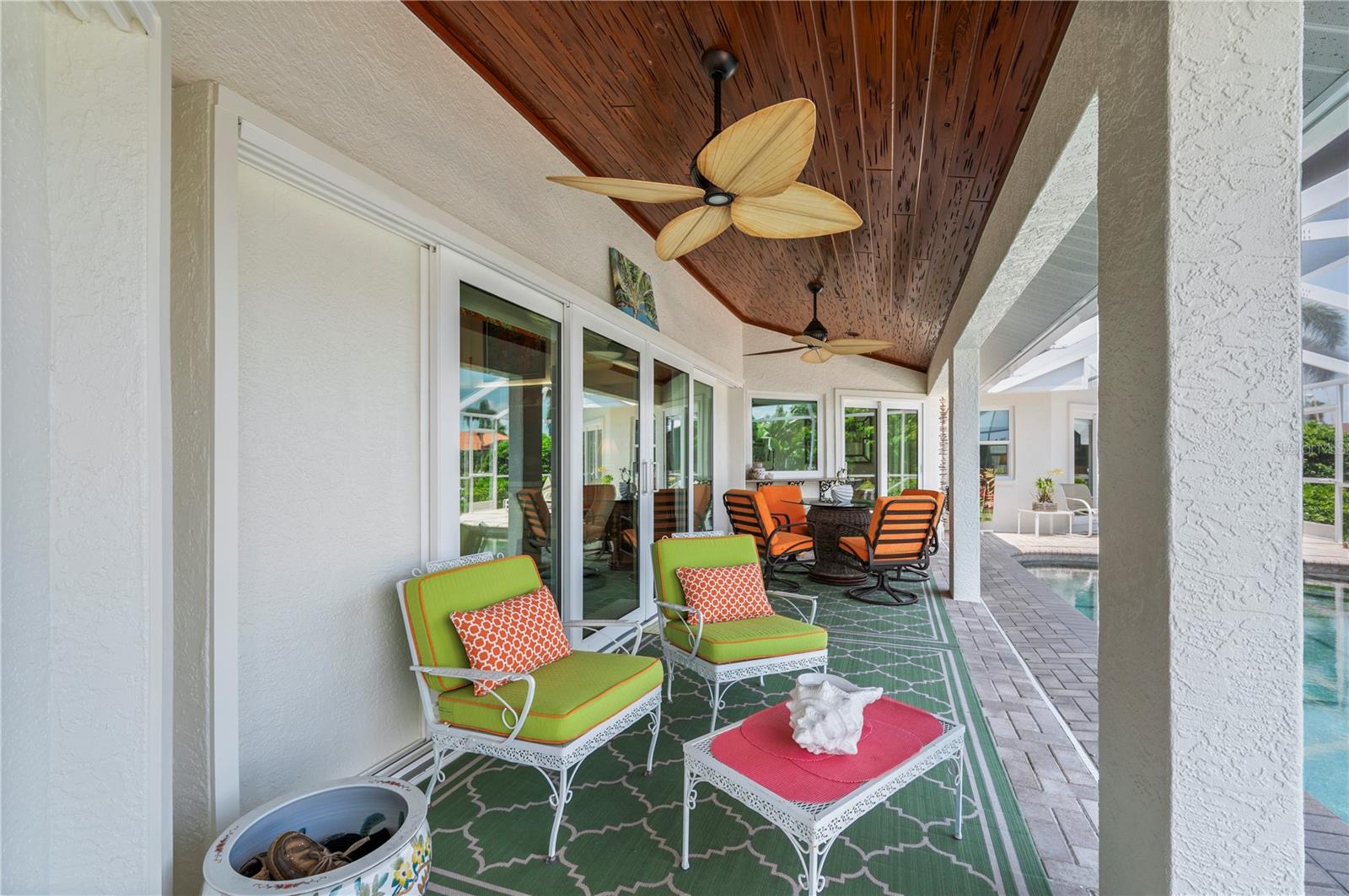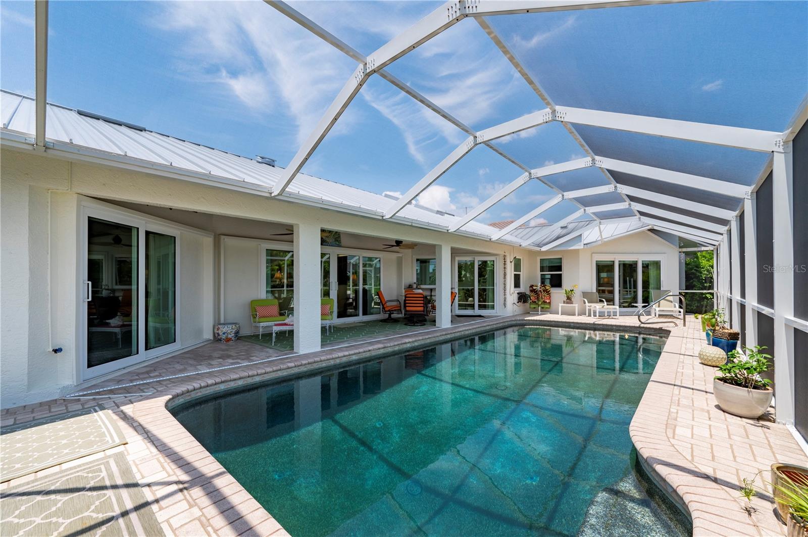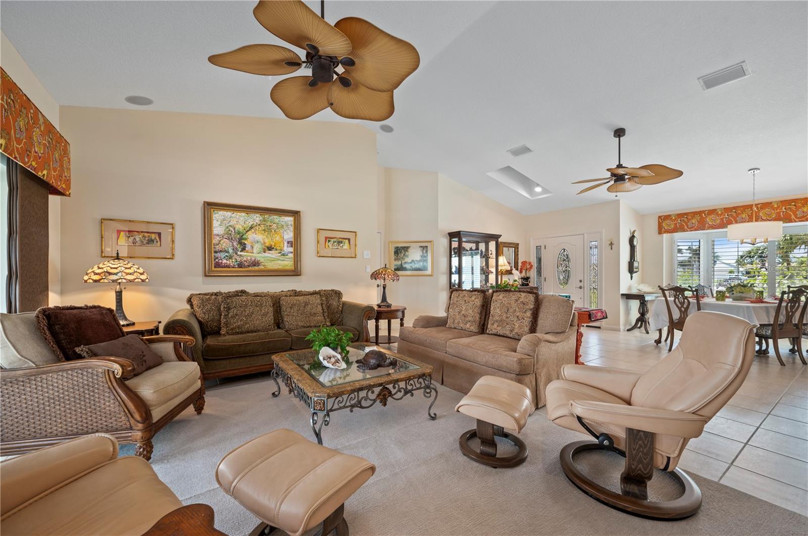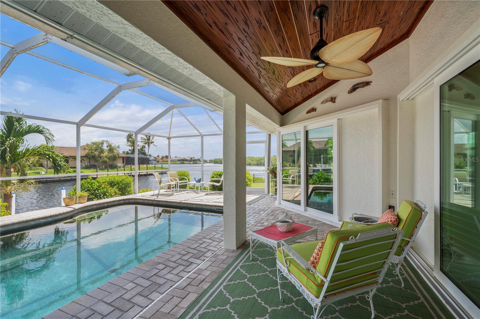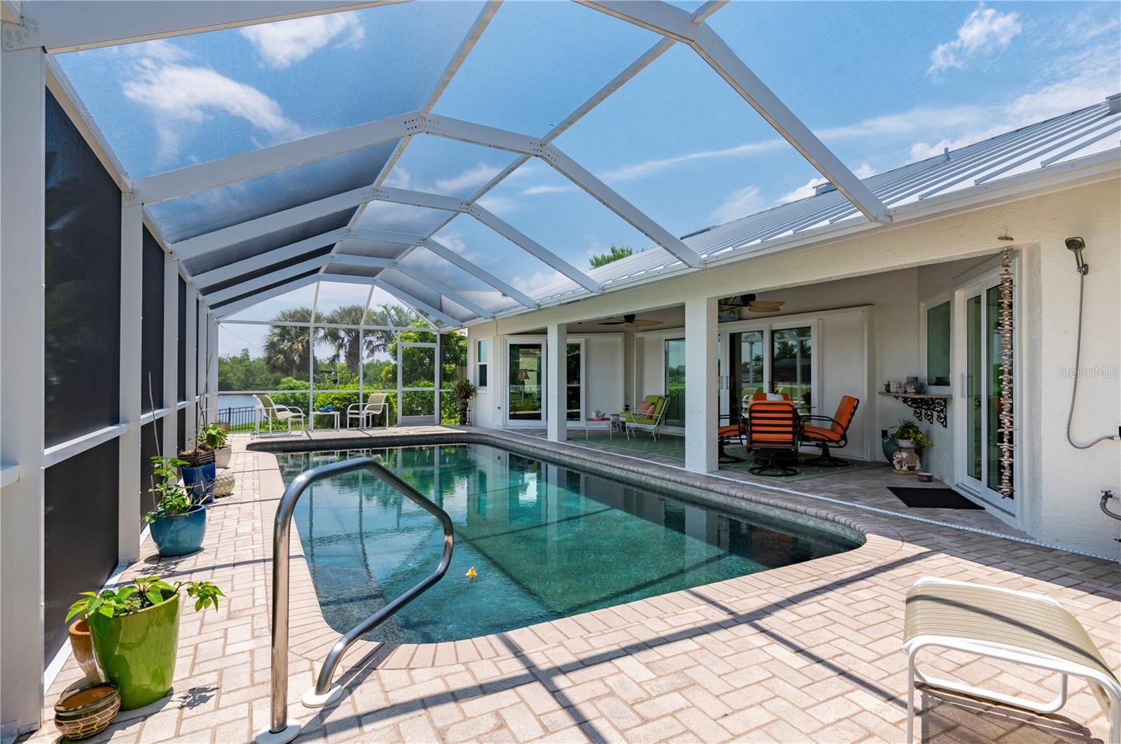 WIDE WATER VIEW! Please enjoy the aerial views and dolphin sighting in the YouTube video. Located on the quiet south end of Bal Harbor in the highly sought after PGI Sec 12. NO HOA. Public Water & Sewer. 8 MIN RIDE TO open water through Buckley's Pass, or a leisurely 20 min ride along the perimeter canal and out Ponce exit. 12'x31' in-ground saltwater swimming pool with screened cage. One-of-a-kind custom floorplan offers TWO Master Suites, Split plan bedrooms for privacy, THREE FULL BATHROOMS. Bath 1 and Bath 2 are en suite; Bath 3 is adjacent to third bedroom. Kitchen has 10' long cooktop island with downdraft exhaust, wood cabinet doors, engineered quartz countertops. Two Skylights in Kitchen. Wet bar in living room has combo mini fridge/wine cooler. The bump-out area of the garage has a 14' x 7' air conditioned workshop space with 2 PGT Impact windows. Galvalume Standing Seam 20 gauge aluminum roof ('23). PGT Impact & Low E windows and IMPACT sliders ('20). Full hurricane protection. No water damage from Helene or Milton! The 118 feet of seawall is maintained by City of Punta Gorda. TWO Concrete Docks; 78' long and 15' long ('20) with 2 power & water pedestals at seawall ('19). 12,000 pound Golden Boat Lift ('20). Dredged along entire seawall area. TWO paved walkways to docks. Underwater Fish Light ('24). Large side yard perfect for pets. In addition to the ever changing view of passing boats, we've seen dolphin, tarpon, rays, manatees, ducks, herons, osprey, pelicans and jumping fish all in the backyard. Oversized lot with grassy area perfect for your pet. Five year old Valencia Pride MANGO tree produces large and super sweet fruit every year. The annual Last Saturday Before Christmas Lighted Boat Parade goes right past the house as it circles through the Sunset Lake basin. In addition to boating, there's always something fun to do in PGI! Owners can join the Civic Association and it's sub-groups & clubs - for everything from fishing to card games, boating excursions to tennis. Look at pgica.org for more info. You'll also enjoy shows at the Charlotte Harbor Event Center, award winning restaurants, Fisherman's Village, shopping, several parks, weekend farmer markets, pickleball courts, tennis courts, over 20 golf courses in the area, PGD Airport, new library at History Park, bicycle and walking trails, picnic areas, kayaking, fishing and much more. Note that listing agent is owner. It is all about the daily views here, there's even a view of Sunset Lake Turning Basin from the picture window at kitchen sink! Call today to make it yours and start to Live the Gulf Life!!