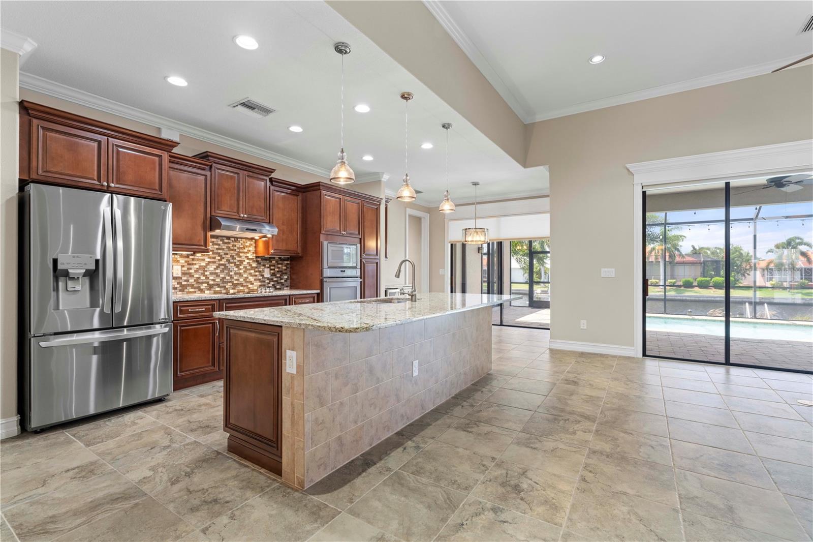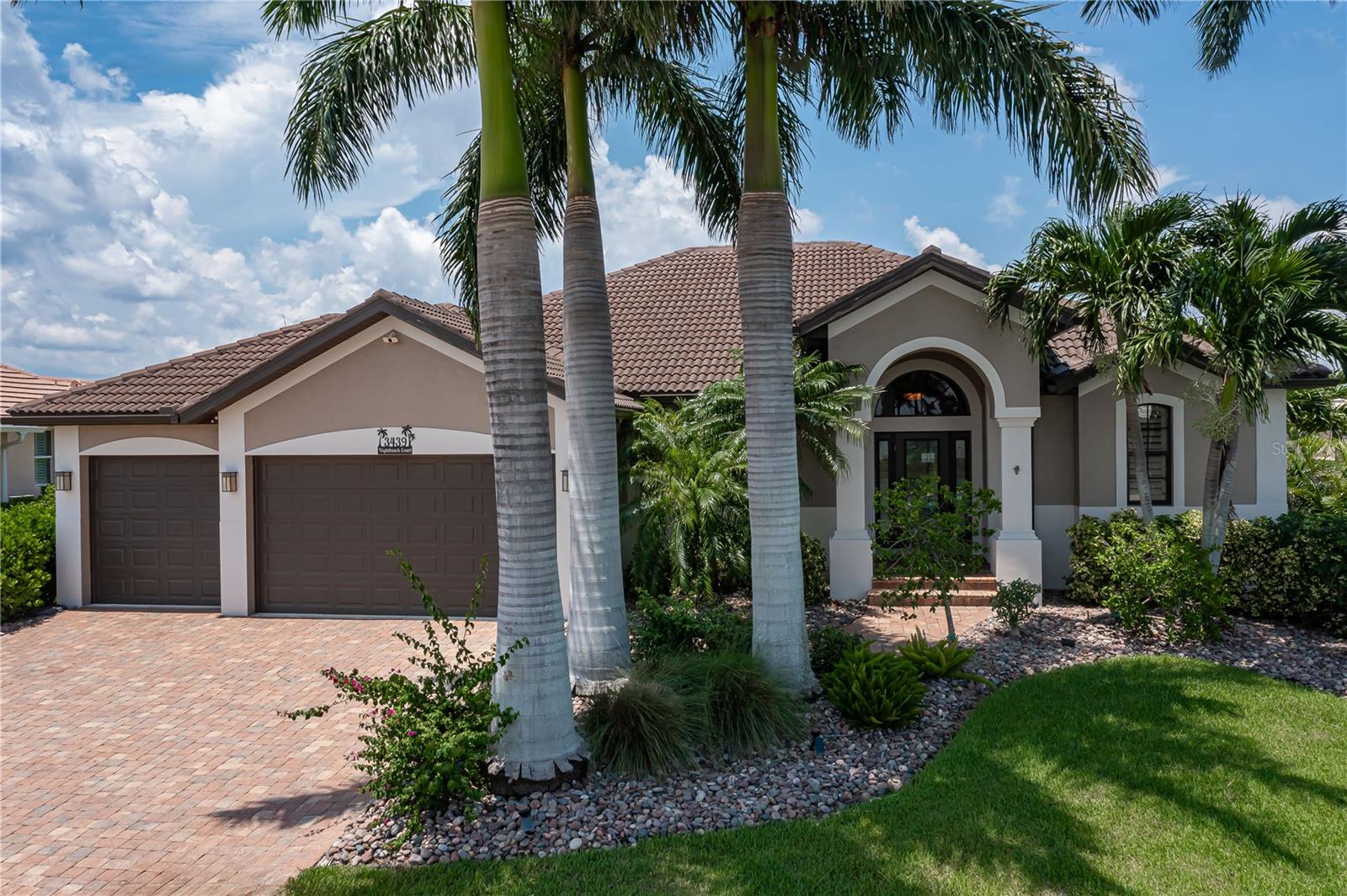 PUNTA GORDA ISLES WATERFRONT HOME W/91FT OF SEAWALL & SAIL ACCESS! Check out this move-in ready 3 bed/2 bath home w/THREE-CAR GARAGE located in the heart of Punta Gorda Isles on a quiet cul-de-sac w/great curb appeal. The home impresses from the moment you arrive w/a wide brick paver driveway & walkway leading you to the front door. Once inside, the spectacular views of the pool & canal grab your attention while the spacious, open floor plan welcomes you. Home is filled w/natural light and a relaxing, warm neutral color palette. The gourmet kitchen is the heart of the layout featuring granite counters, top-of-the-line stainless steel appliances & a mosaic tile back splash w/iridescent glass. No shortage of storage space here w/abundant, soft close drawers & cabinets w/pull outs. Large island has breakfast bar & pendant lighting. Adjacent breakfast area has built-in buffet storage w/wine refrigerator creating space for a fantastic wine/coffee bar. Architectural details include crown molding, tile flooring throughout the home, recessed LED lighting and contemporary light fixtures. The large, interior laundry room has additional storage cabinets & broom closet. The master suite offers walk-out access to the lanai, pool & canal views plus two large closets (w/one oversized walk-in) & a spa-like master bath w/dual sinks, tiled shower, linen closet & private WC. Split bedroom floor plan provides privacy to owners & guests alike. The two guest rooms share a hall bath. One guest room offers a large walk-in closet while the other boasts walk-out access to the lanai & pool/canal views. Give your guests a taste of Florida living here. Four sets of sliding glass doors open to the lanai extending the living space outside. Enjoy true, Florida-style, indoor/outdoor living here. Beautiful brick paver decking surrounds the in-ground, HEATED, SALTWATER POOL. Lanai boasts both covered & sun-drenched areas for relaxing. A summer kitchen w/gas grill completes the lanai. Brick paver path leads from the lanai to your oversized & extended (10x30) concrete dock w/14,000 lb, remote-controlled boat lift. Dock also offers additional pilings w/SlideMoor system plus water & electric hook-ups dockside. Waterfront/fishermen paradise completed by a fish light & under dock ocean habitat reef. Well-maintained, tropical landscaping surrounds the home creating the feel of a private oasis. SO MANY EXTRAS including whole-house generator (2021), electric StormSmart hurricane protection, Siemens whole-house surge protector, smart thermostat & new A/C (2022), fresh exterior paint (2024) & 240v EV outlet in garage. Discover why Punta Gorda is consistently named as one of the best places to live in Florida. Come for the house, stay for the lifestyle. In addition to fantastic boating & golf, Punta Gorda boasts a vibrant art & music scene w/gallery walks & outdoor concert series. Make an appointment today. You won't be disappointed.