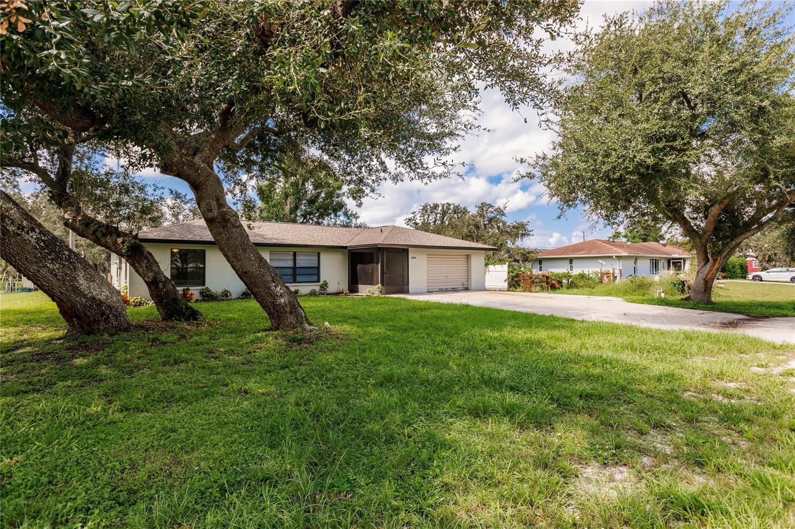 This is your opportunity to make this updated 2 bedroom, 2 bath home yours! Located in the rural community of Ridge Harbor this home is nestled amongst stately oak trees and has private fenced back yard. With over 1600 square feet of living space, great room, dining room, spacious kitchen, and family room, this home offers bright and open floor plan. Tastefully appointed with stunning stone front wood burning fireplace in the family room, tile and blinds throughout, color accent walls, decorator light and fan fixtures, and updated bathrooms. The kitchen boasts granite counters, new wood cabinetry, stainless appliances including 3 door fridge, decorative tray ceiling, and pass-through window to lanai for easy entertaining. Master suite has a walk-in closet and en suite bath with custom tiled walk-in shower. As an added bonus the spacious family room has stone front wood burning fireplace and built in desk. There is also a closet in this room. So you could convert this room into a third bedroom. Other features include brand new roof and new flooring in bedrooms. You will spend most of your leisure time relaxing on your screened lanai overlooking your park like, private fenced back yard. Ridge Harbor offers access to the community boat ramp on Shell Creek for a small annual fee. And the best part is the location. You can enjoy other local waterways, local beaches, dining, shopping, and golf courses that make this area so special. You can also explore the waterfront public parks with bike and walking trails, pickle ball parks, picnic areas, and boat ramps that give you access to the Peace and Myakka Rivers, beautiful Charlotte Harbor, and the blue waters of the Gulf of Mexico. You are minutes to historic downtown Punta Gorda and popular Fishermen's village with quaint shops and cafes. And easy access to Interstate 75 with Sarasota and Tampa to the North and Fort Myers and Naples to the South. Great home in a quiet rural neighborhood.