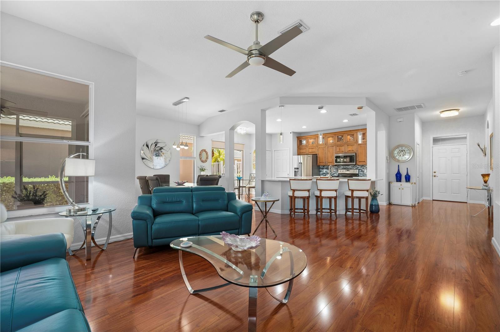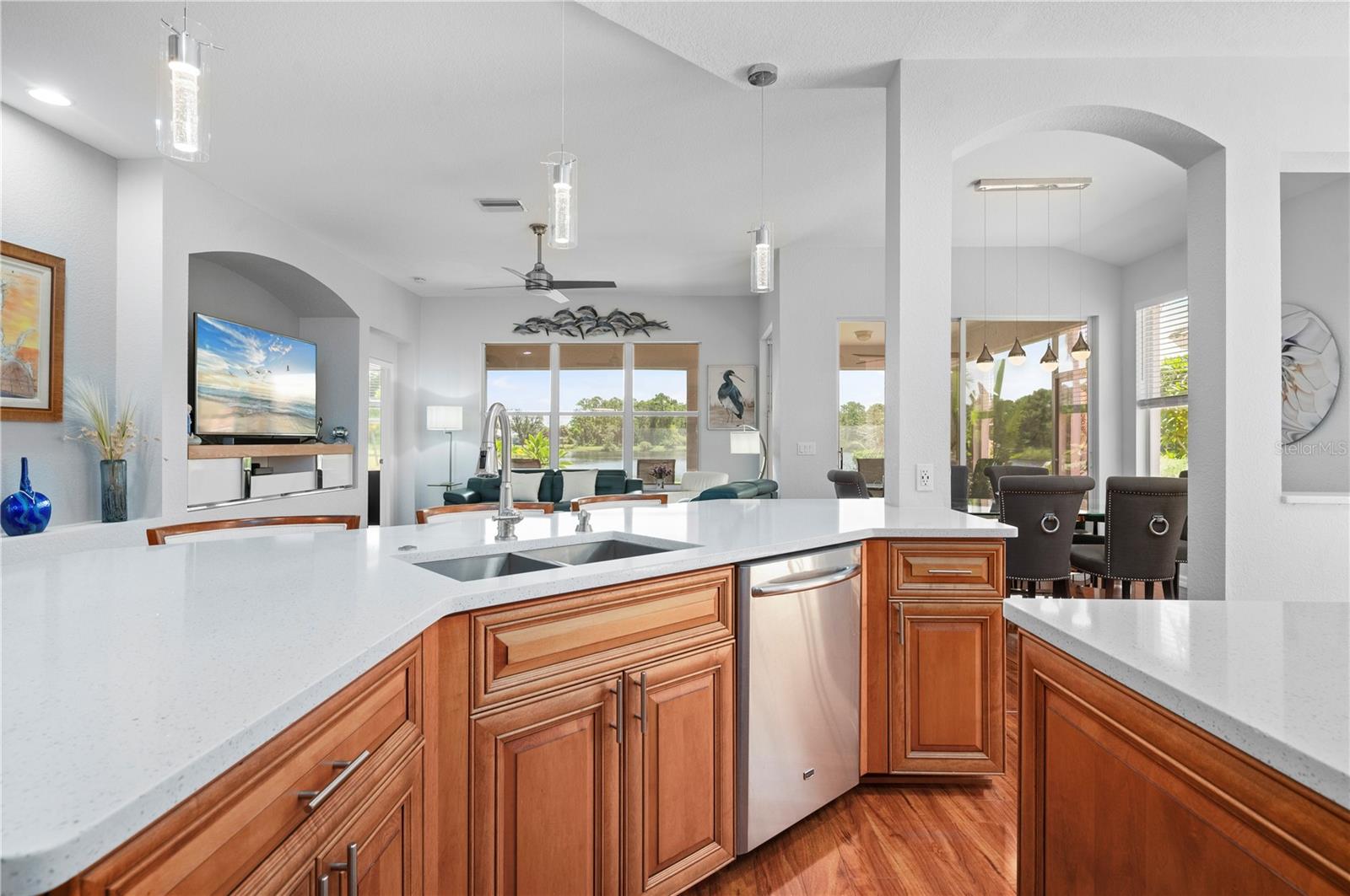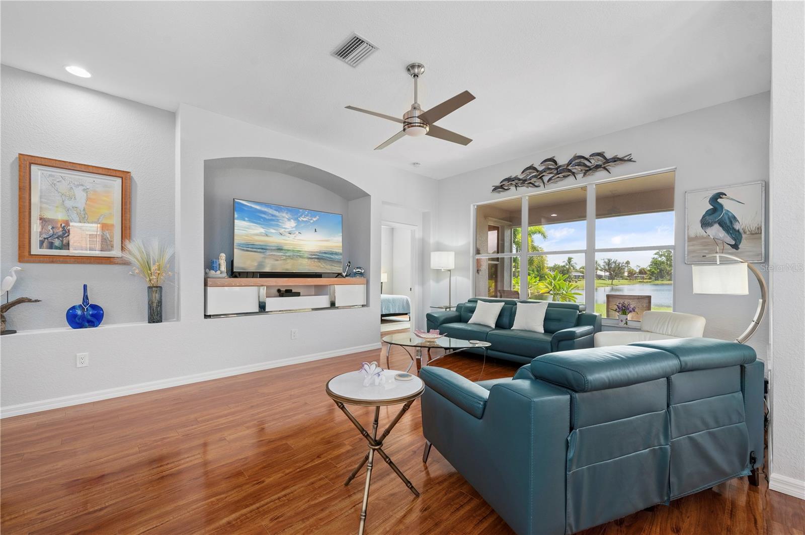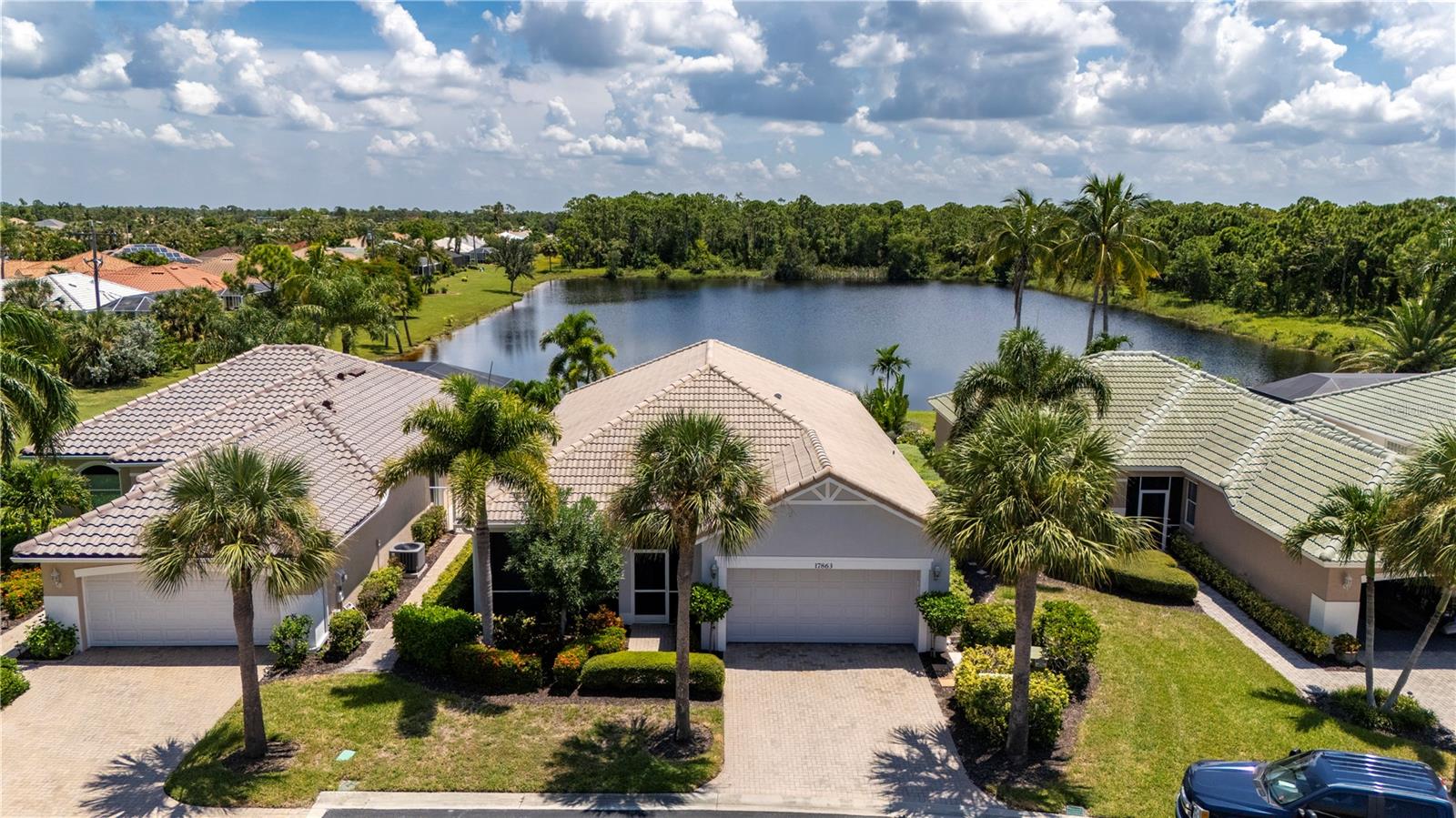 2 bedroom + Den 2 bath 2 car garage Lake Front home located in the Courtside Landings community of Burnt Store Marina. BRAND NEW TILE ROOF 4/9/2025! Exceptionally maintained home sold completely furnished (some personal items excluded). Updated interior with open floor plan and plenty of room for entertaining. Relax and drink a cup of coffee on the screened lanai as the sun rises over the lake. This peaceful location is far enough away from the pickleball courts that there is no noise. Inside there is a large chefs kitchen with loads of cabinets. The living space has fantastic view of lake. Large master bedroom has lake views and large en suite. The den/office is currently being used as a 3rd bedroom. This home also boasts an indoor laundry room off the kitchen and spacious 2 car garage with ample storage. Courtside Landings is known for having reasonable HOA fees and being conveniently located closing to everything in Burnt Store Marina. The marina has 526 wet slips and 400 dry stack slips. There are 3 nine hole golf courses and 3 restaurants. The fitness center has 8 pickleball courts, several tennis courts a weight room and pool. Amenities are easily accessed via a golf cart as Burnt Store Marina is a golf cart community. Owner financing a possibility. Call for your private showing.