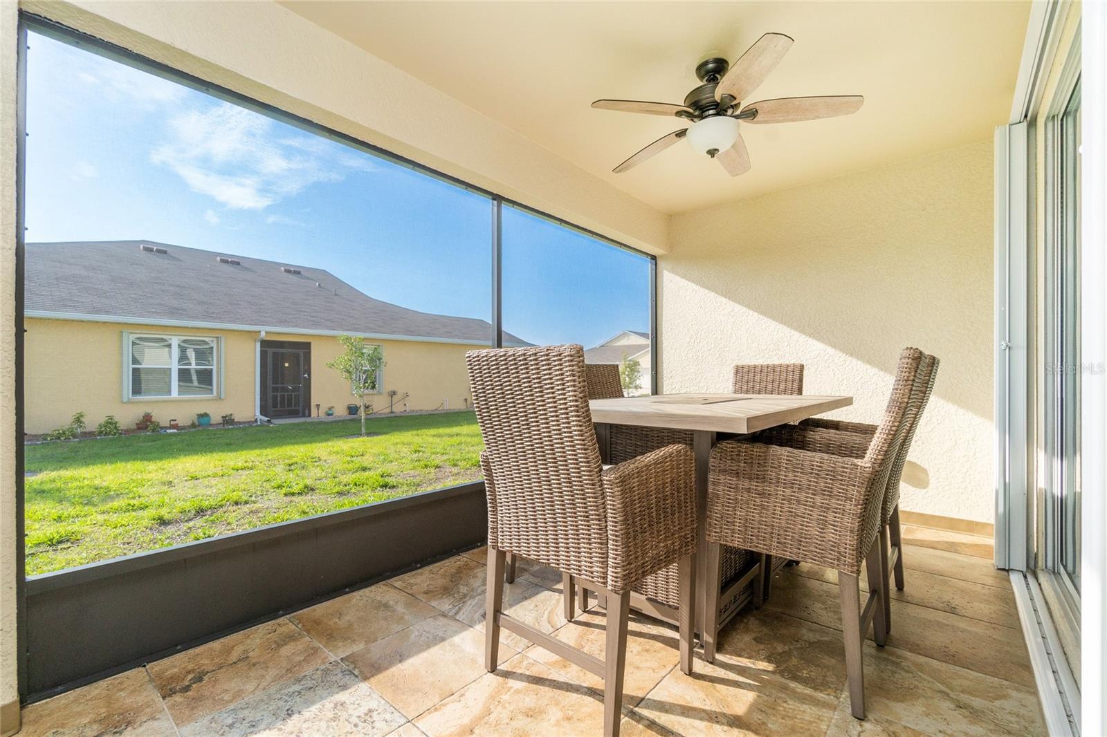 TURN KEY FURNISHED! Professionally decorated and styled with upscale modern coastal furnishings. It even includes the custom window treatments and blinds! With its neutral palette and light and bright feeling you’ll have a wonderful Florida oasis. The generously sized open floor plan makes entertaining or being with family easy. The kitchen has plenty of cabinet space and a lovely breakfast bar. The great room has beautiful custom furniture and a slider to the screened lanai. Off the great room is a den that is converted to a bedroom with French doors in case you need to work or would like to use for guests. The primary suite features dual vanities and a walk-in shower in the bathroom and the custom made bed linens are included. An additional bedroom and bath, also professionally decorated, provides a great space for visitors. The private screened lanai has a tiled floor to make it an extension of the great room and a dining table which doubles as a fire table. There are accordion storm shutter for all windows and the sliding doors. The clubhouse is equipped with a full gym, 2 heated pools, New Pickleball Courts, Bocce Ball Courts, Billiard Room, and a Card Room. Punta Gorda is a vibrant waterfront community with a connected and relaxed lifestyle. It is a charming historic town on the-mile-wide Peace River. Downtown Punta Gorda offers concerts, wine and jazz festivals, The Taste of Punta Gorda and art/craft shows to name just a few. For all you golfing enthusiast, there are 8 golf courses within a 20 minute drive. The Punta Gorda Airport, which services many destinations and direct flights is just 5 minutes away