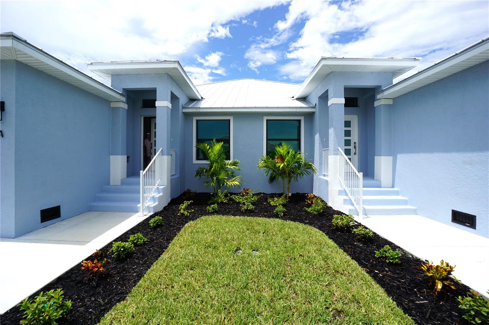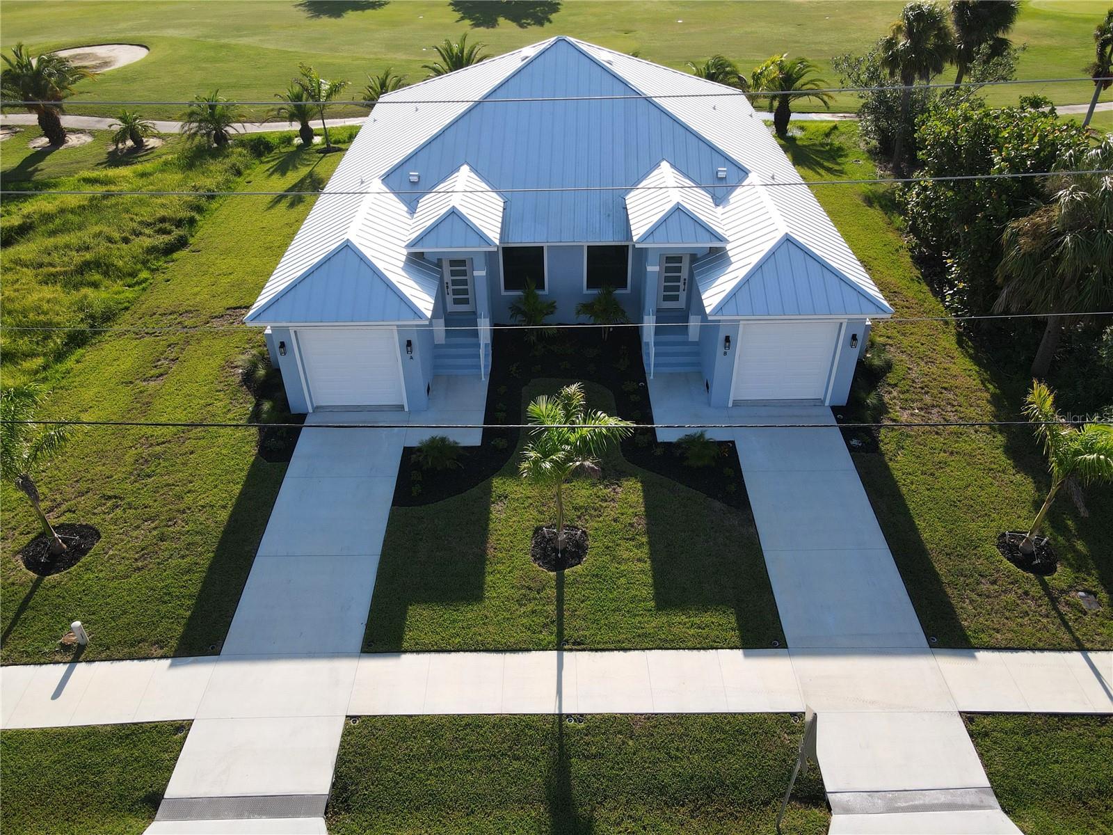 Welcome to the wonderful town of Punta Gorda and all it has to offer. This villa is located on the ever popular St. Andrews Golf and Country Club. This is an opportunity for either rental income, splitting it with a friend or living in one side while renting out the other side as this sale is for the entire 2 unit villa. Please note that the square footage numbers are of each unit as we wait for the county to finalize all the regular tax records since it is brand new property. So the square footage shown is actually double that number. Each unit is approx. 1244 sq. ft. with a seperate 12 x 21 garage. Both units are 3 bedrooms and 2 full baths with inside laundry room and seperate garages. The view out back of the golf course is hard to beat. A huge bonus to buying this villa is that there are NO HOA DUES!!! This villa has a 26 gauge standing seam metal roof and has a complete sprinkler system and is already landscaped. Inside is completely finished off with wood plank looking tile floors throughout the entire villa and square profile trim. Granite counter tops compliment the cabinets while stainless steel kitchen appliances add that finishing touch with plenty of room at the counter top for a nice meal or snack. It is an open floor plan as the kitchen flows into the living room and then right out back to the screened in lanai area overlooking the golf course. Taller ceilings with can lighting and hand picked ceiling fans make this home feel even larger. The tray ceilings in the living room and master bedroom add additional architectural beauty. The master bedroom has a large walk in closet and over looks the golf course as well. The curb appeal from out front is obvious as soon as you pull into the driveway. We have all heard of location, location, location and this home has it for sure. You can see by the pictures that the Charlotte Harbor is literally less than a mile away with all the beauty and fun of spending a day on the water is just minutes away. For all the golfing enthusiast out there, there is another 8 golf courses within a 20 minute drive. There is multiple places around the town where you can put the boat or wave runner in the water with plenty of parking for the truck and trailer. Downtown Punta Gorda is just minutes away with all its historical beauty and the amazing restaurants from fine dining, pubs and sports bars. The night life is always bustling as you can hear different types of one man bands on street corners or a full size band at a couple other locations. So many different themes that you could eat at a different themed restaurant each night of the week. The walking trail downtown on the waterfront is second to none and you can take a break halfway with a drink or snack at the Tiki. A huge playground down by the water and a dog park nearby allows all your loved ones to enjoy the wonderful weather of Punta Gorda as well. The newer Pickleball Pickleplex is bustling all year long with weekly leagues and tournaments. Saturday morning downtown is a fan favorite with all the fruit and vegetable vendors and then all the neat little snacks and knick knack vendors as well. This community is growing and becoming more special each and every year so come and see this amazing opportunity to own a villa on a golf course with NO HOA DUES. It is almost impossible to find this complete package anywhere else in all of Southwest Florida. So hurry now to schedule your own showing of this brand new villa.